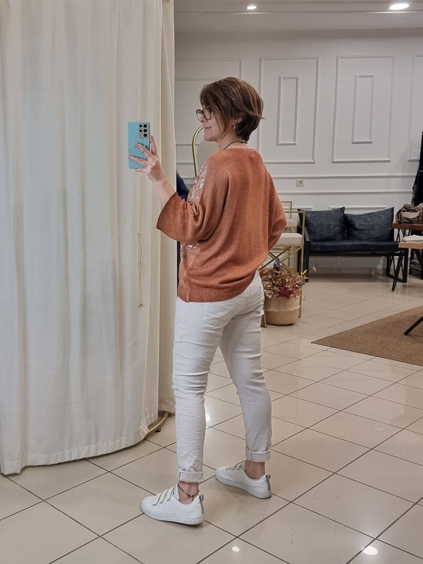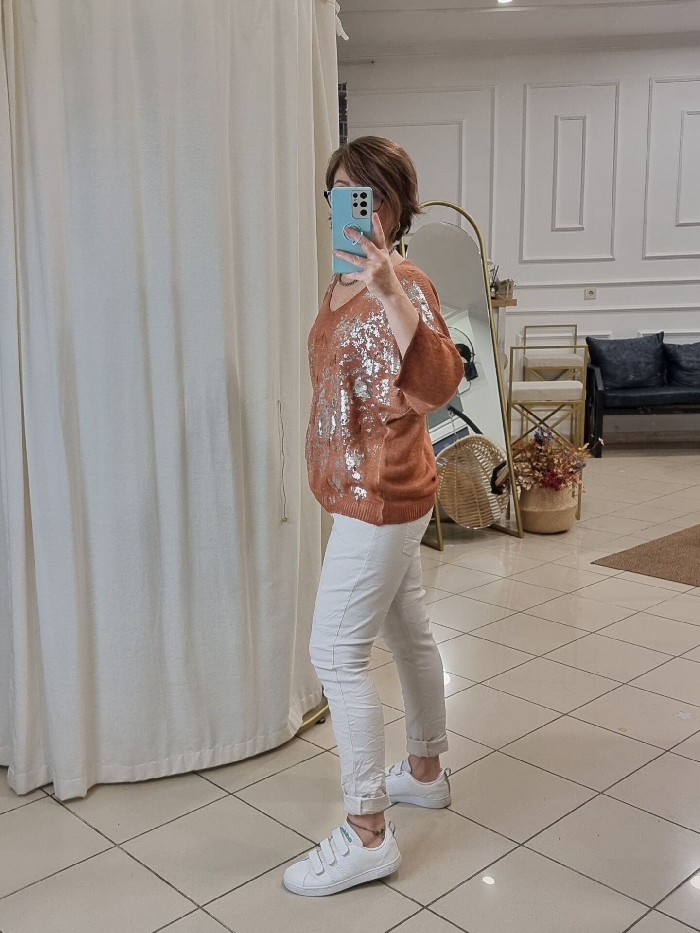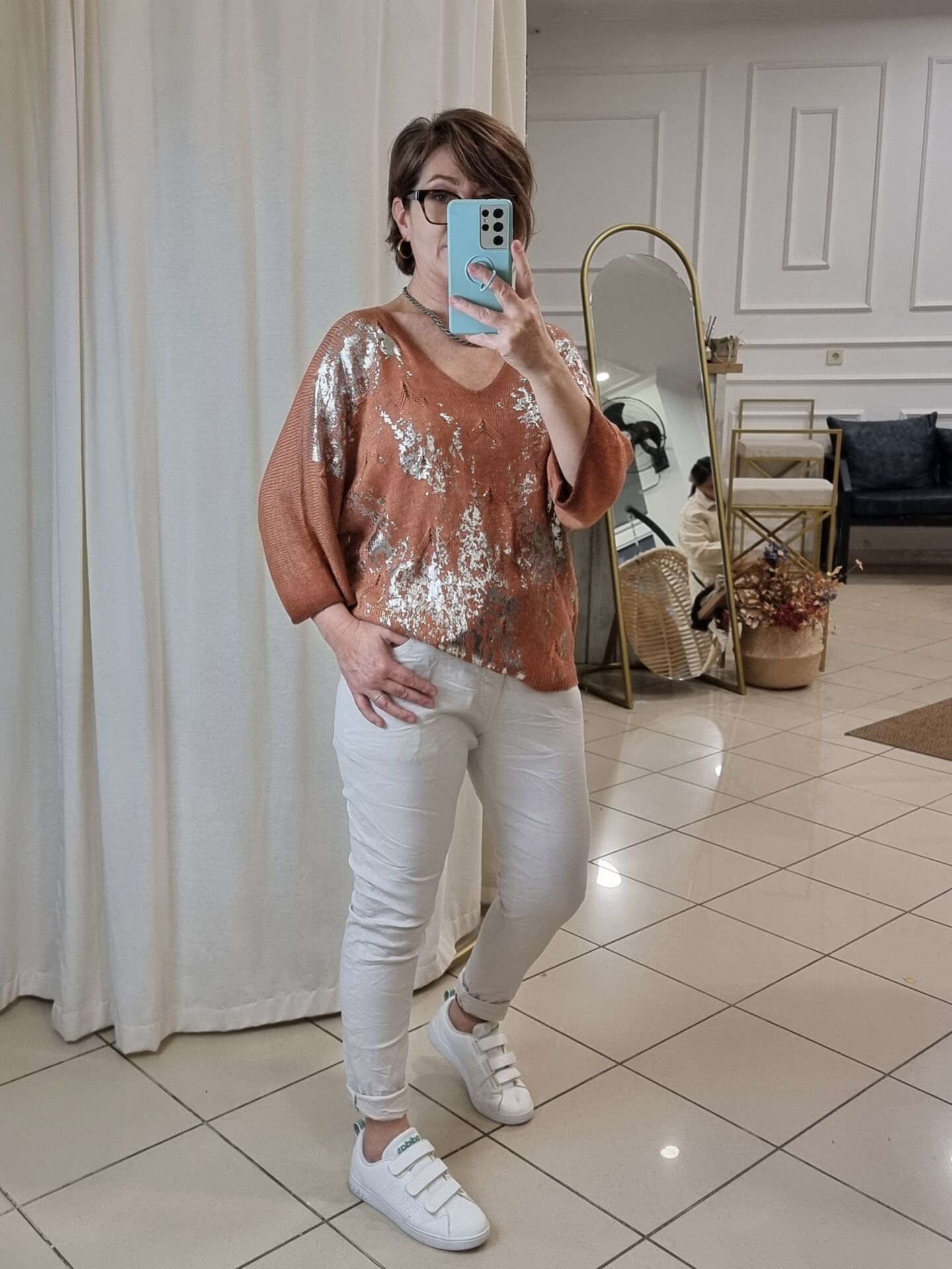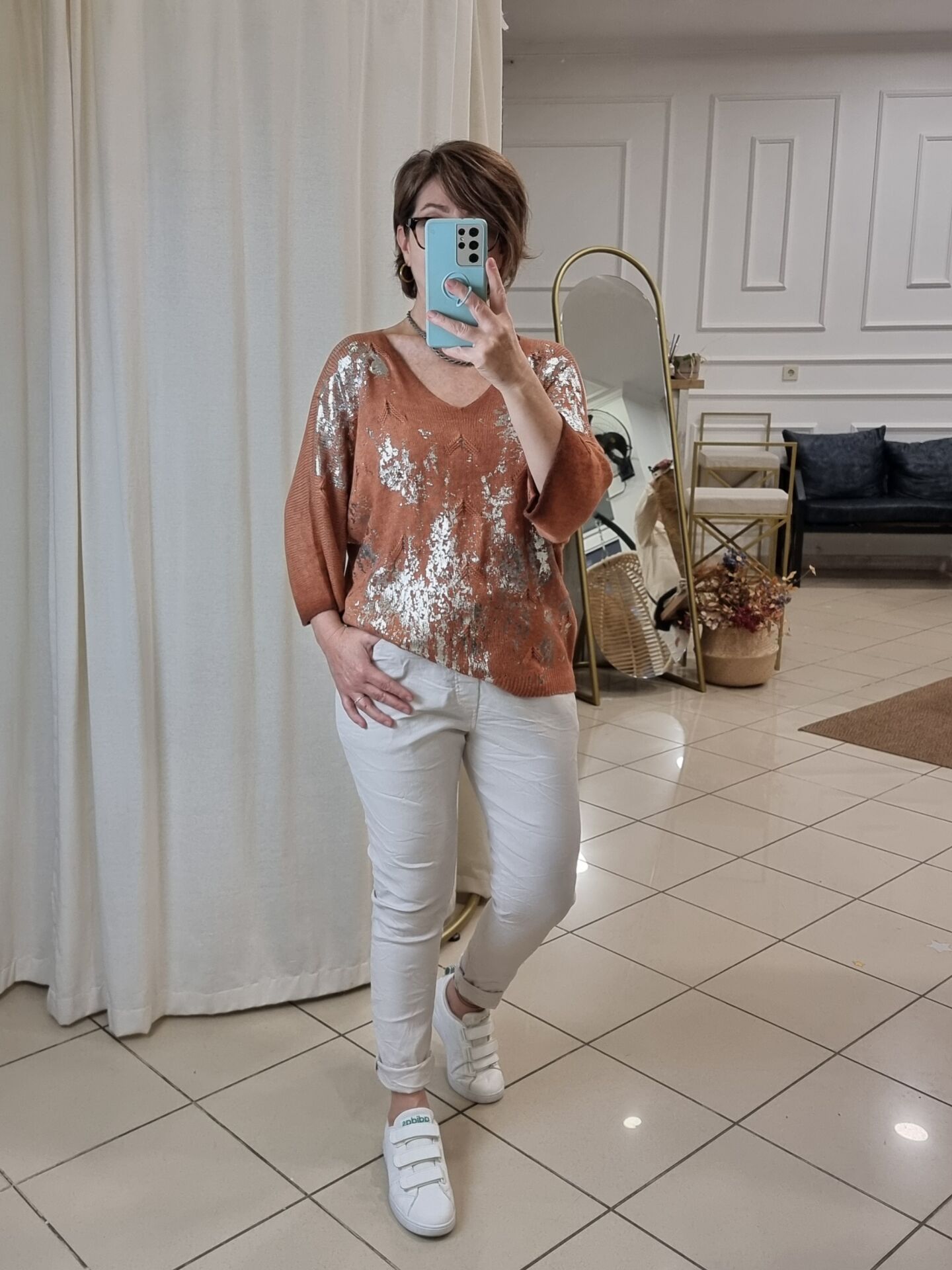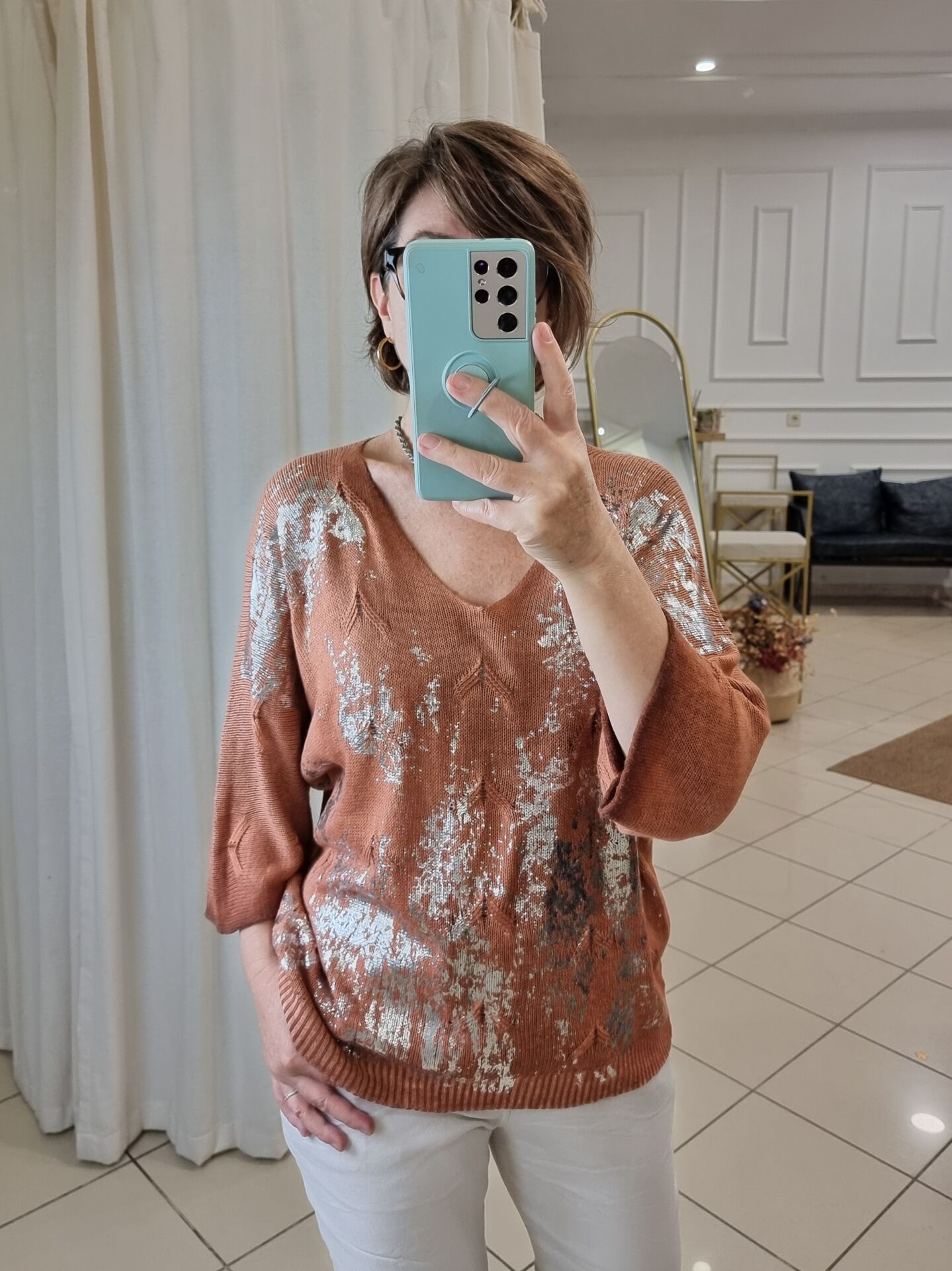 Varaklı Modal İtalyan Triko Kazak Kiremit