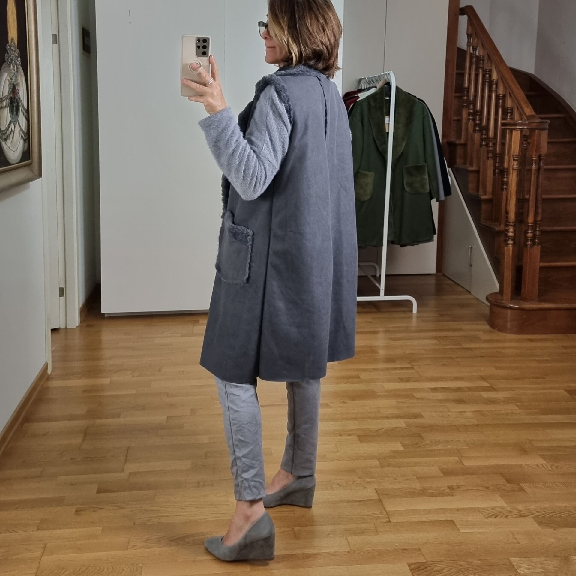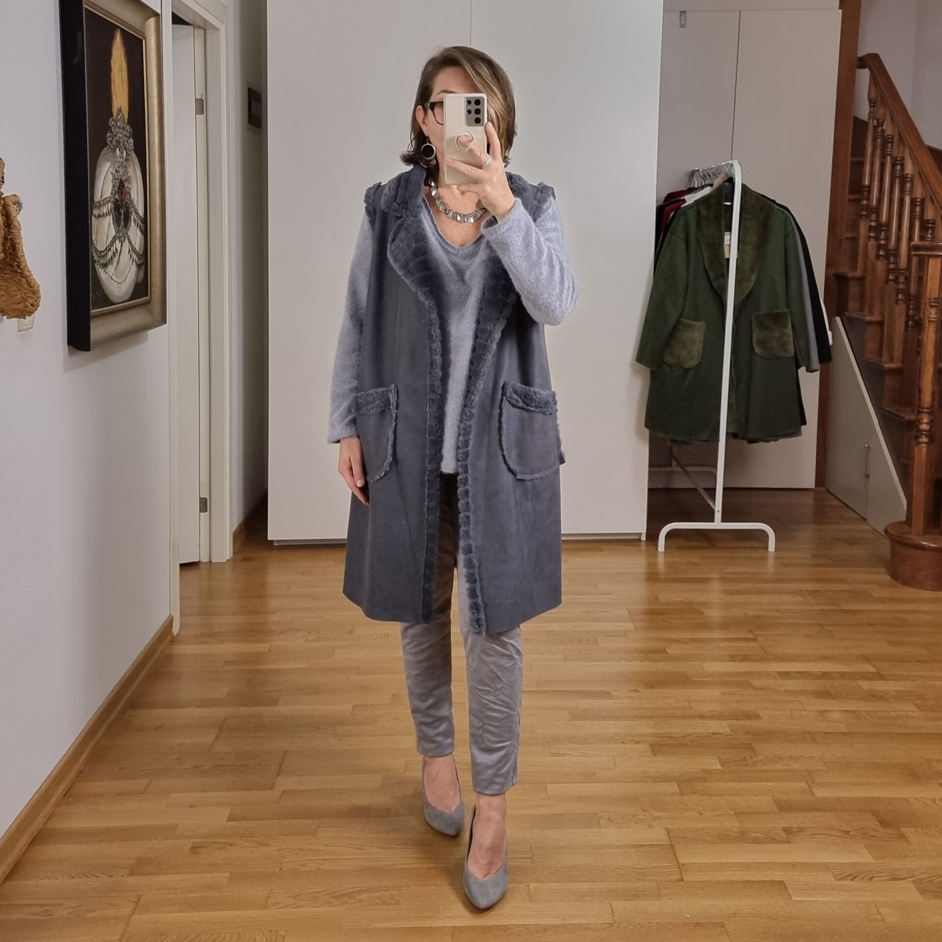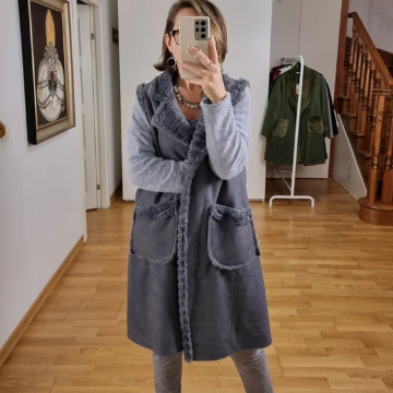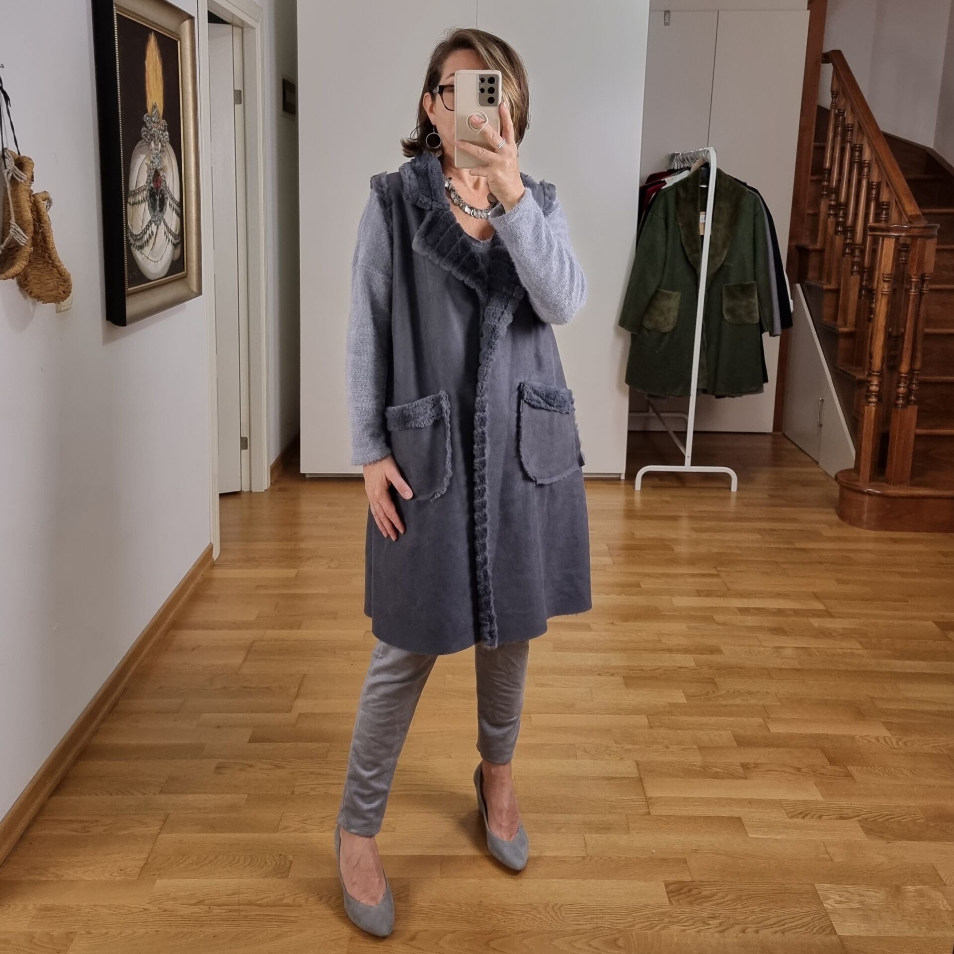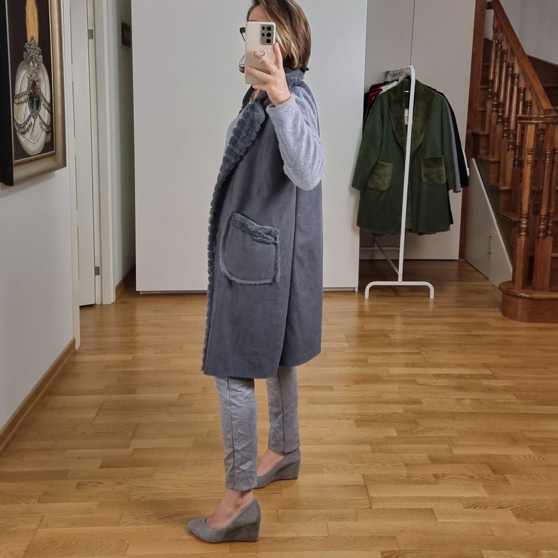 İçi yumuşacık kürklü İtalyan suni nubuk yelek.