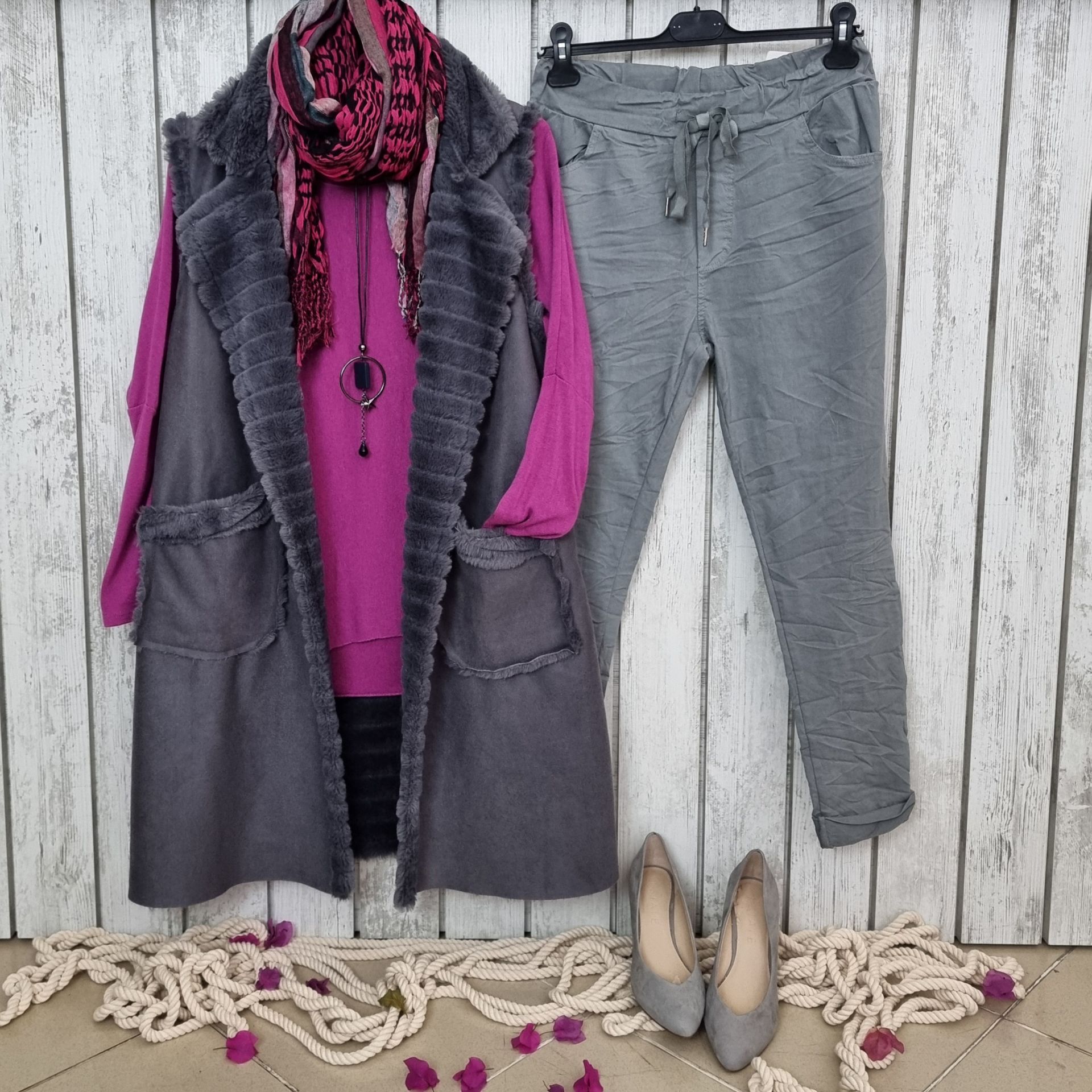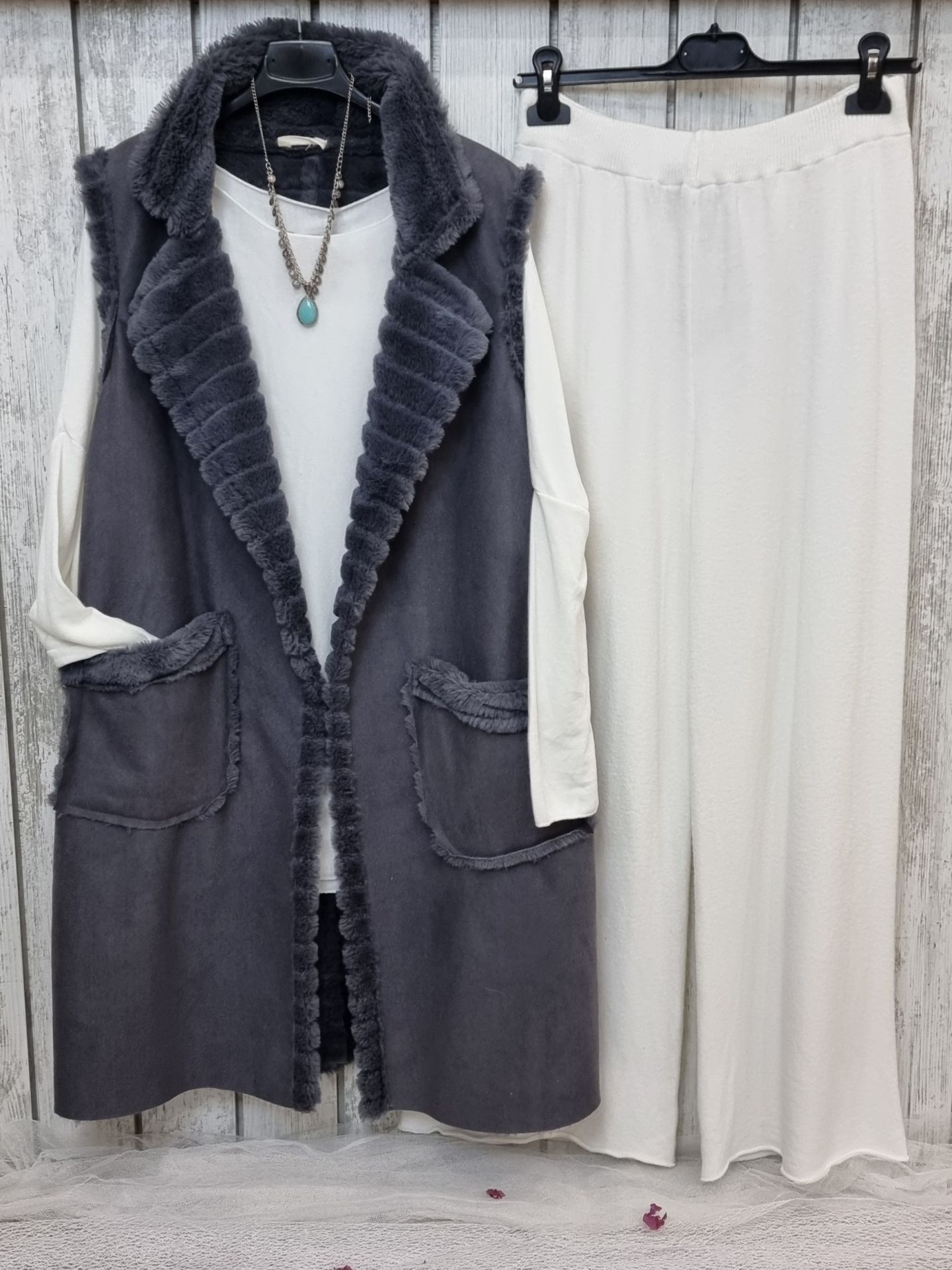 İçi Kürklü Uzun Nubuk Yelek Antrasit