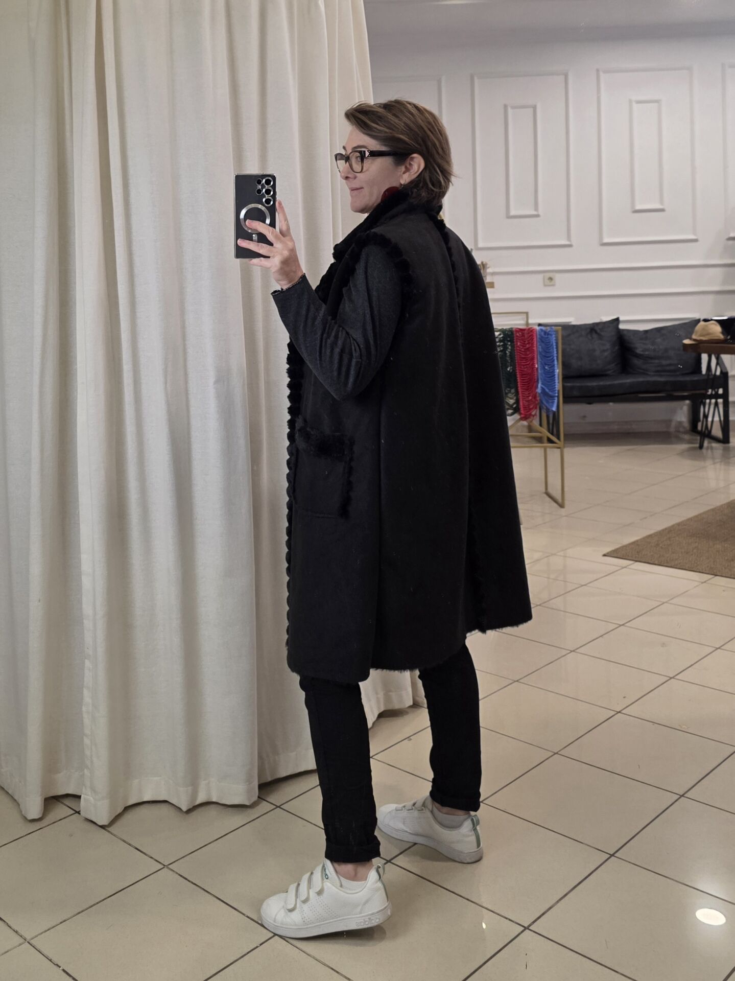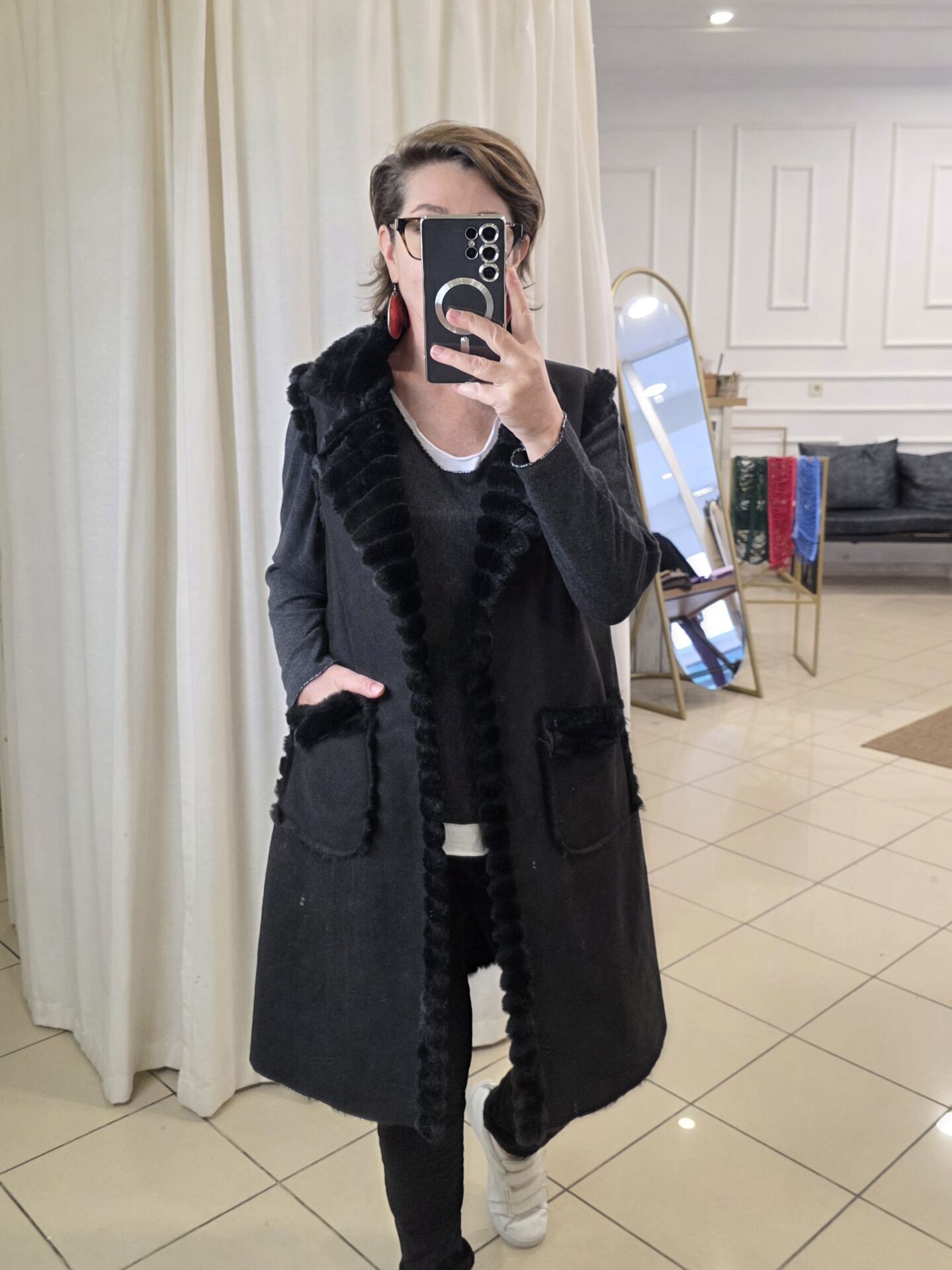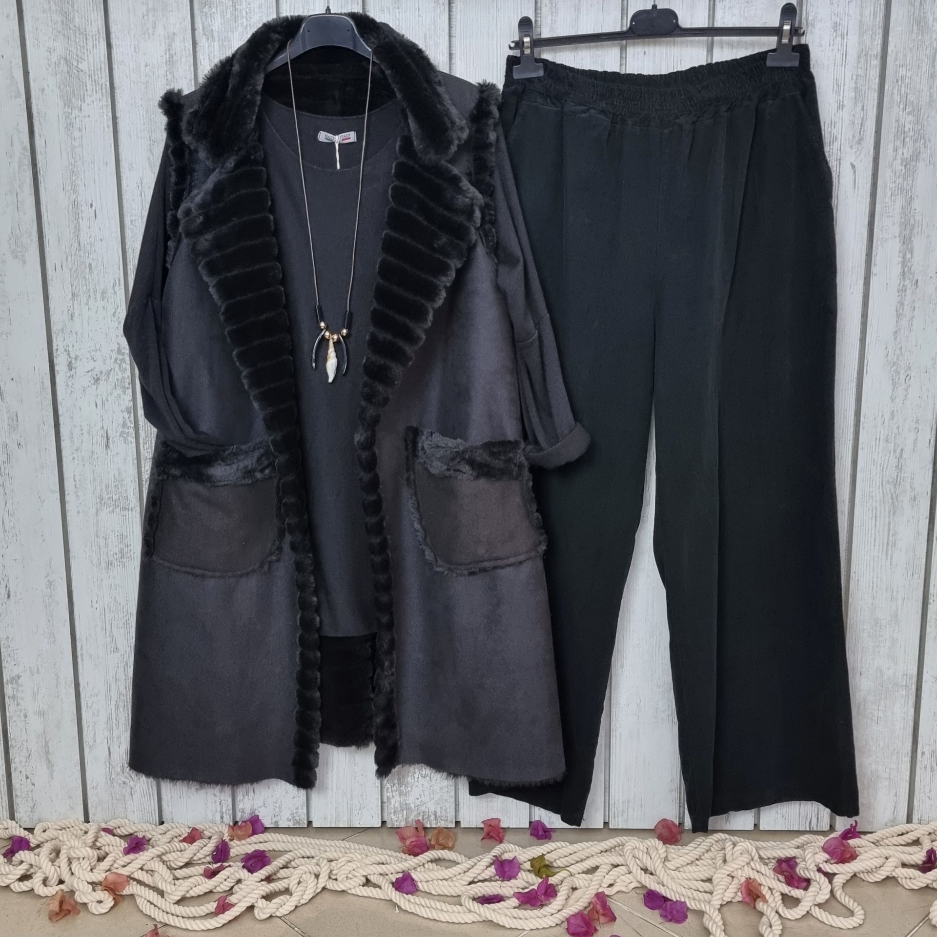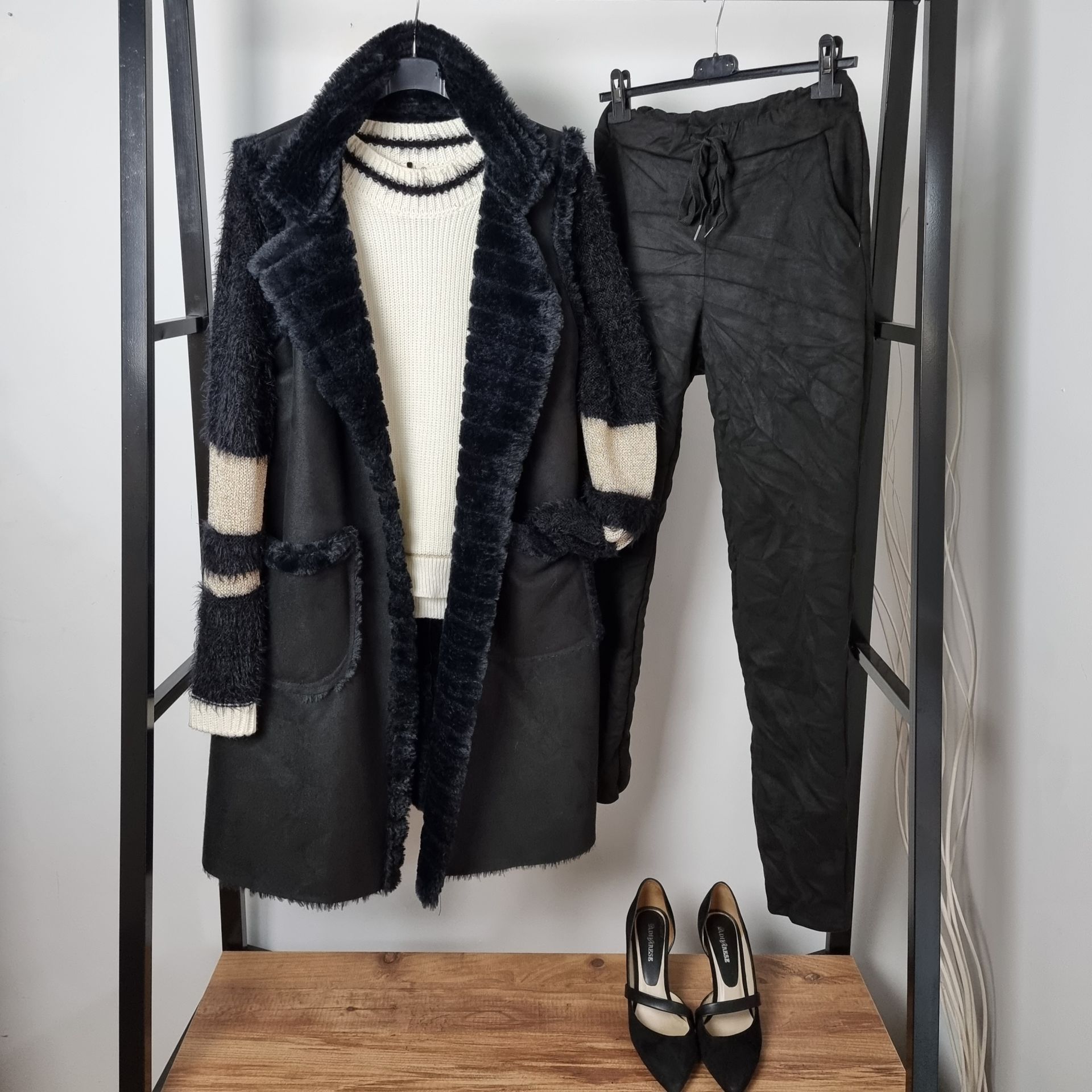 İçi Kürklü Uzun Nubuk Yelek Siyah