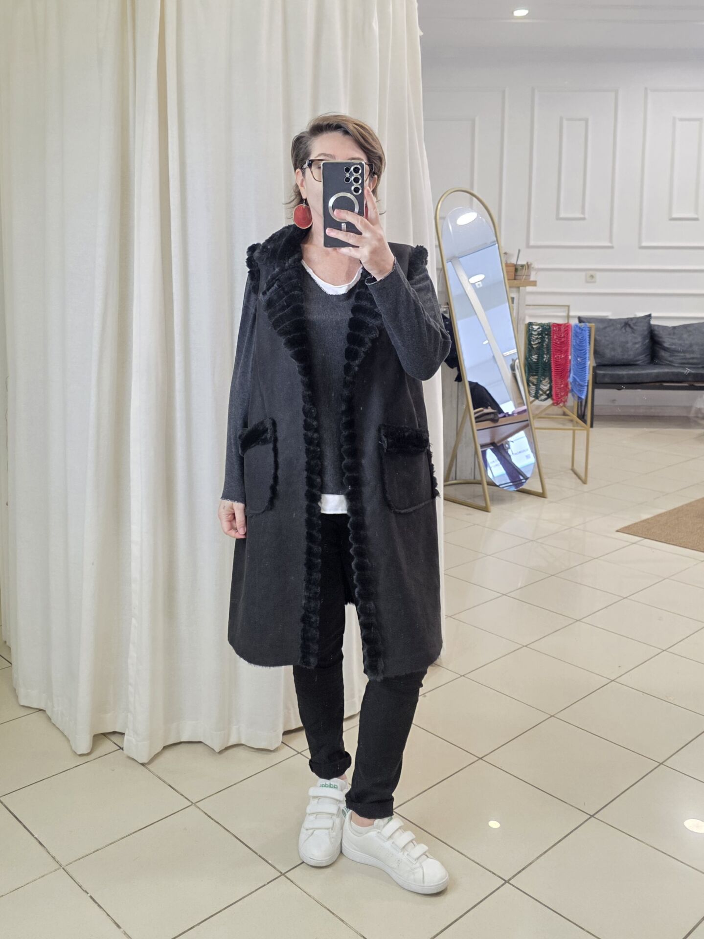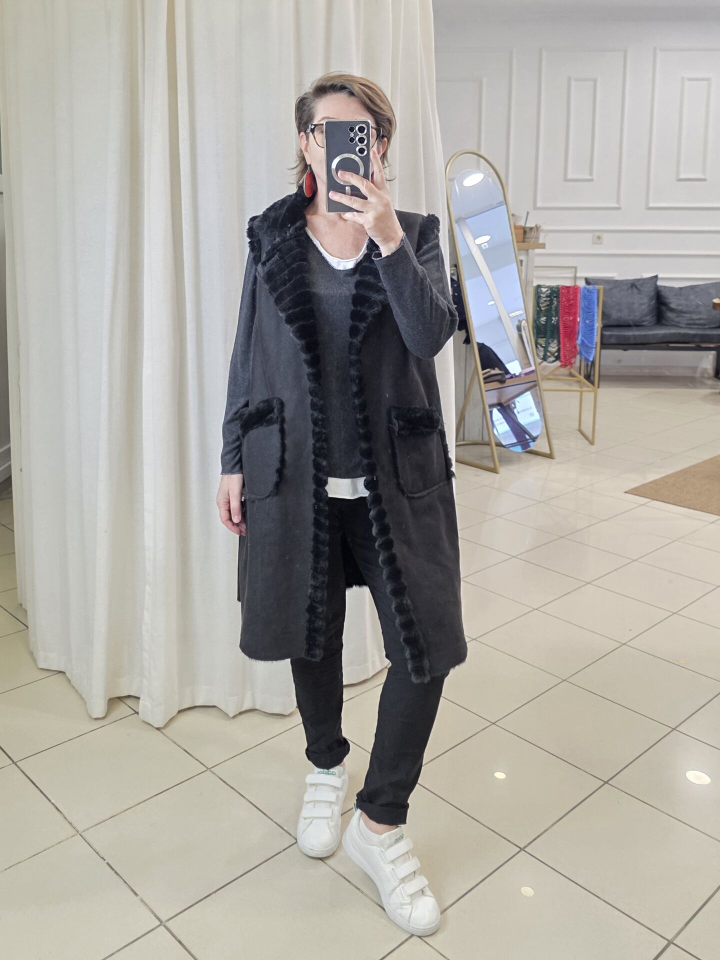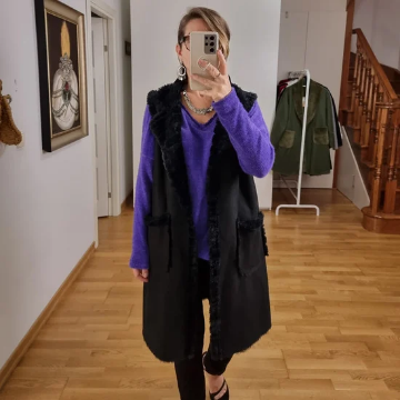 İçi yumuşacık kürklü İtalyan suni nubuk yelek.