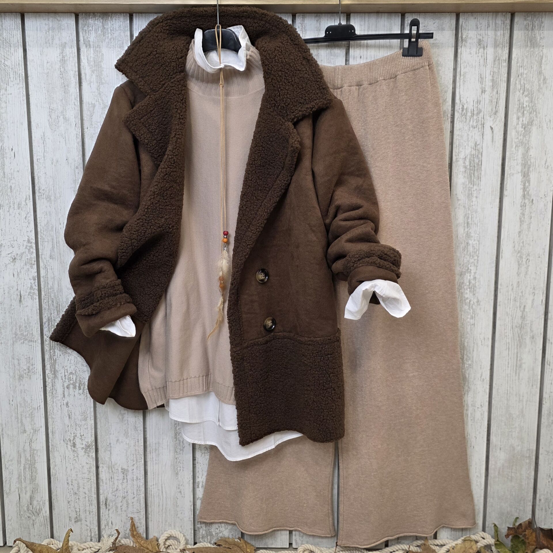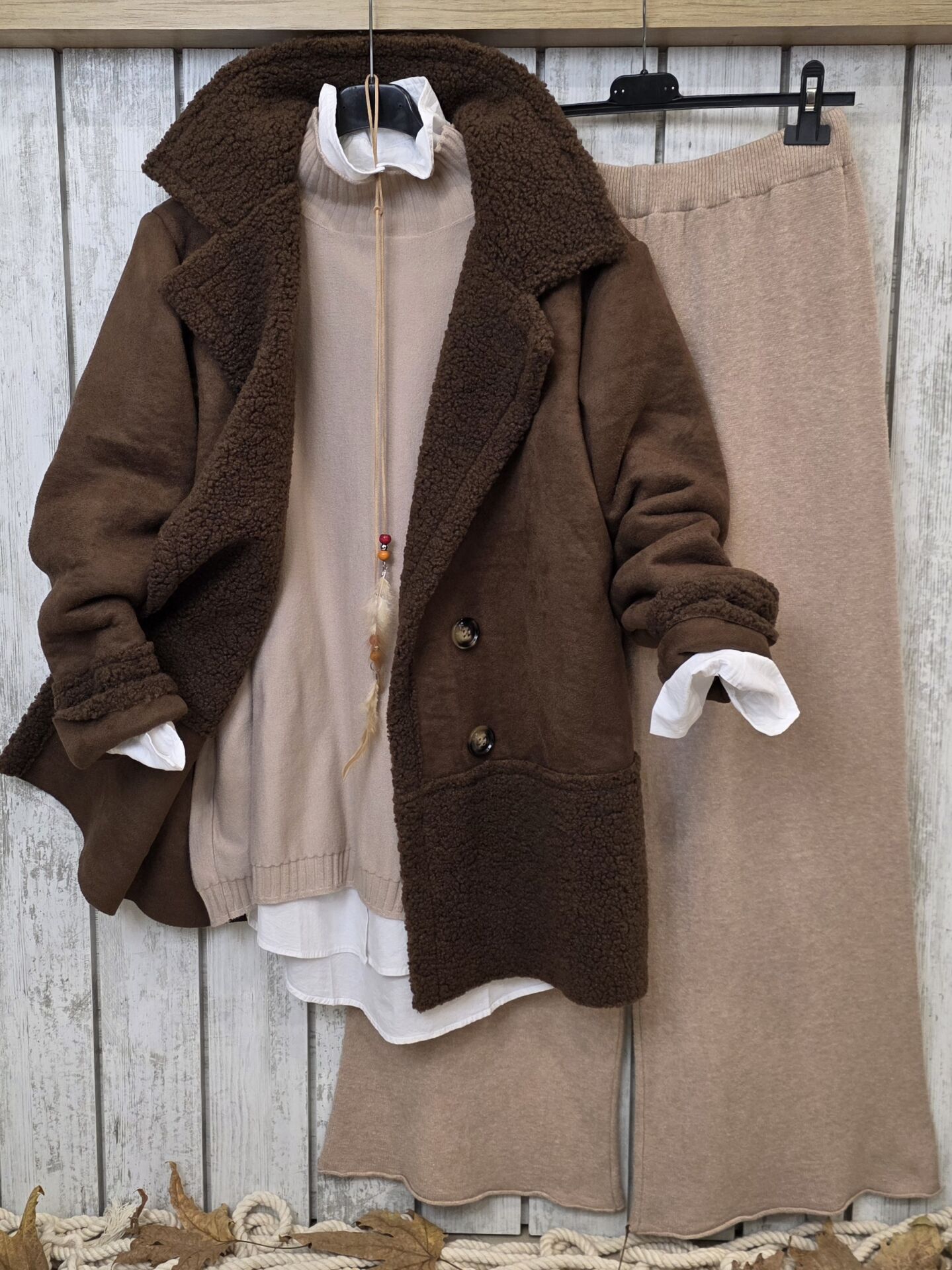 İçi Peluş İtalyan Napa Kaban Koyu Kahverengi