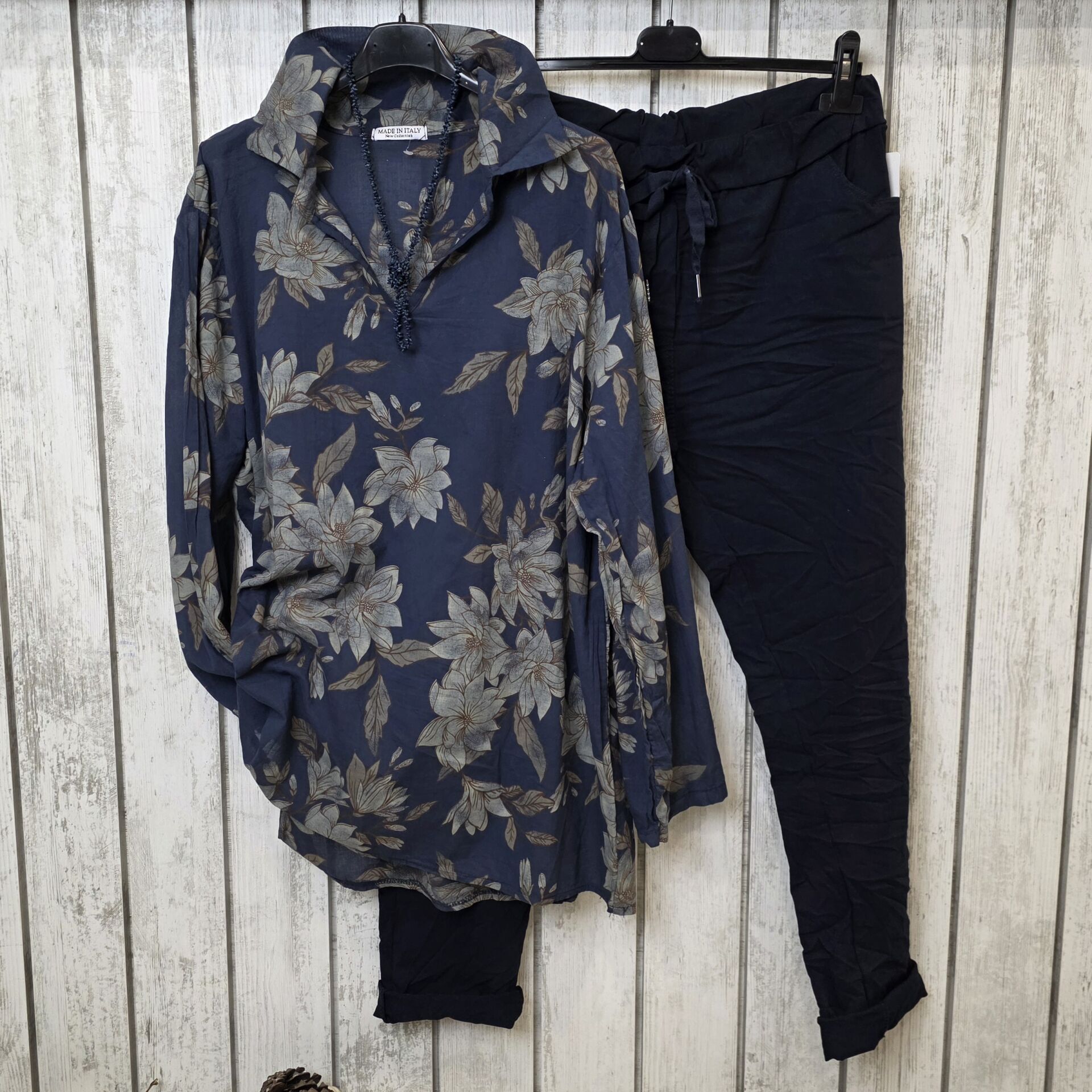 İnce Pamuklu İtalyan Gömlek Lacivert Desenli