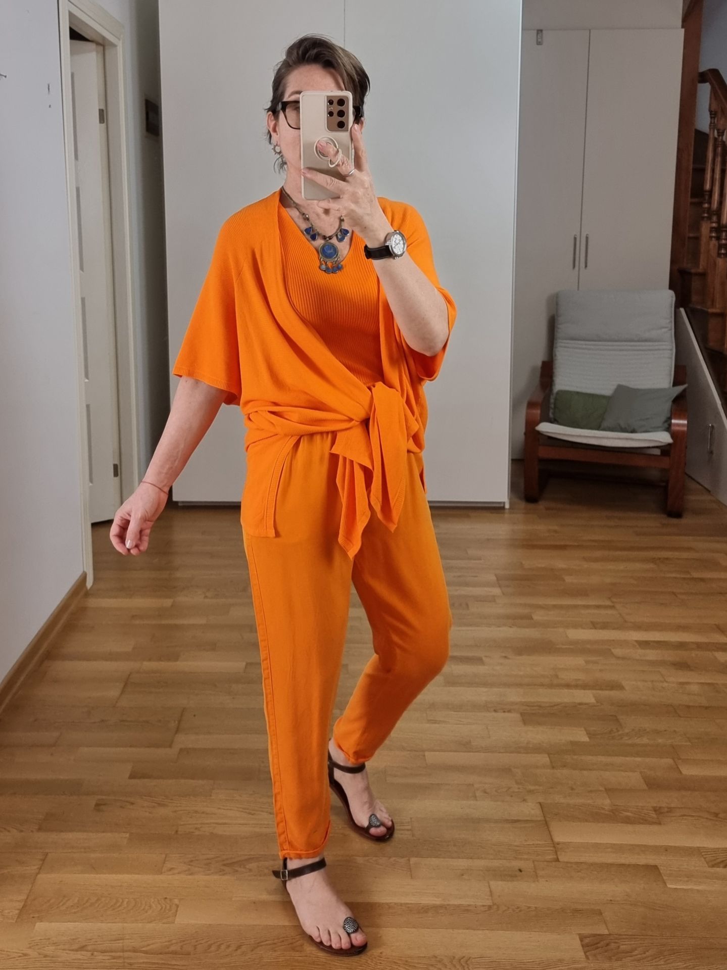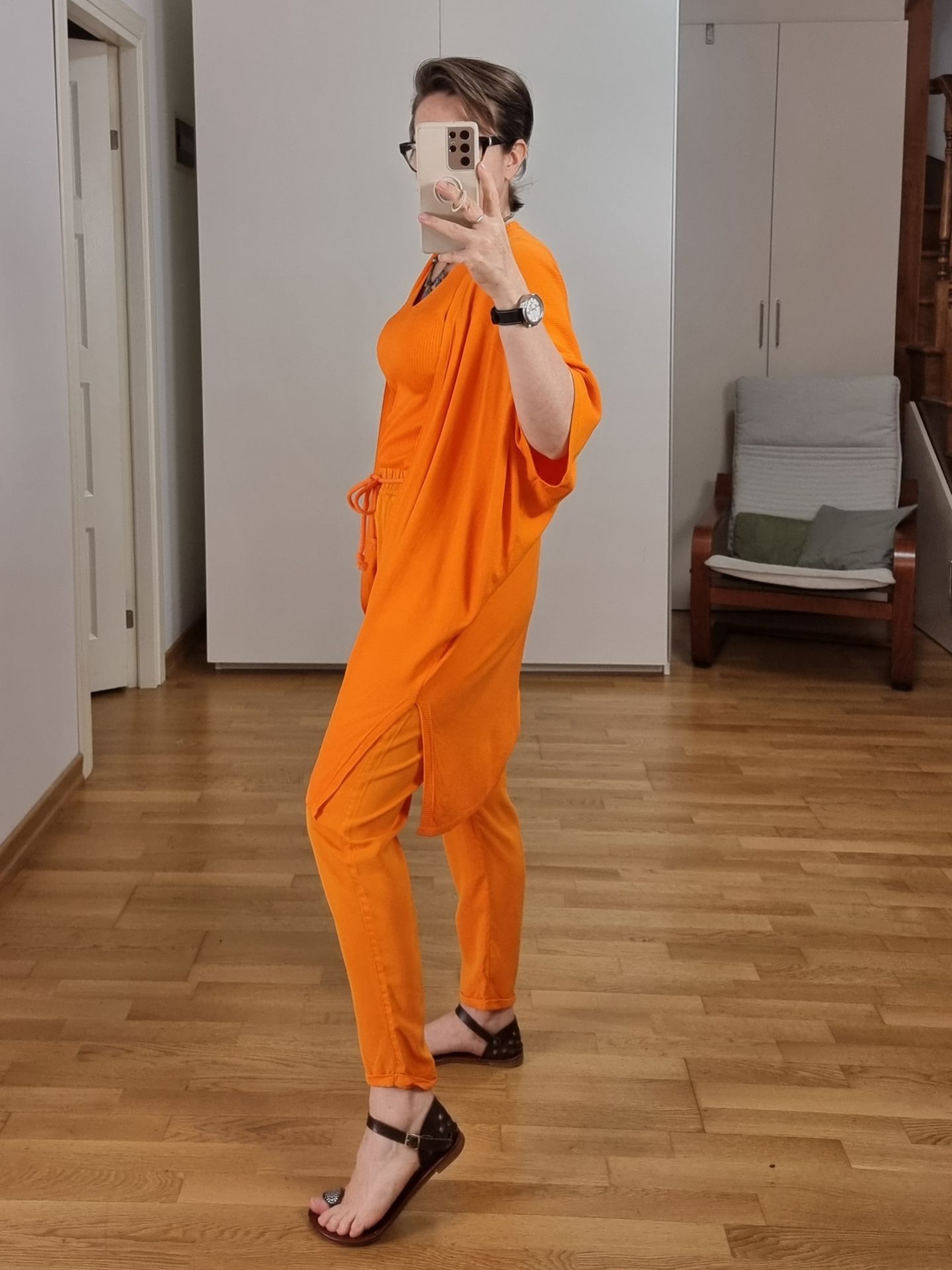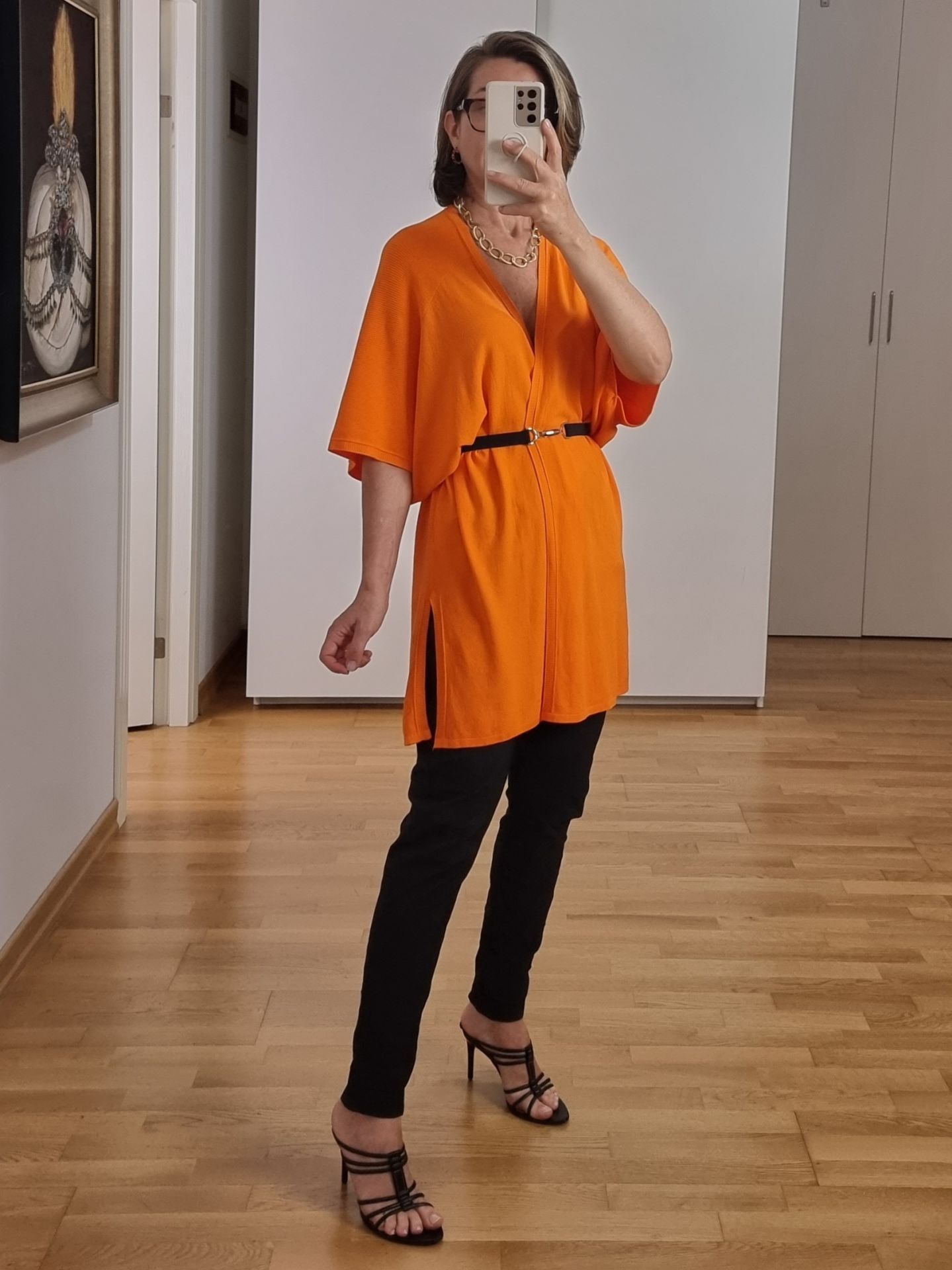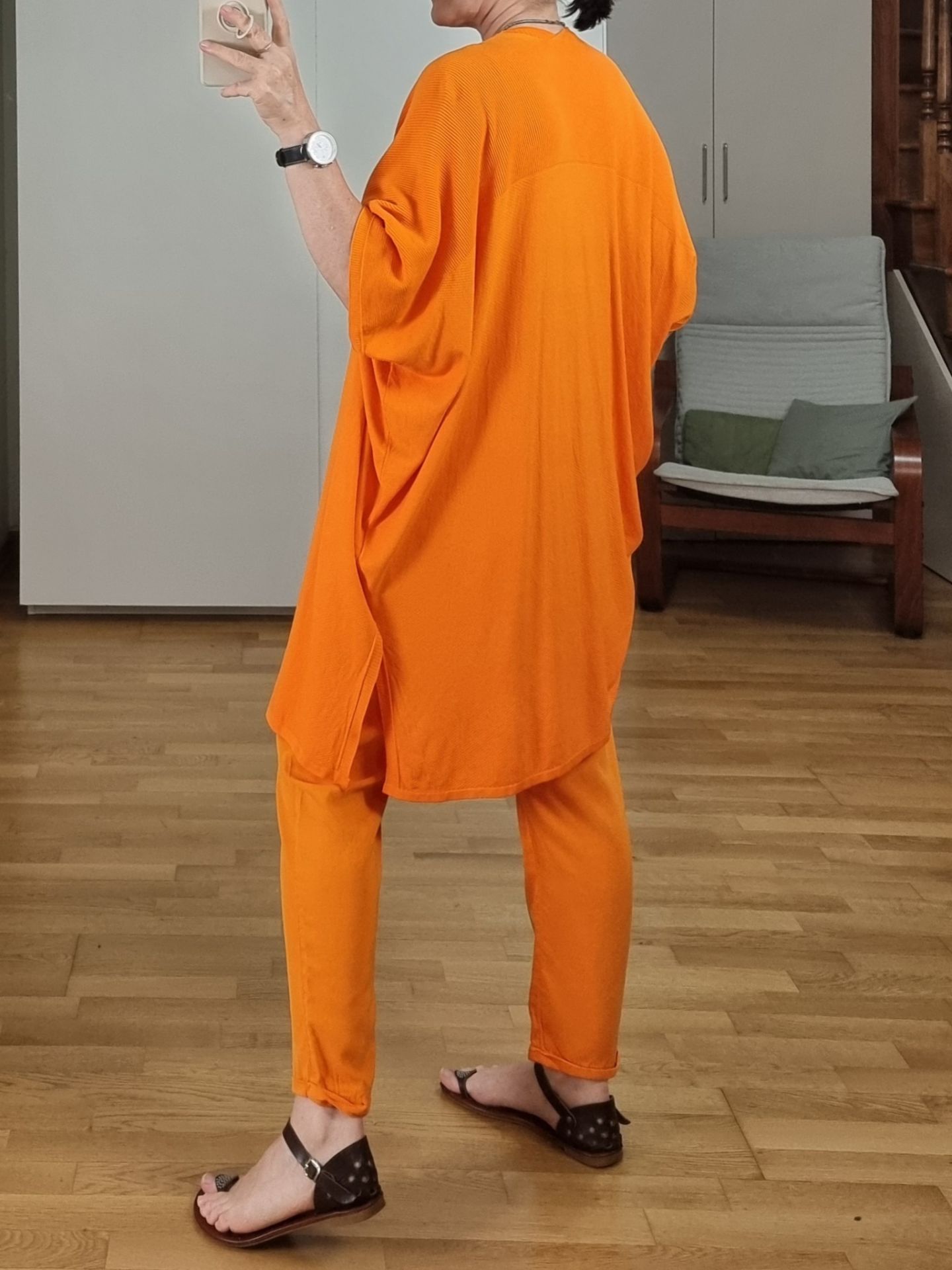 Turuncu tonunun enerjisiyle tasarlanan bu uzun triko hırka, soğuk ip dokumasıyla yaz ve mevsim geçişlerine uygun hafiflikte tasarlanmıştır. Yan yırtmaç detayları hem hareket kolaylığı hem de modern bir görünüm sunar. Oversize kalıbı sayesinde her bedene uyum sağlar. Twinset kombinler için aynı dokuda bluzlarla tamamlanabilir. Günlük stiline canlı bir dokunuş katmak isteyen kadınlar için vazgeçilmez bir parça.