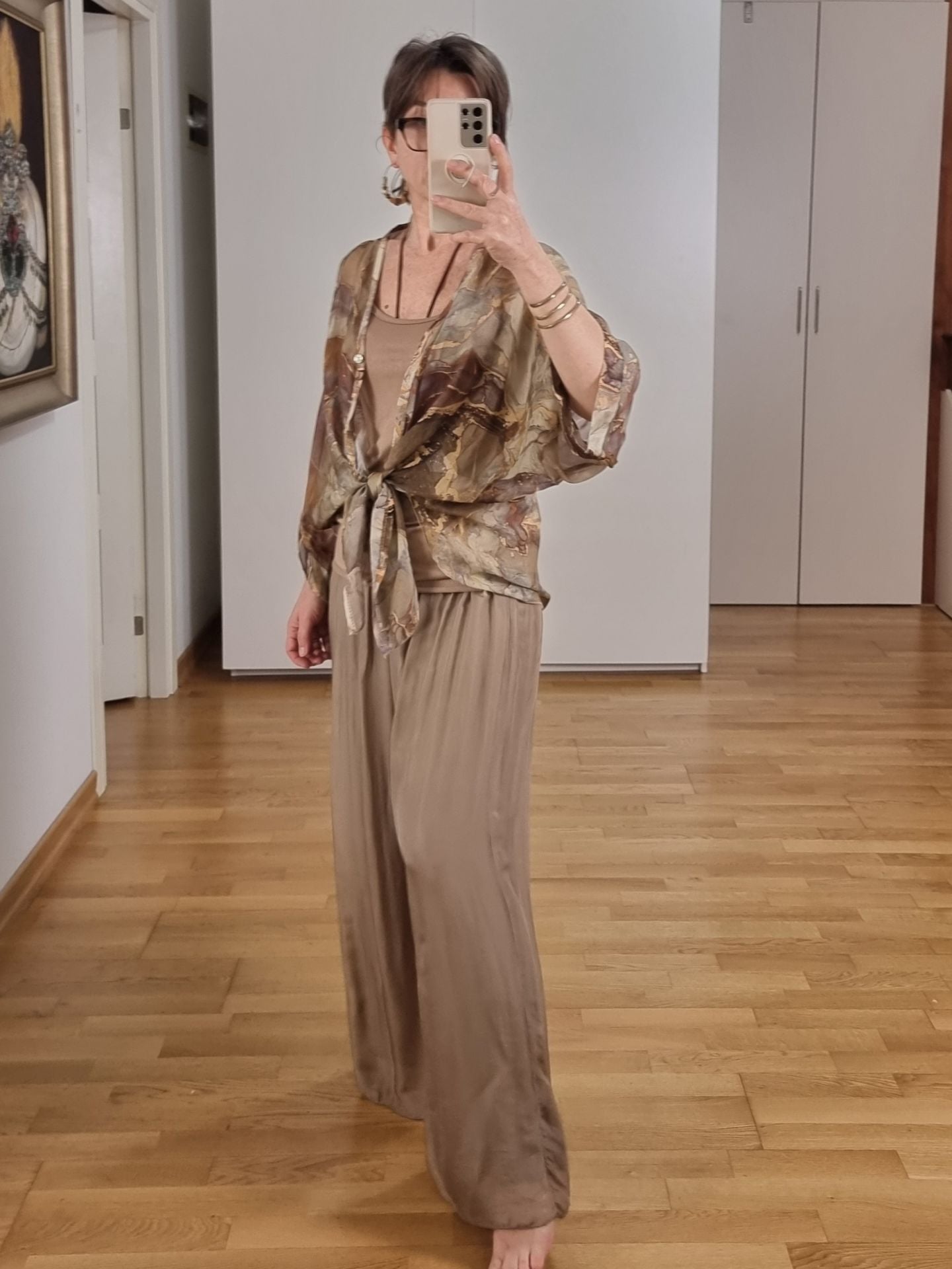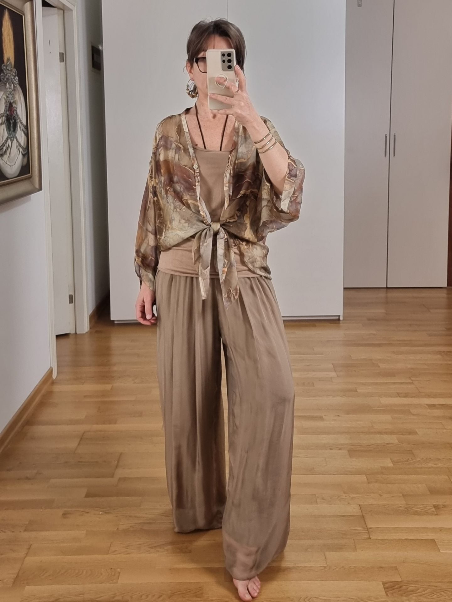 Şifon İpek Pantolon Açık Kahve İtalyan