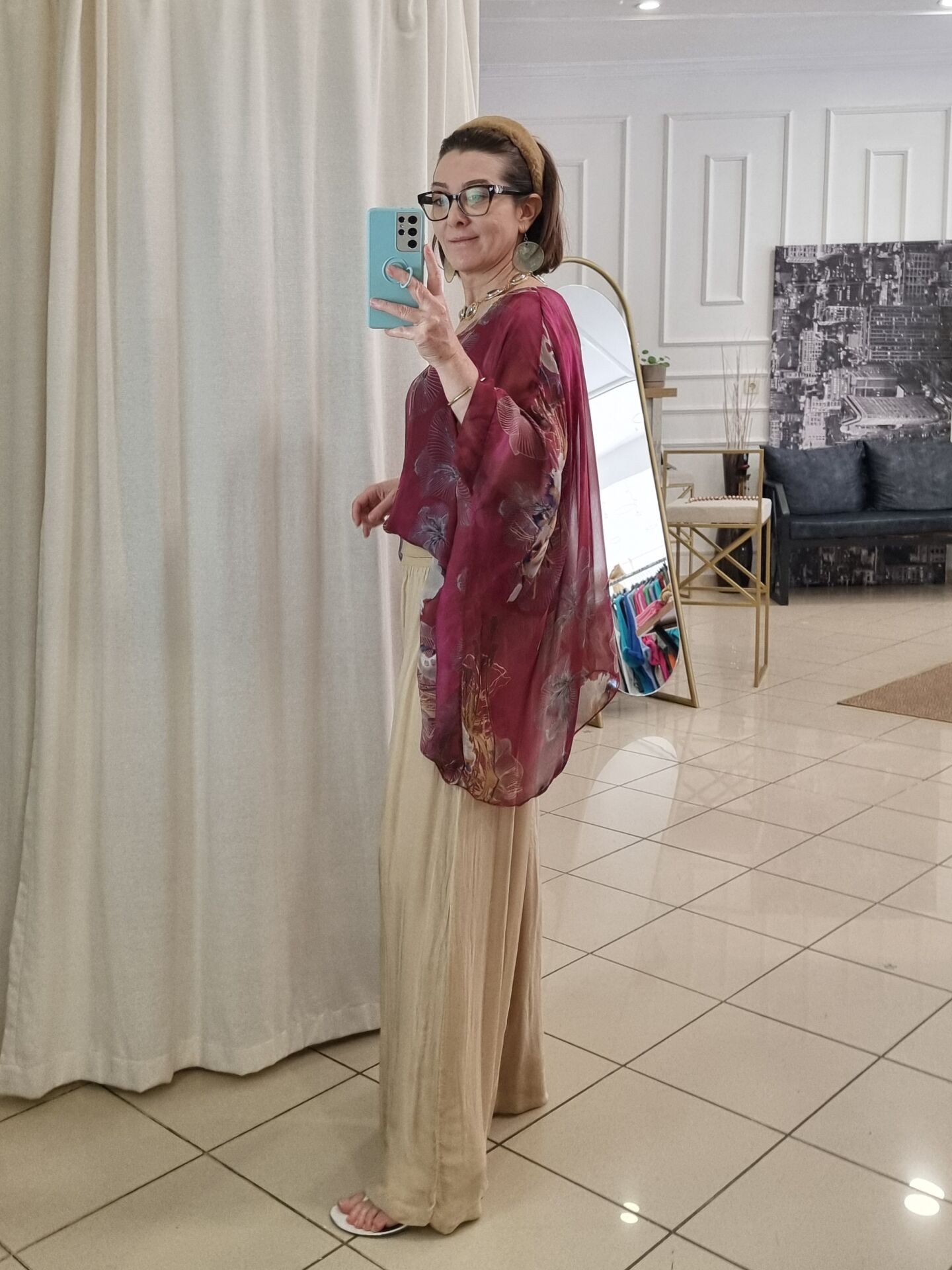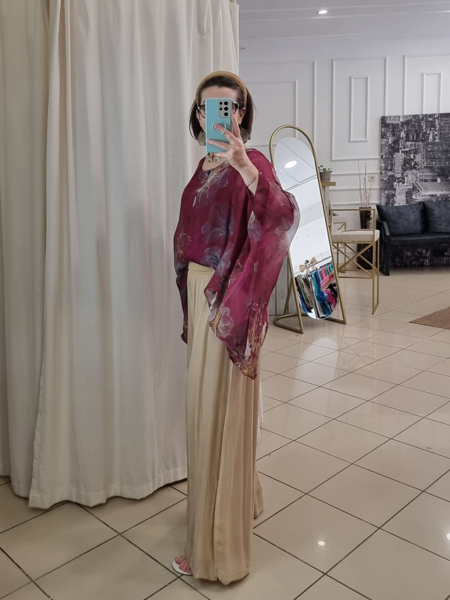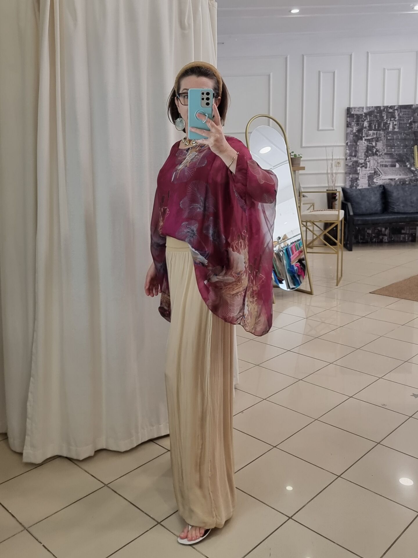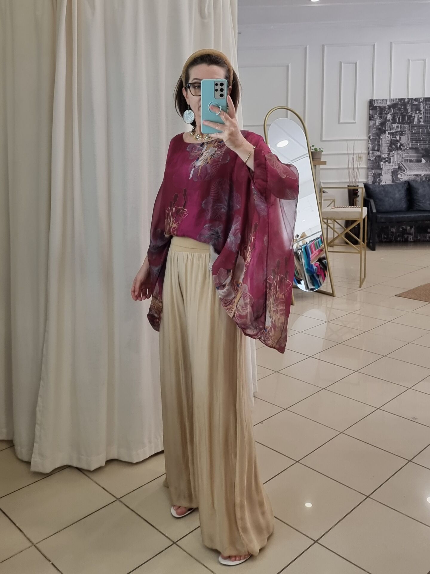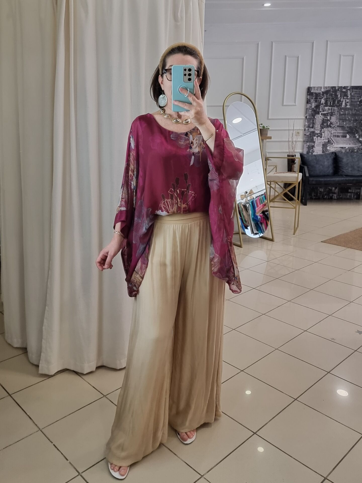 Bal tonunun sıcaklığıyla ipeksi dokunun birleştiği bu ipek pantolon, yaz aylarının vazgeçilmez konfor ve şıklığını sunar. Astarlı yapısı sayesinde iç göstermezken, esnek beli 46/48 bedene kadar uyum sağlar. Hafifliğiyle teninizde neredeyse yok hissi bırakırken, güçlü bir duruş sergiler. Özellikle beyaz, camel ve doğa tonlarıyla kombinlendiğinde stilinize sakin ama dikkat çeken bir zarafet katar.