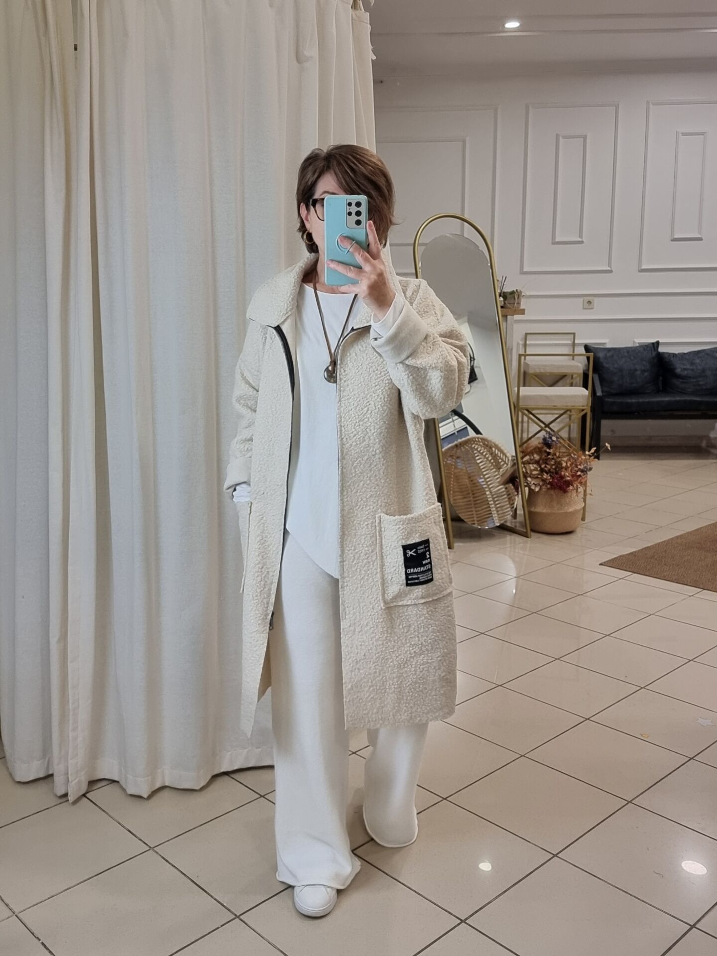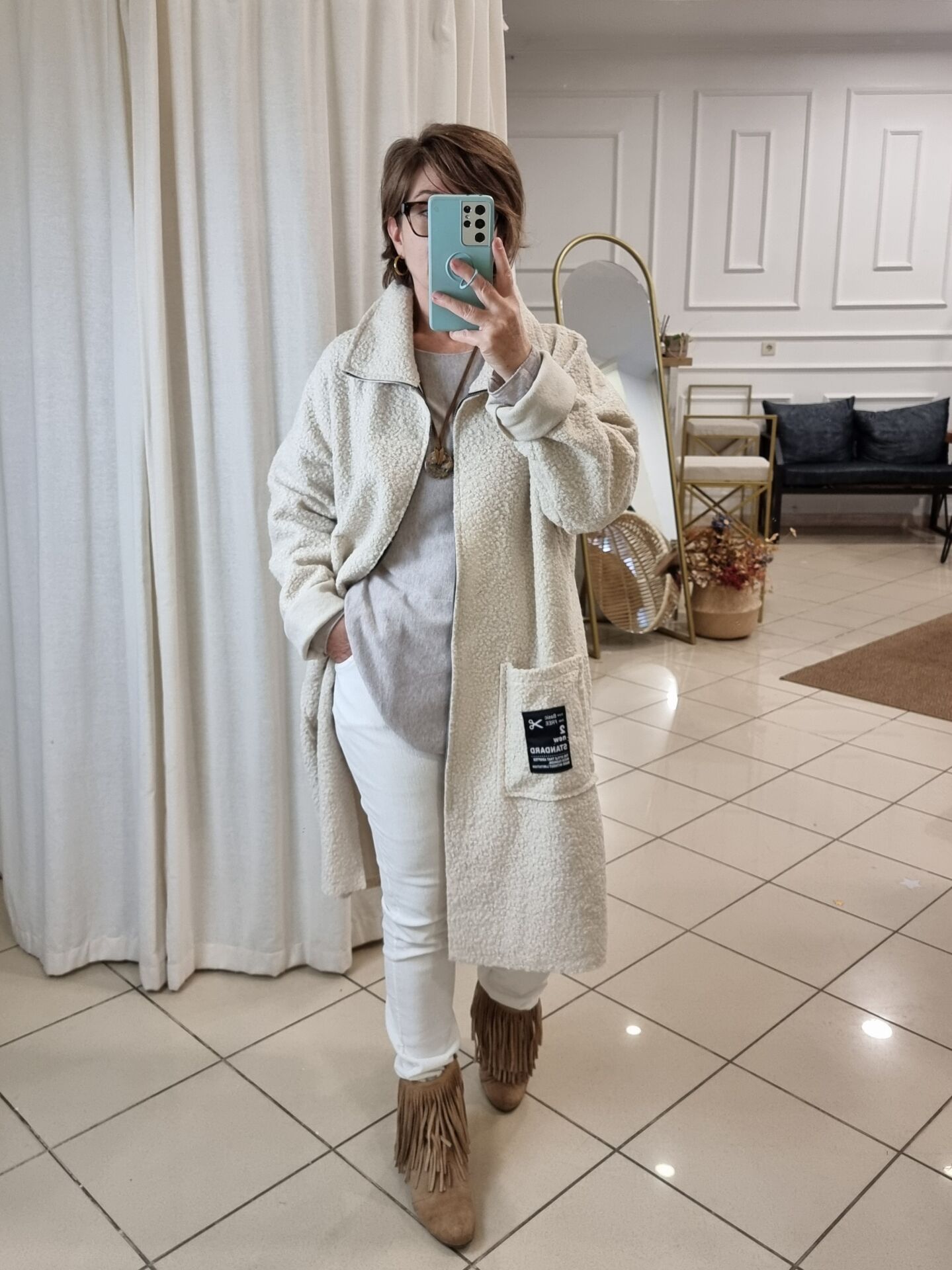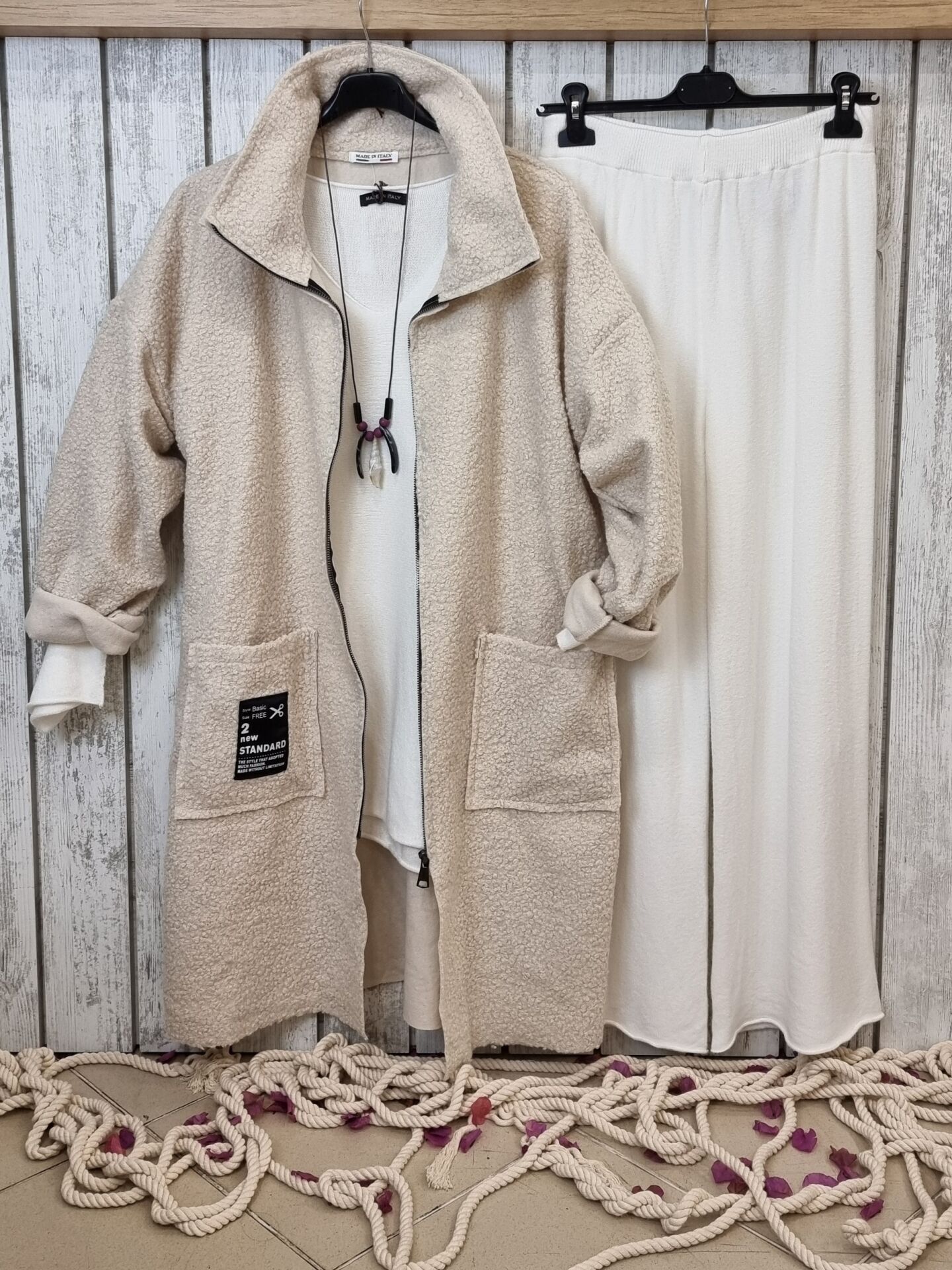 İtalyan Buklet Manto Kaban Ekru.