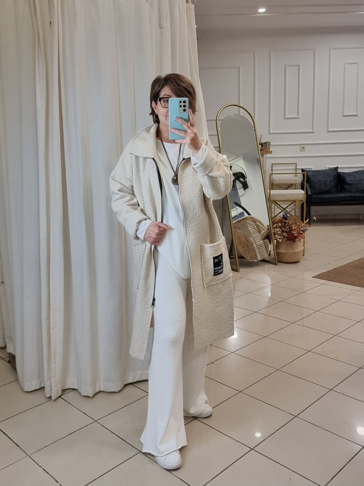 İtalyan Buklet Manto Kaban Ekru