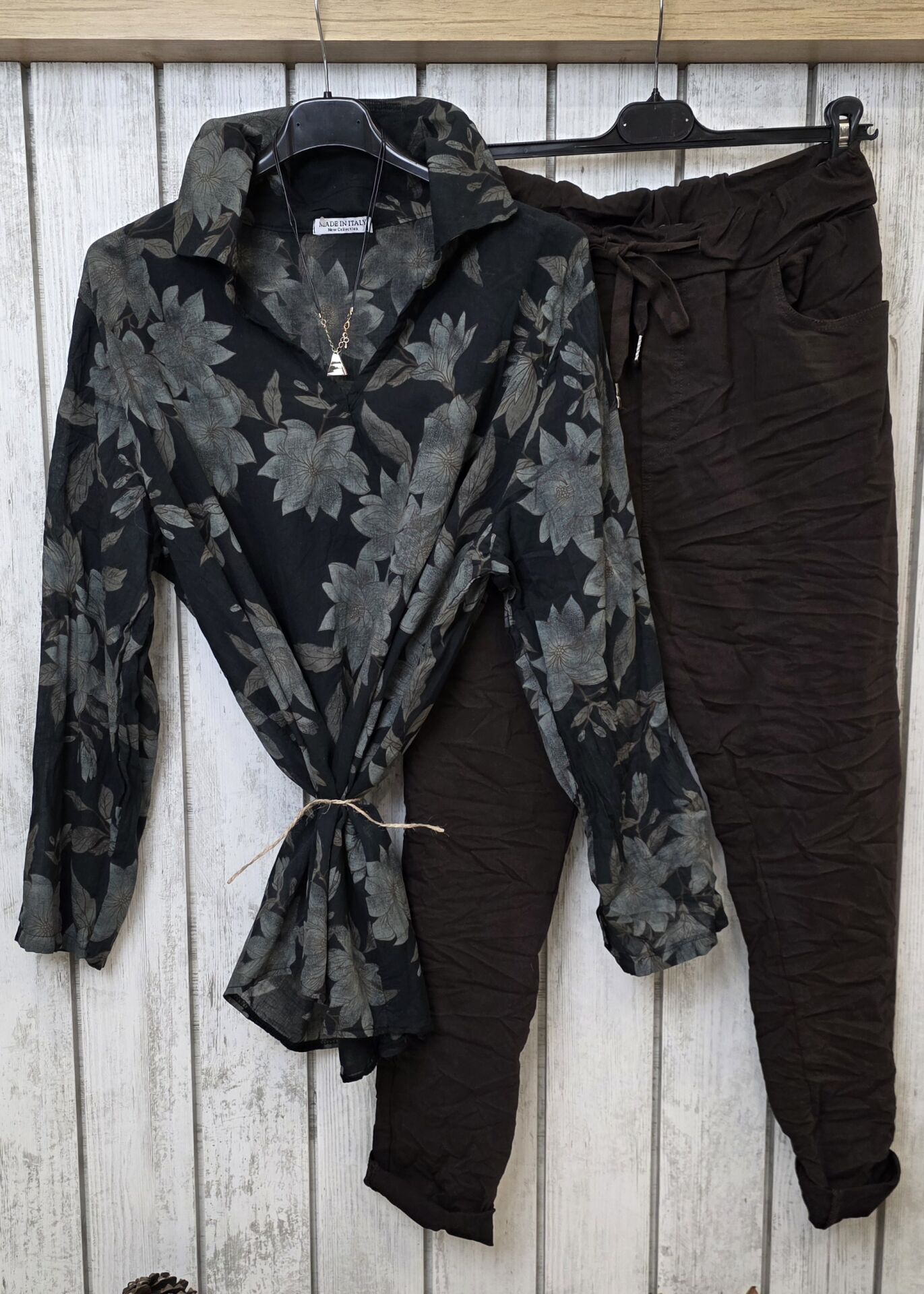 İnce Pamuklu İtalyan Gömlek Siyah Desenli