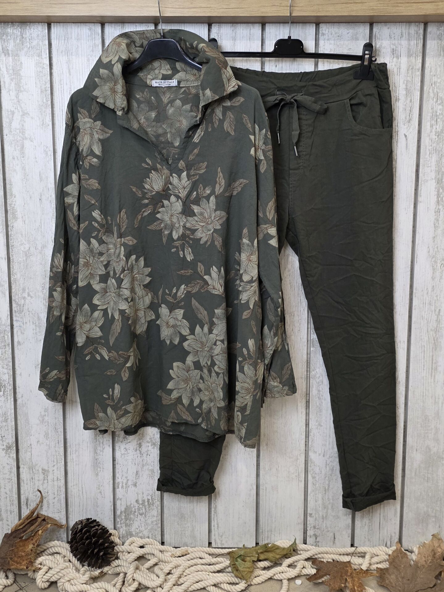 İnce Pamuklu İtalyan Gömlek Haki Desenli