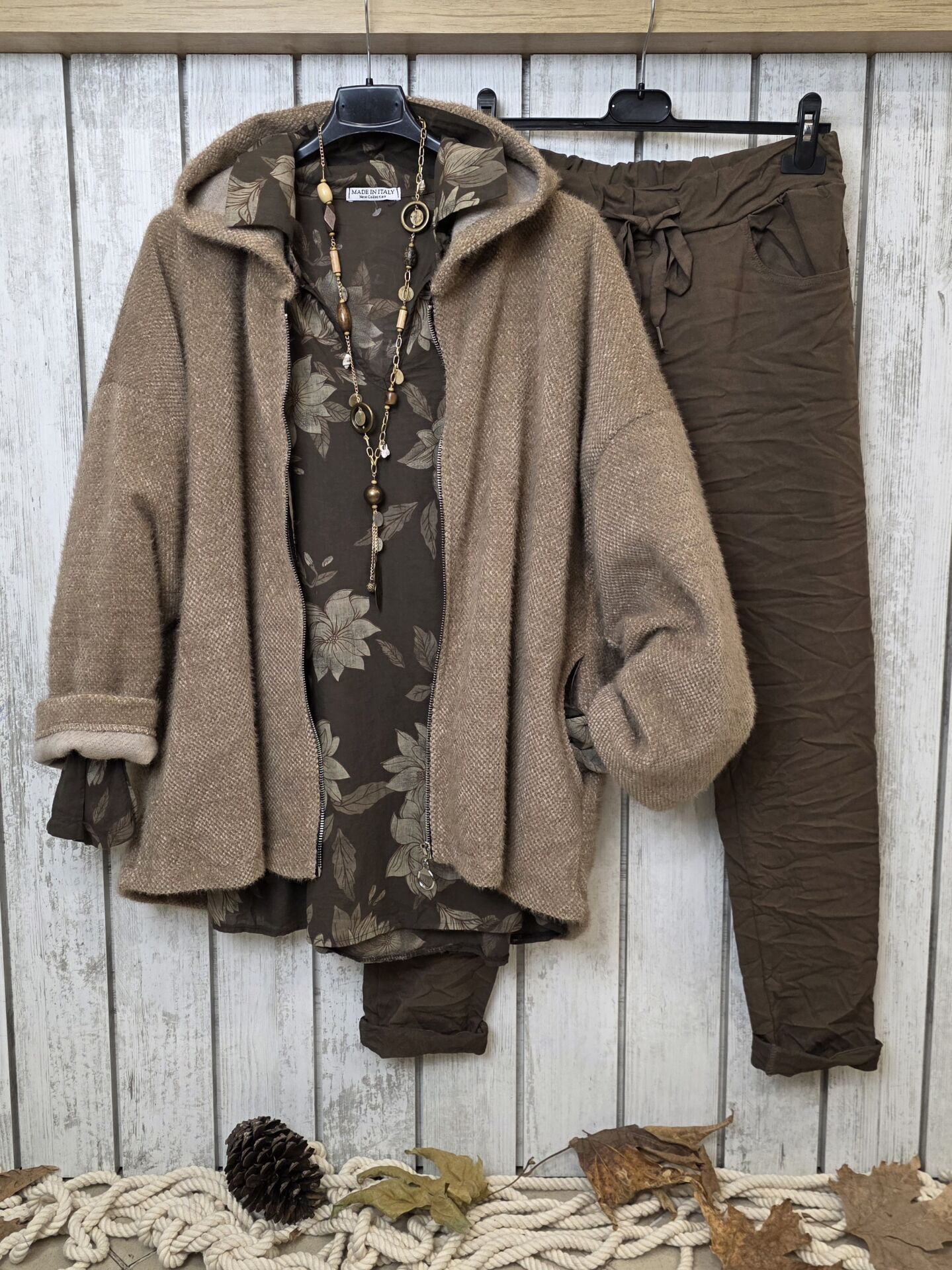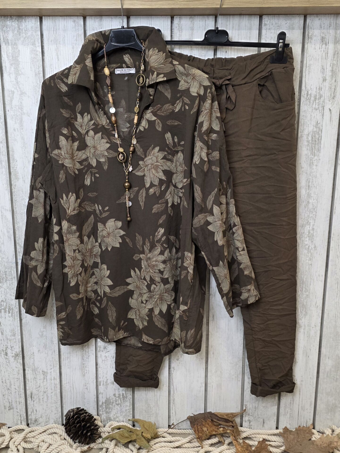 İnce Pamuklu İtalyan Gömlek Kahve Desenli