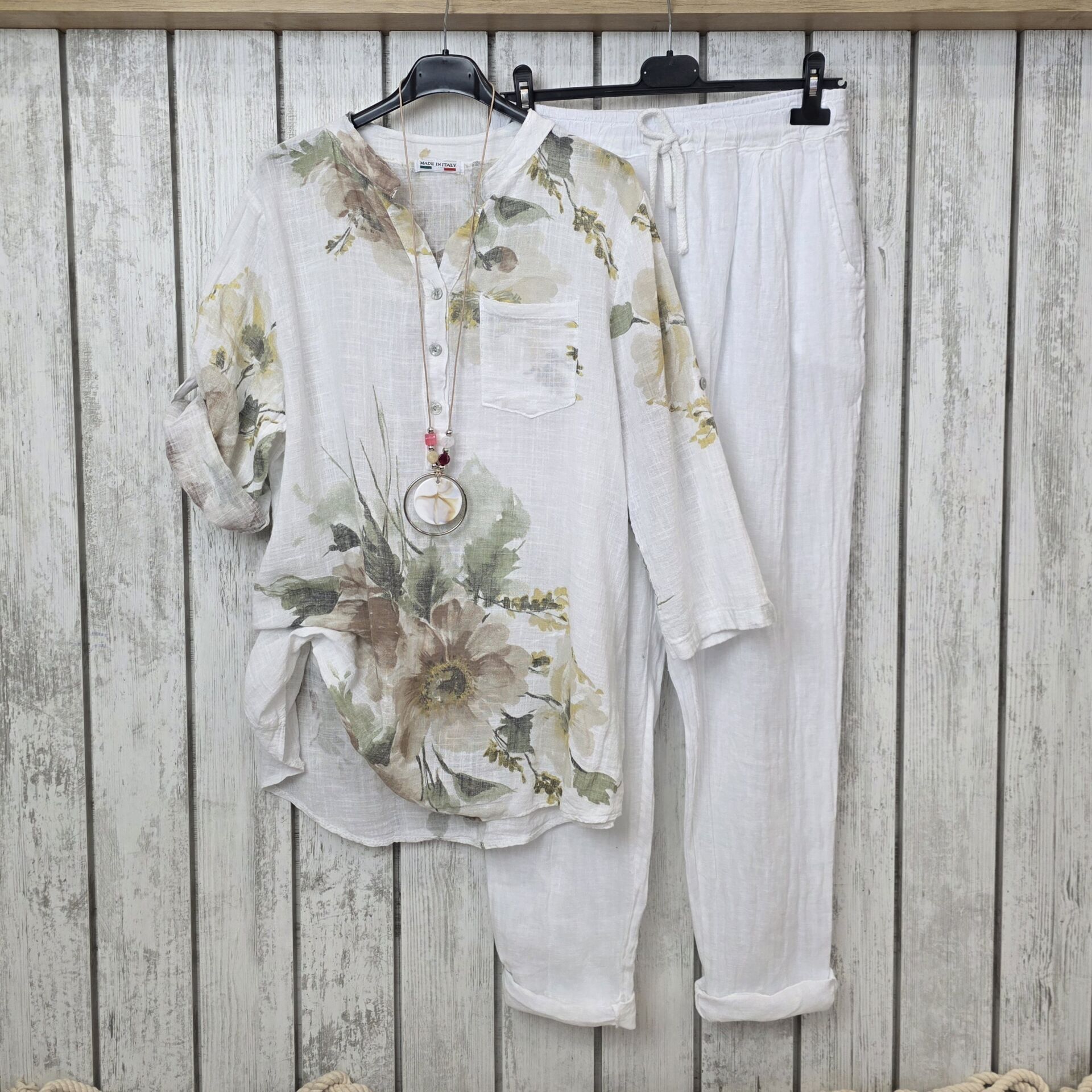 İtalyan Havuç Kesim Keten Beyaz Pantolon