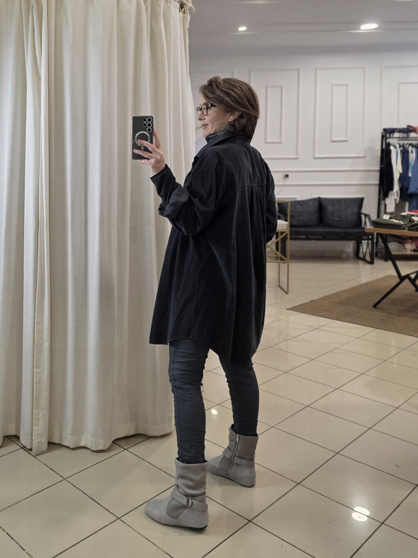 Oversize İtalyan Kadife Tunik Gömlek Antrasit