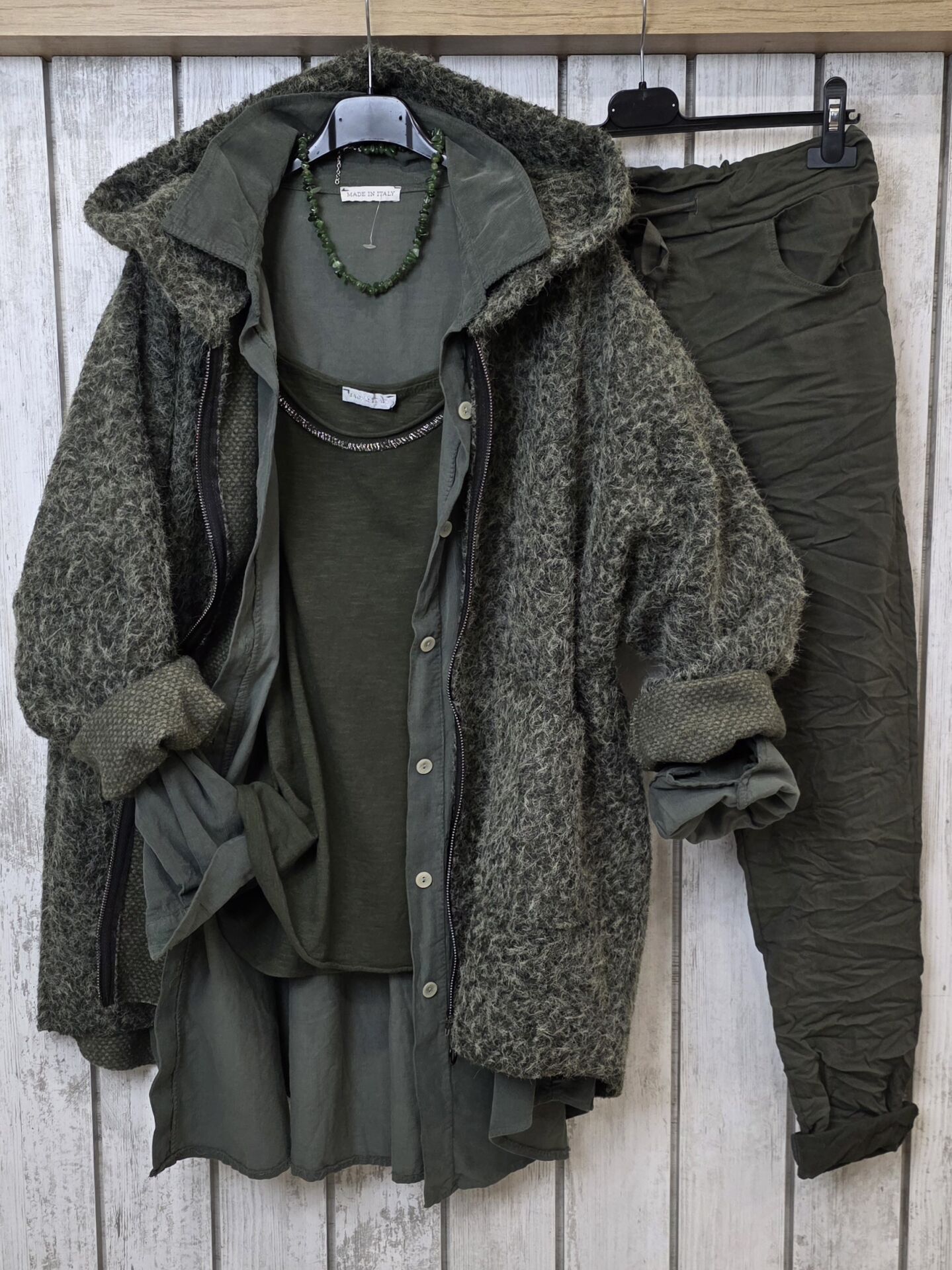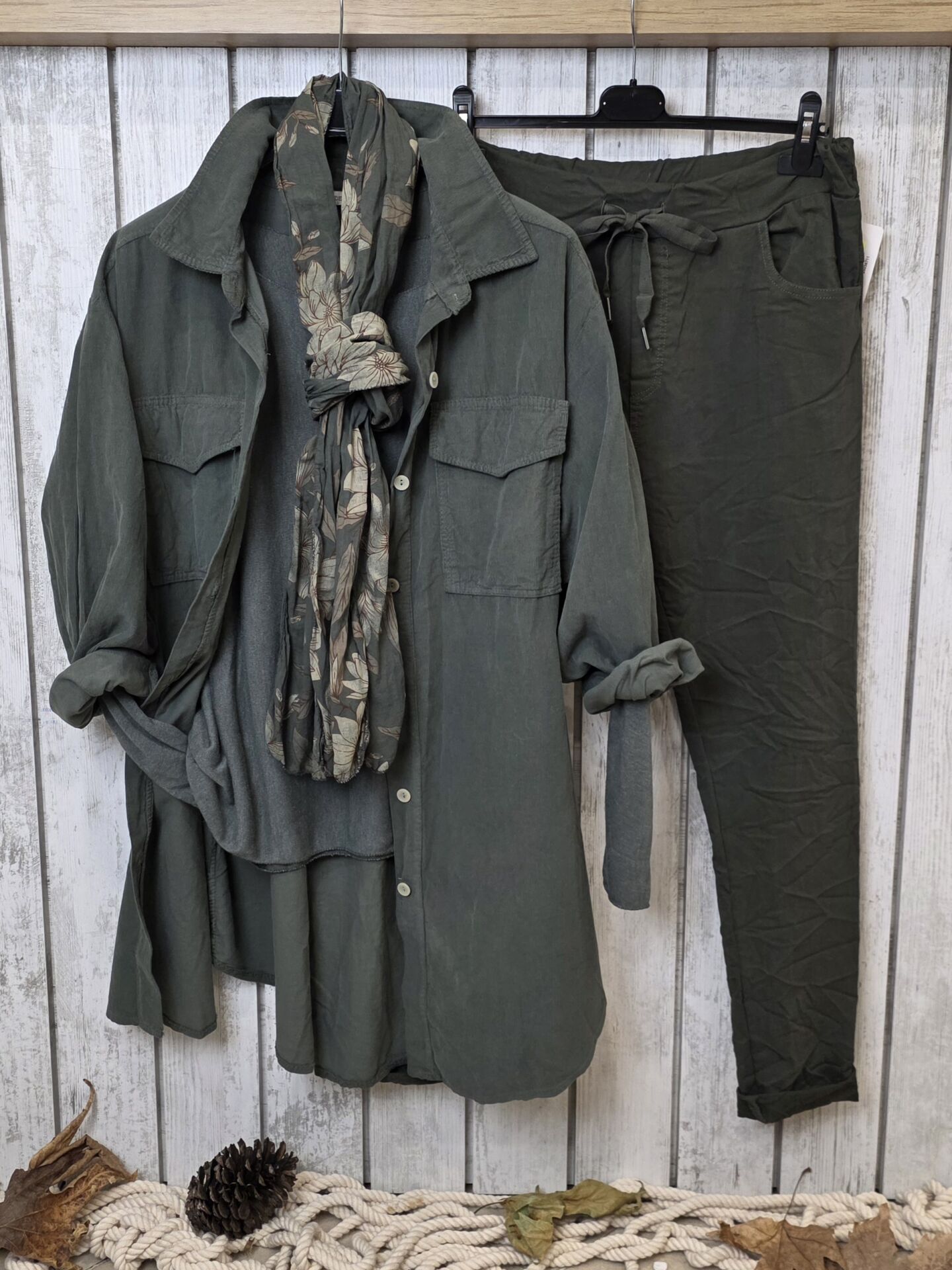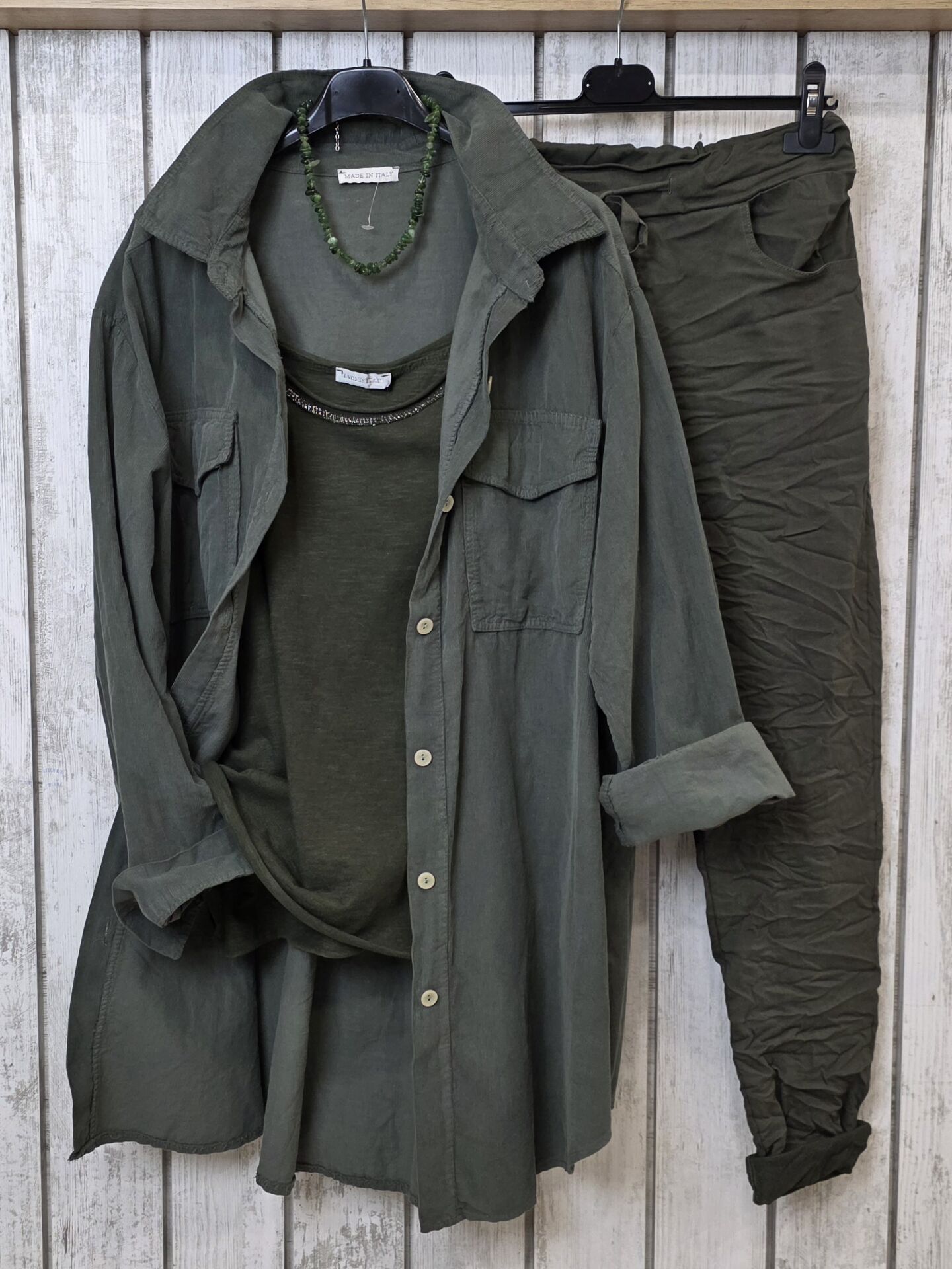 Oversize İtalyan Kadife Tunik Gömlek Haki