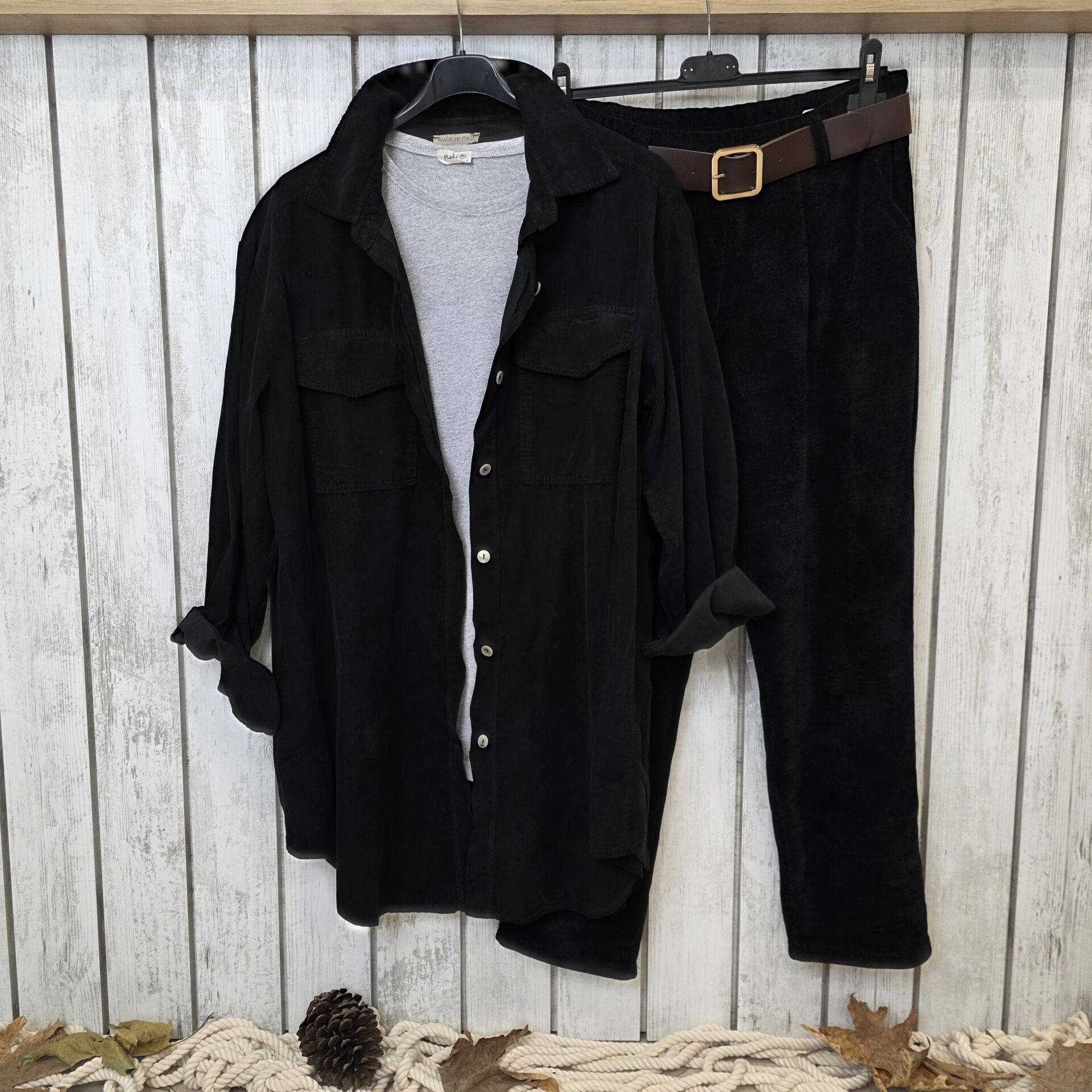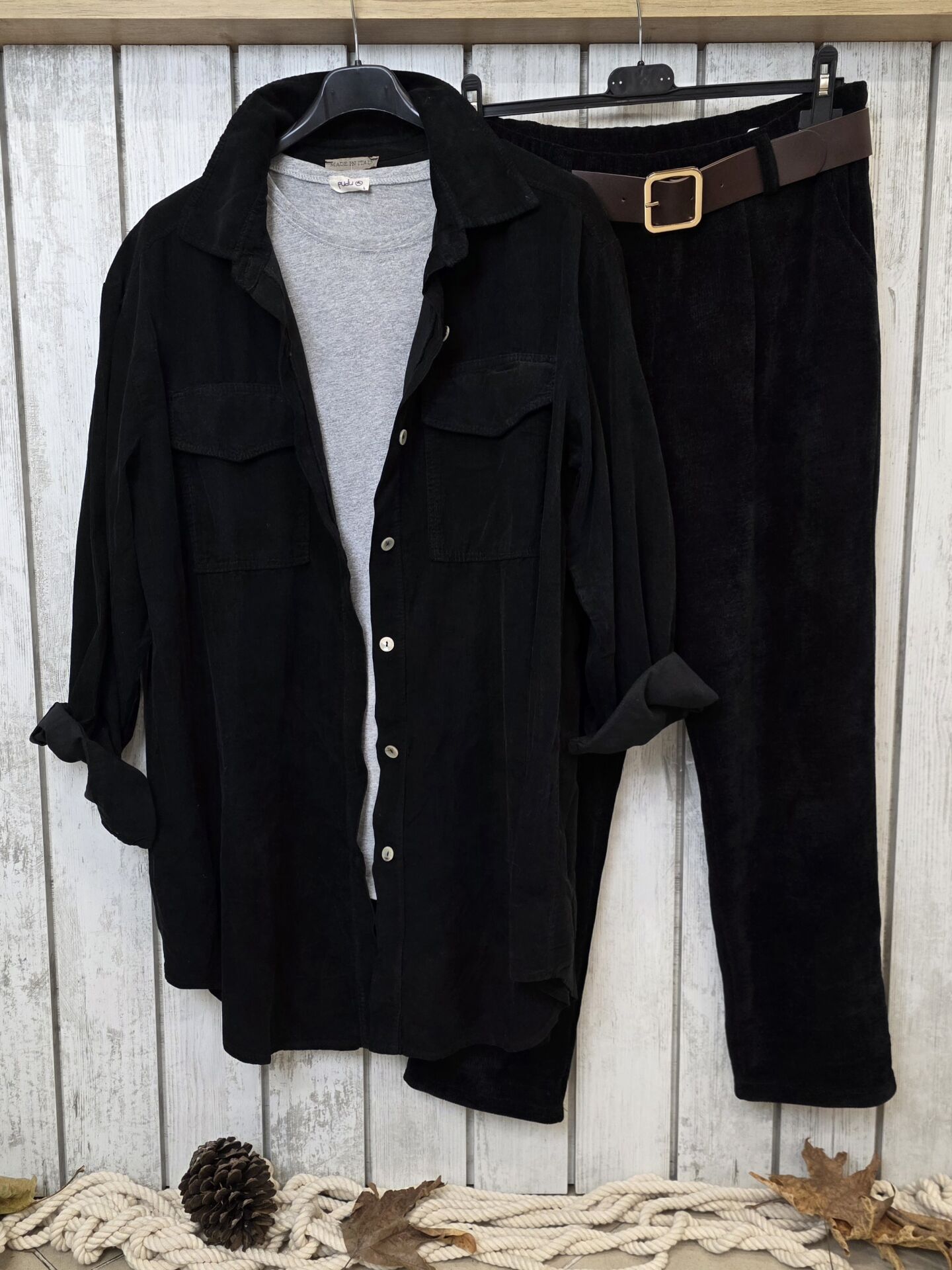 Oversize İtalyan Kadife Tunik Gömlek Siyah