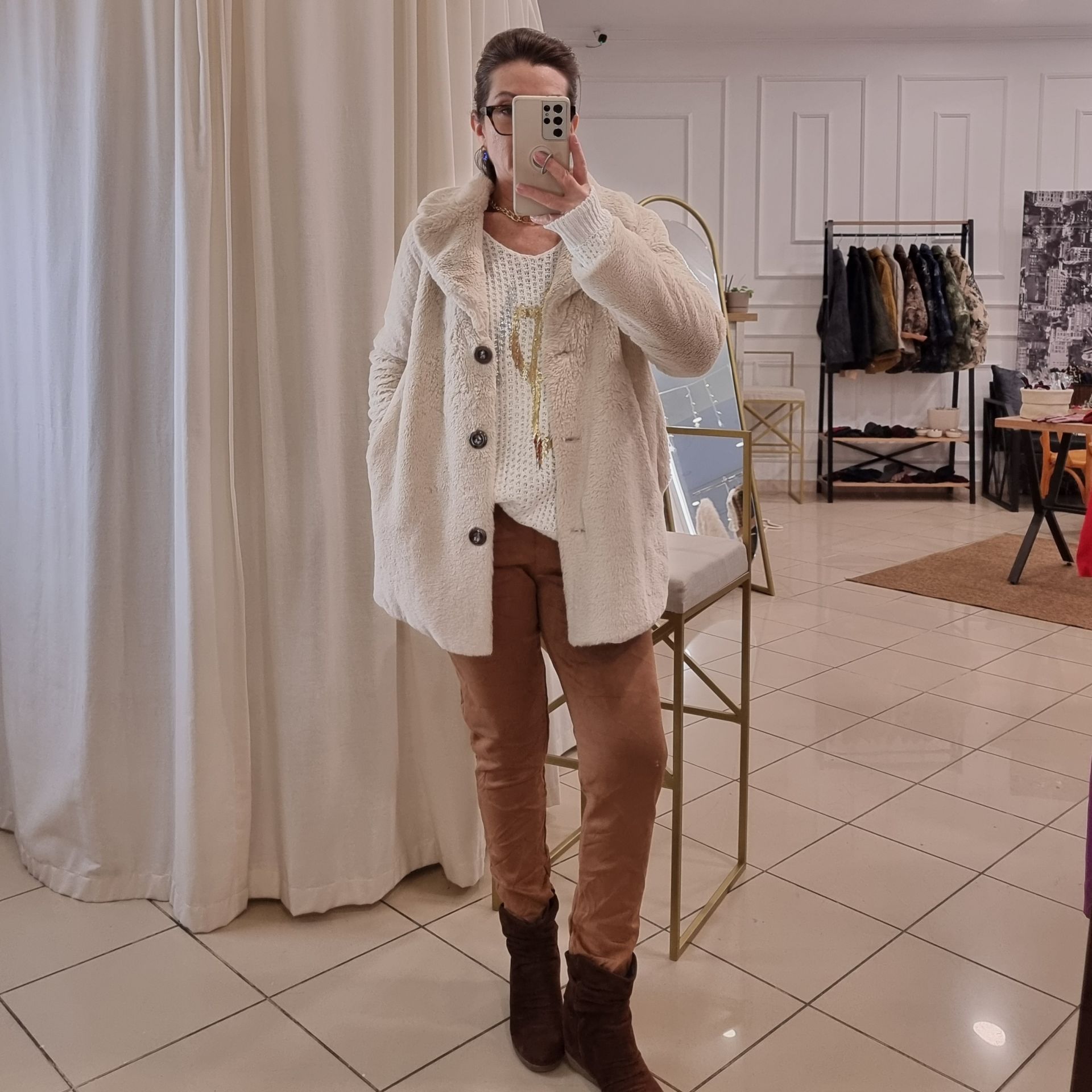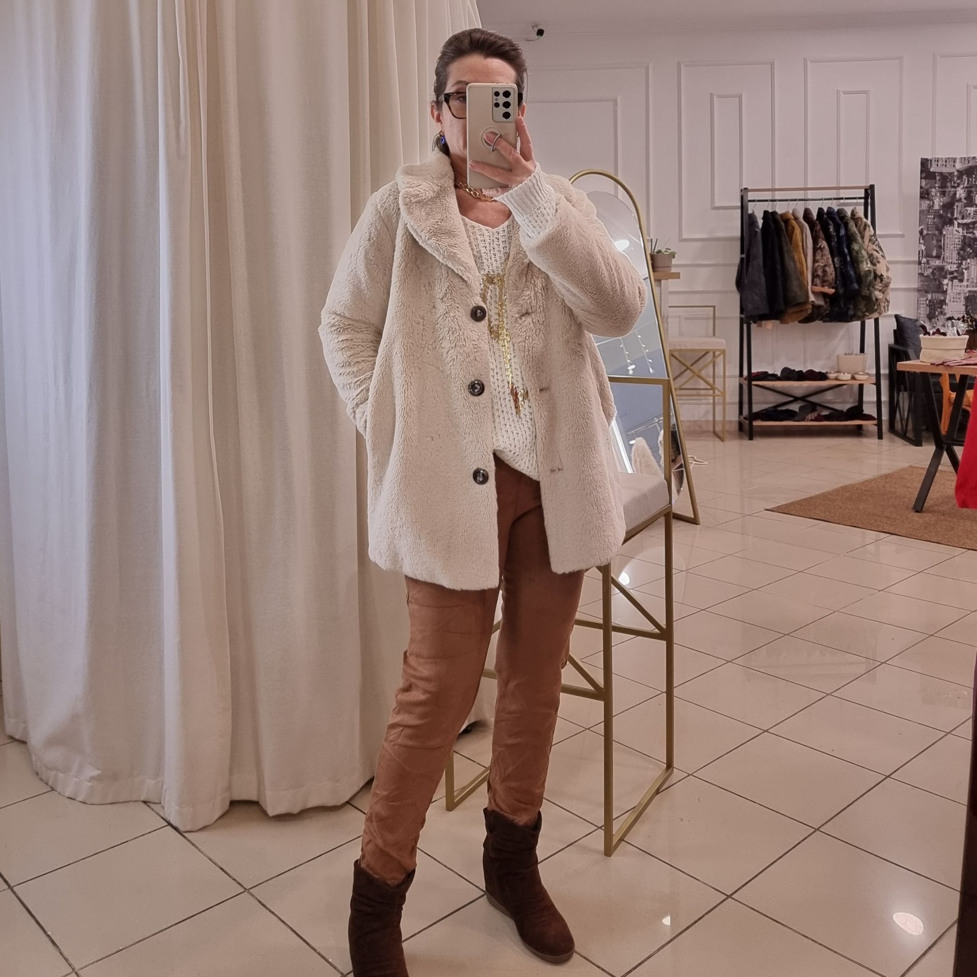 Bej renginin zarafetini yansıtan İtalyan kürk kaban, soğuk kış günlerinde şıklığınızdan ödün vermemeniz için tasarlandı. Astarlı yapısı sayesinde hem sıcak tutar hem de rahatlık sunar. Yan cepleri, işlevsellik sağlarken metalik düğmeli önü modern bir dokunuş katar. Standart beden yapısı S, M ve L bedenlere mükemmel uyum sağlar. 54 cm eni ve 73 cm boyuyla hem kısa hem de uzun kombinler için ideal bir seçimdir. %100 polyesterden üretilen bu suni tasarım kürk , 30°C'de makinede yıkanabilir ve uzun ömürlü bir kullanım sunar. İtalyan kürk kaban ile kış stilinizi bir üst seviyeye taşıyın.