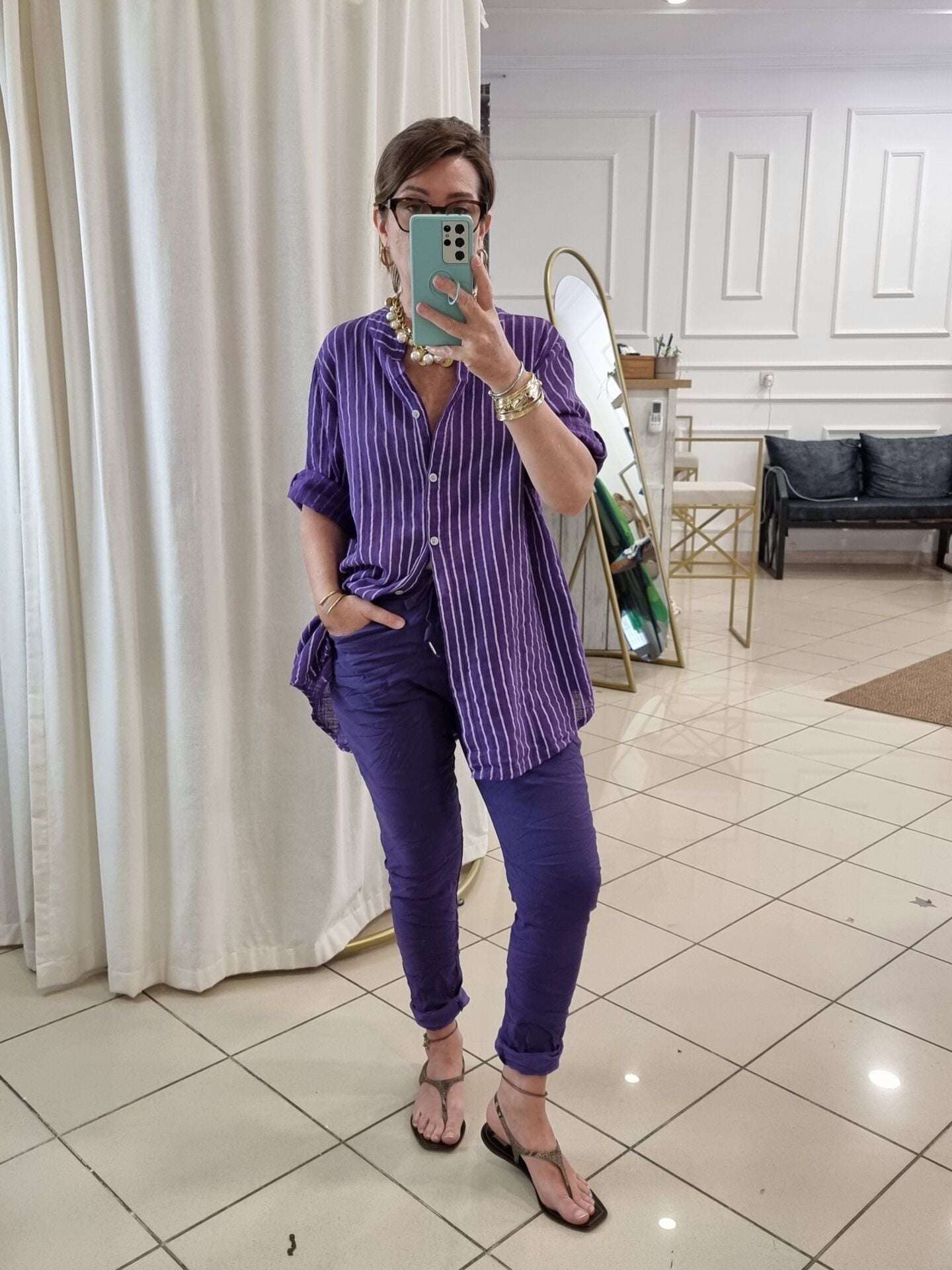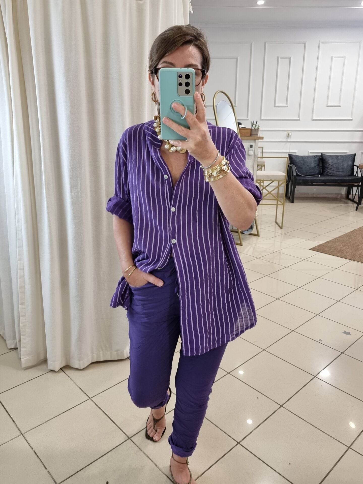 Likralı İtalyan Pantolon Mor