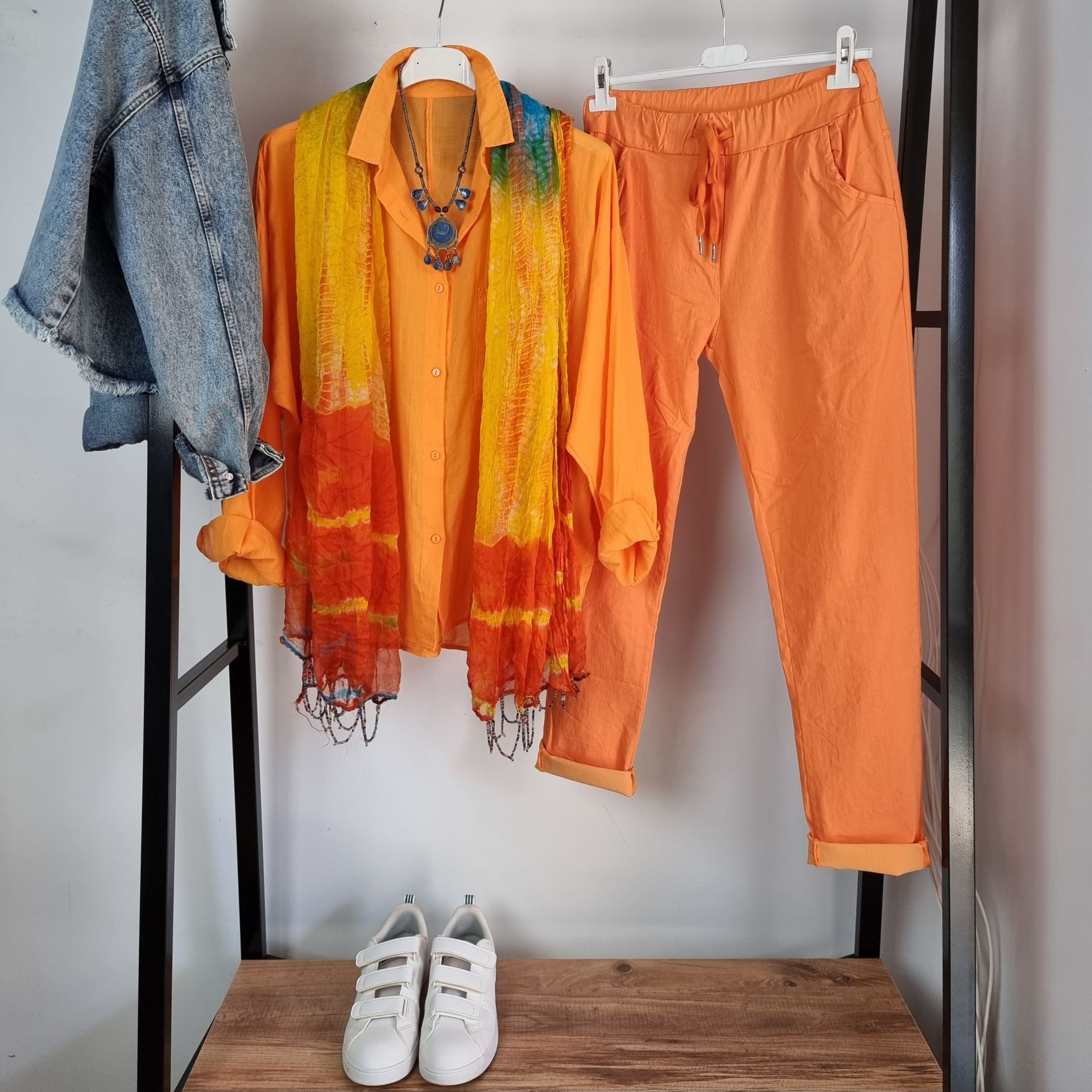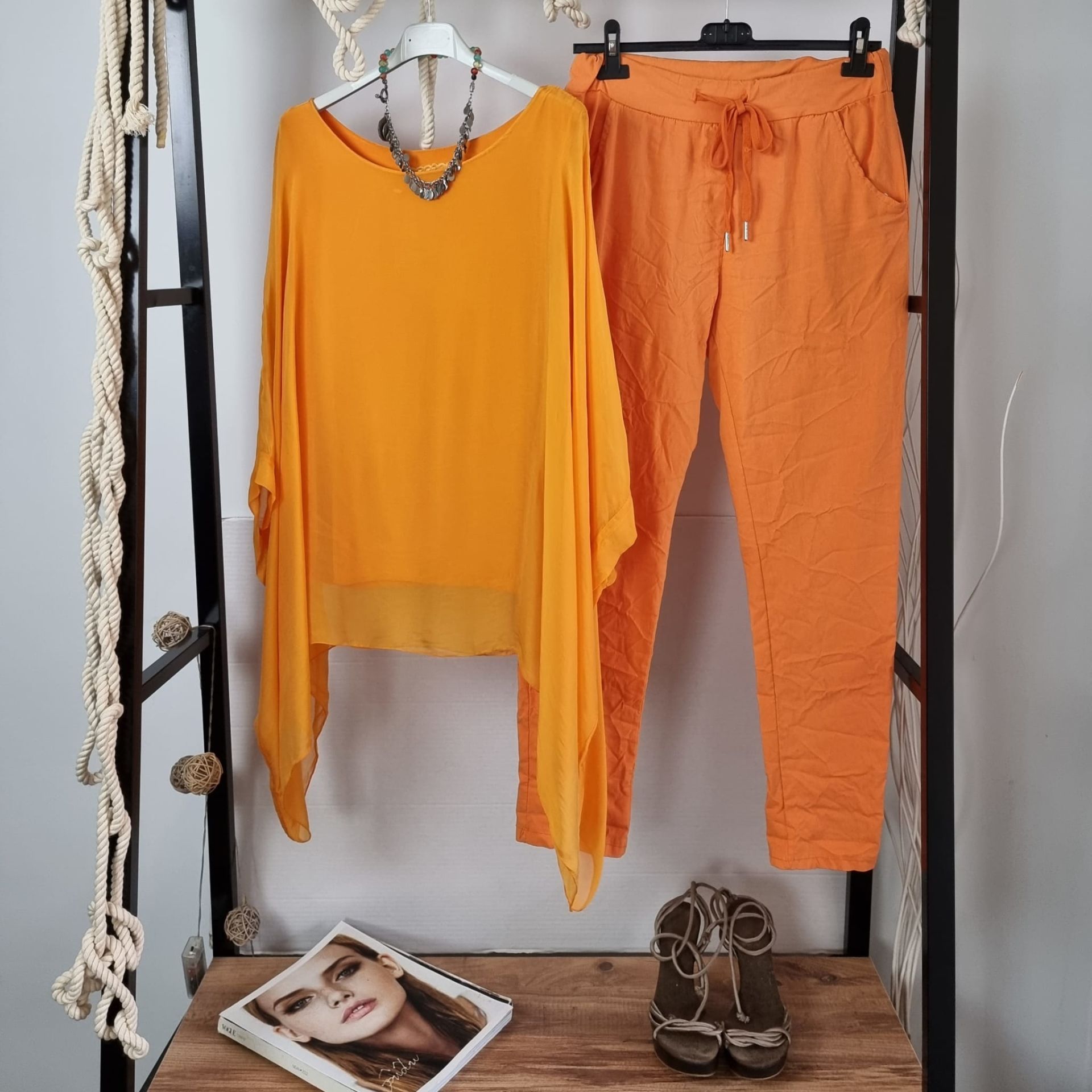 Canlı ve enerjik turuncu tonuyla öne çıkan bu İtalyan pantolon, esnek dokuması sayesinde gün boyu rahatlık sunar. Beli lastikli ve bağcıklı yapısıyla konforlu bir kullanım sağlarken, likralı yapısı sayesinde vücuda esneyerek uyumlanır. Mevsimlik formu sayesinde ilkbahar ve yaz aylarında favori parçalardan biri olmaya aday. Şehir stiline renk katmak isteyenler için dinamik ama şık bir alternatif sunar.