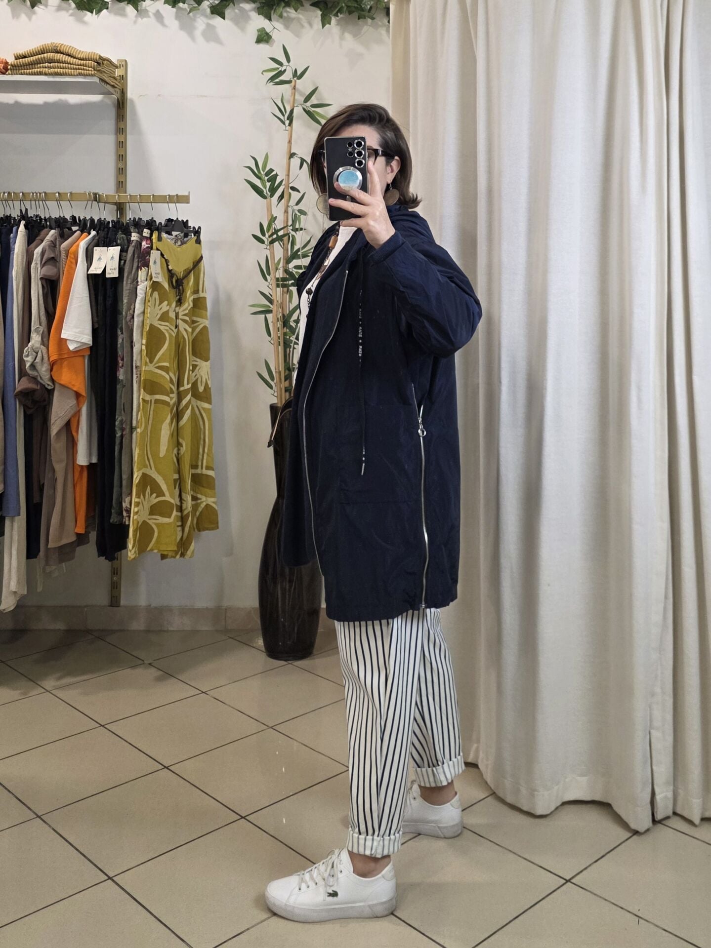 Yağmurluk iki kalıp olarak kullanılabiliyor. Yan fermuarları açılınca genişliyor ve beden olarak 50/52 bedene kadar uyumlanıyor.