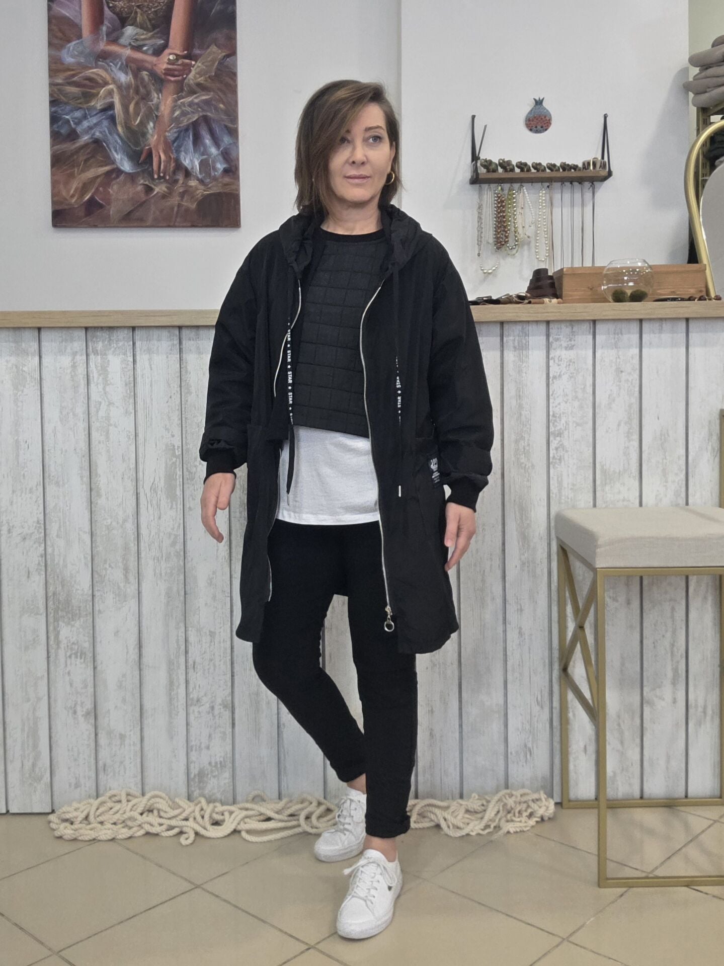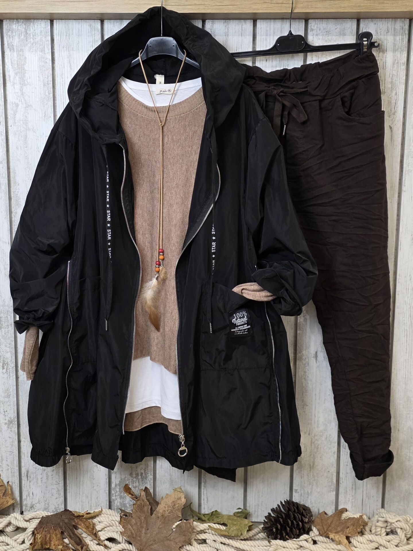 Kapüşonlu, bağcıklı.