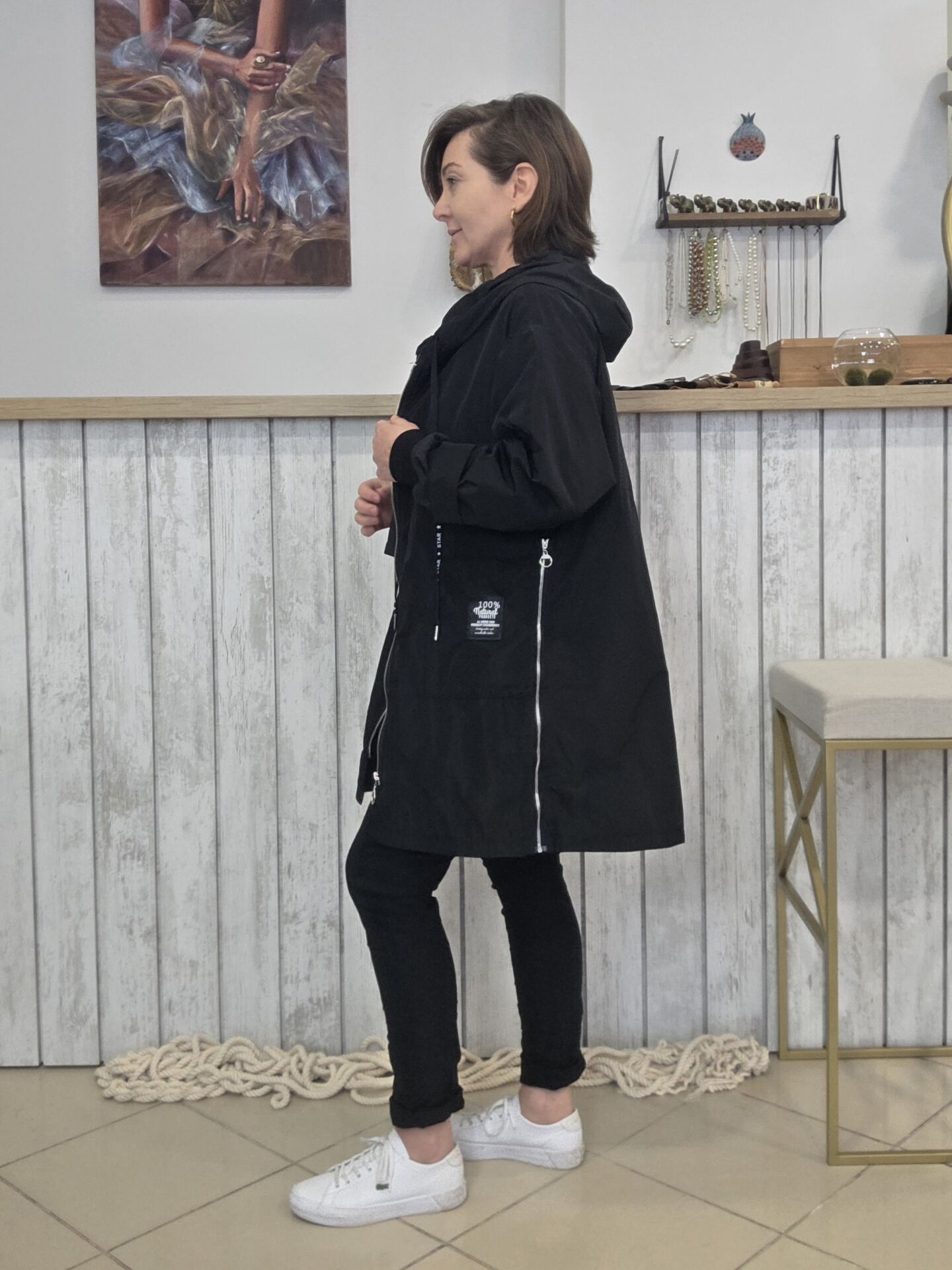 Yağmurluk iki kalıp olarak kullanılabiliyor. Yan fermuarları açılınca genişliyor ve beden olarak 50/52 bedene kadar uyumlanıyor.