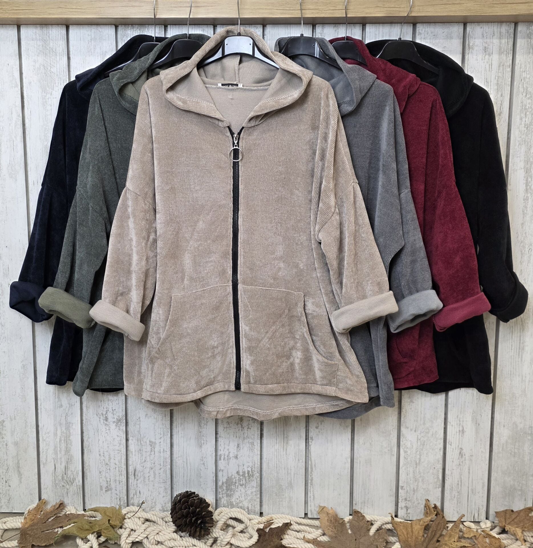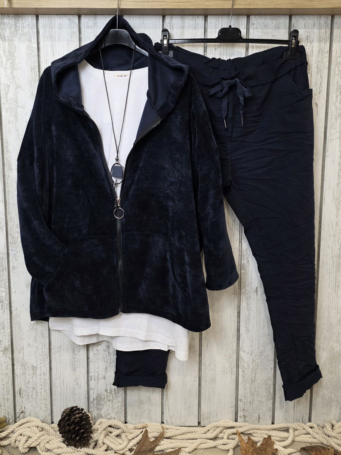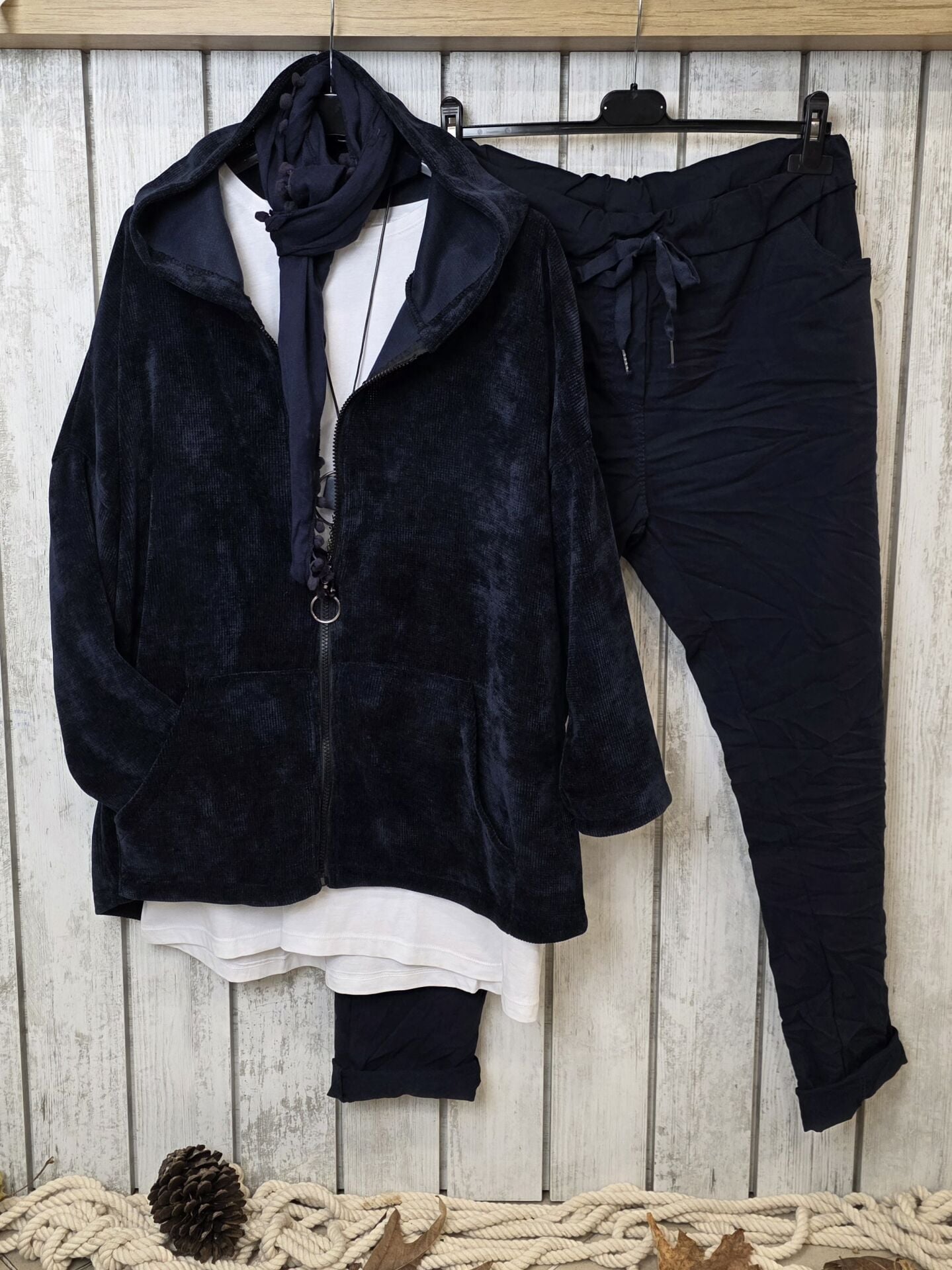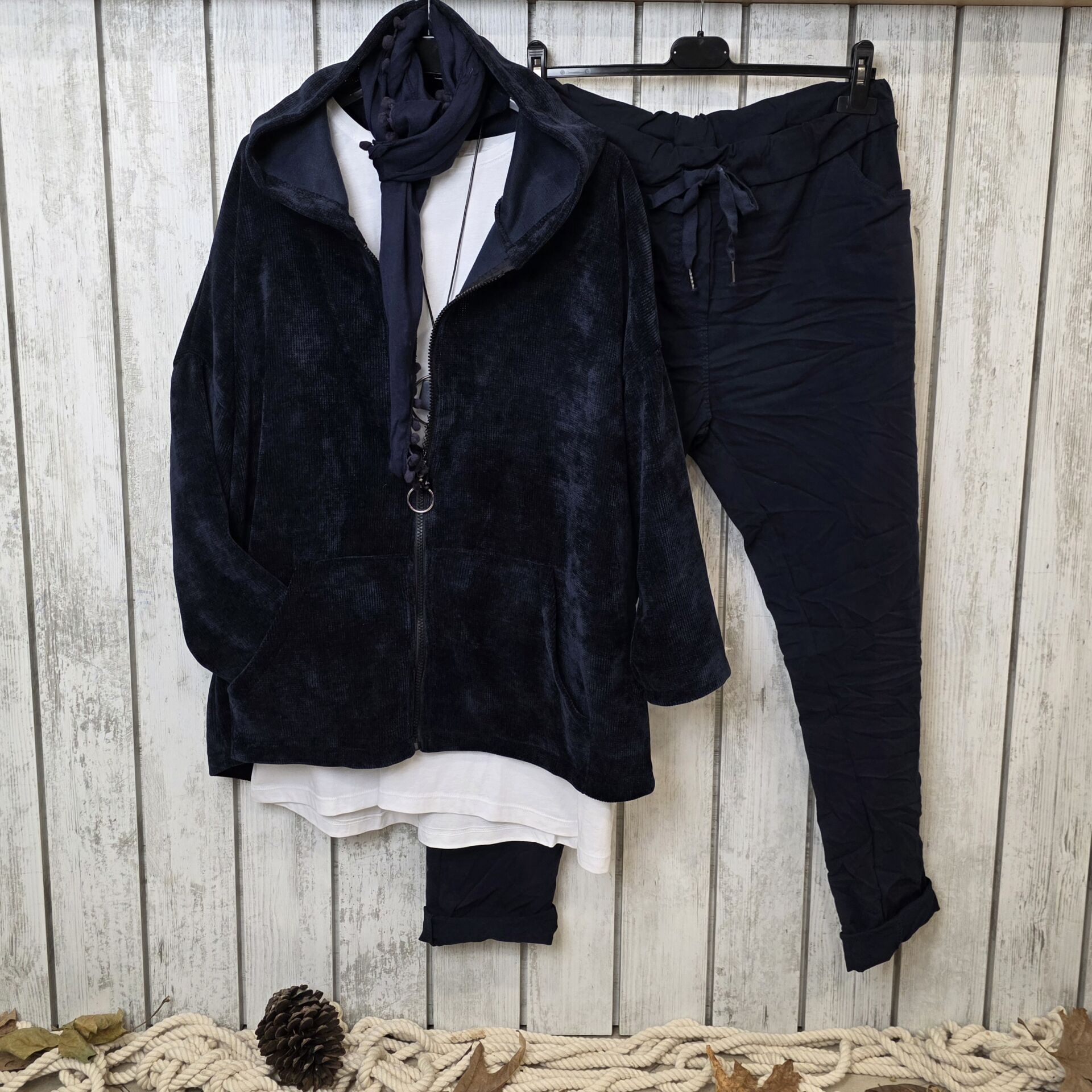 Lacivert Kapüşonlu Kadife Sweat Ceket