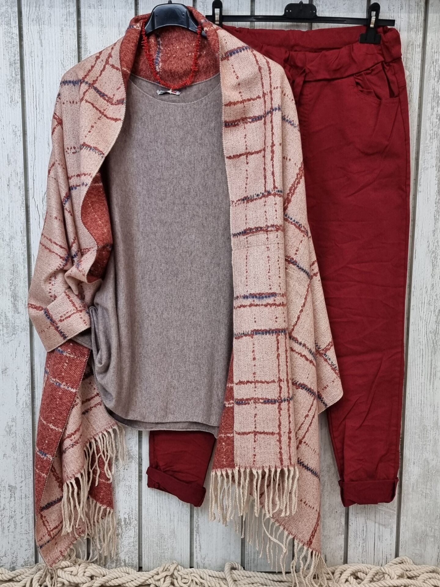 Çift Taraflı Kareli Kaşmir Şal Bordo