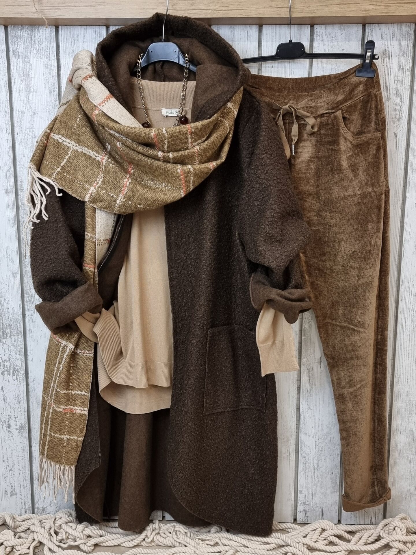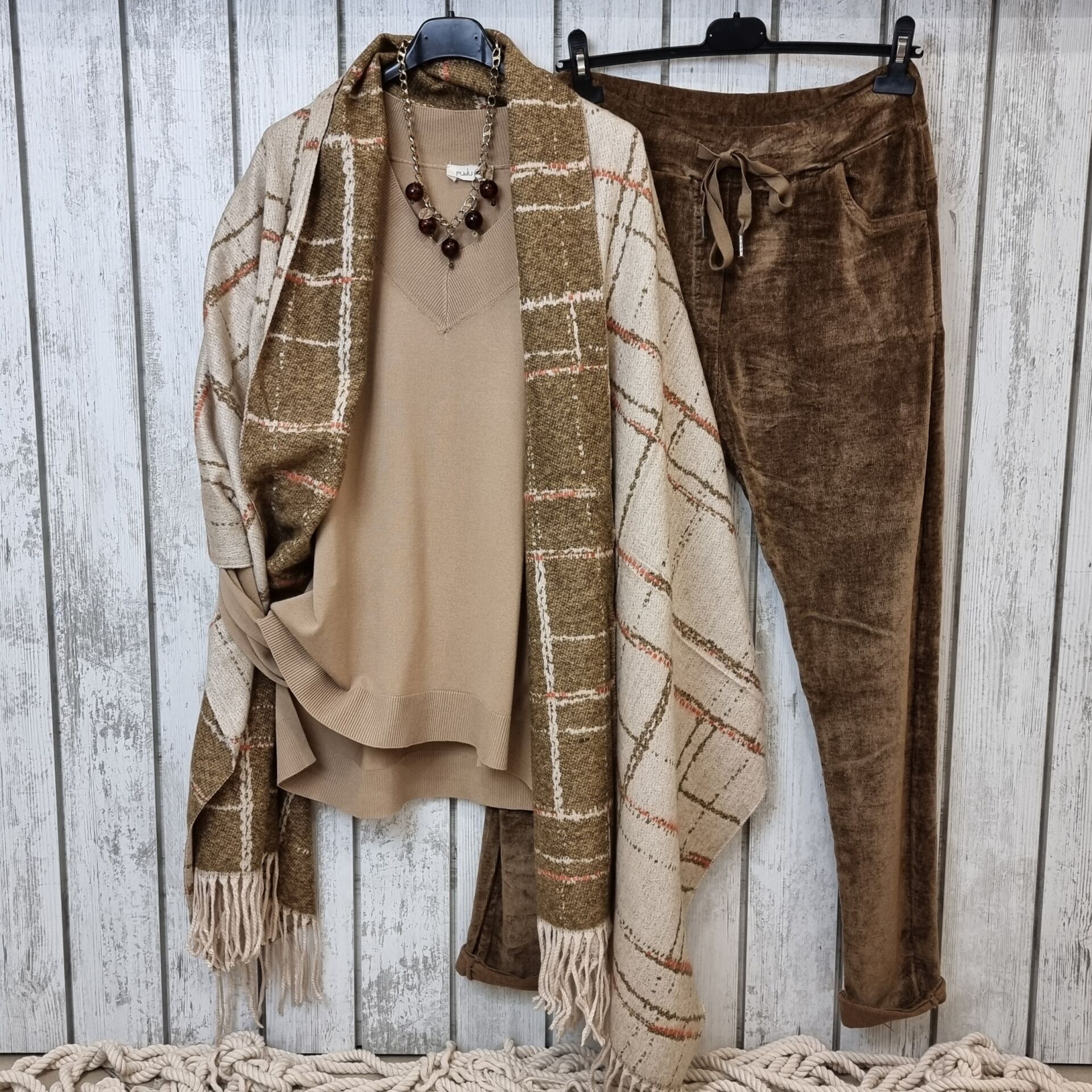 Çift Taraflı Kareli Kaşmir Şal Kahverengi