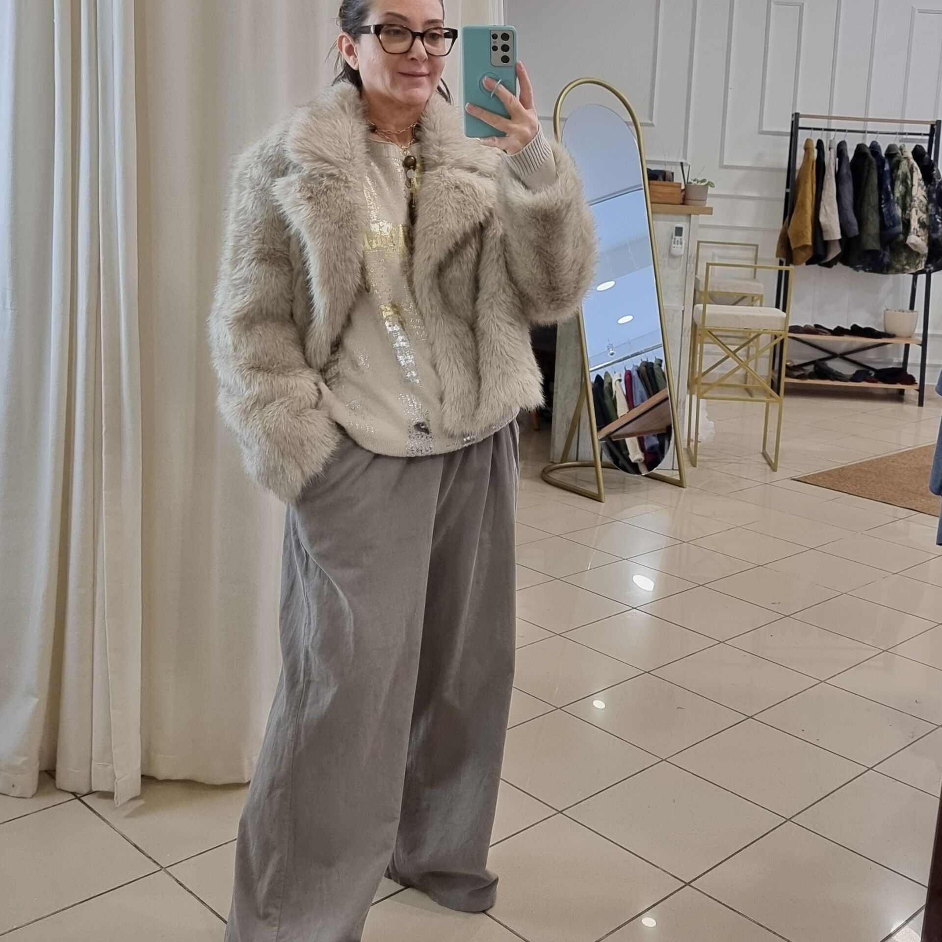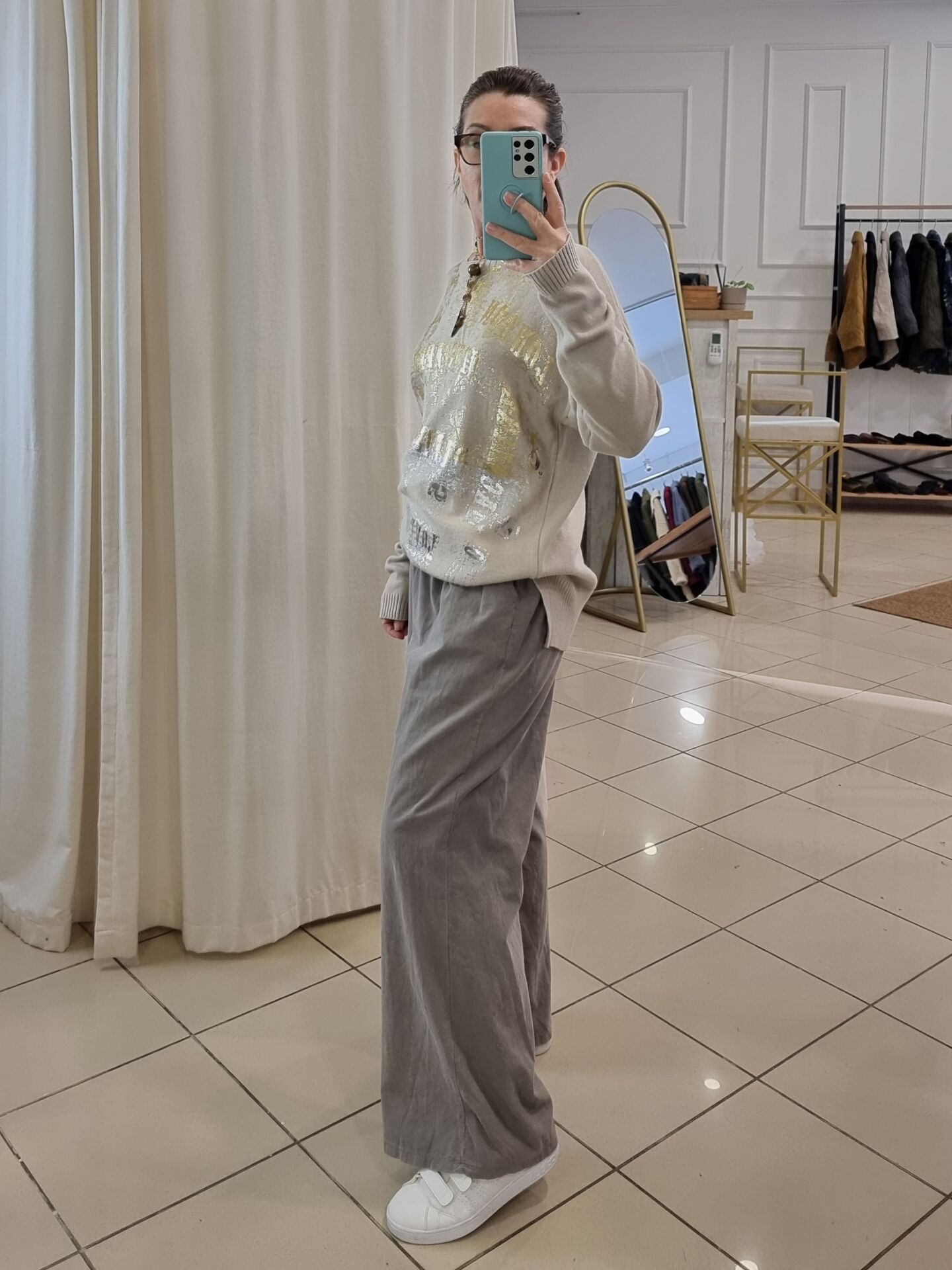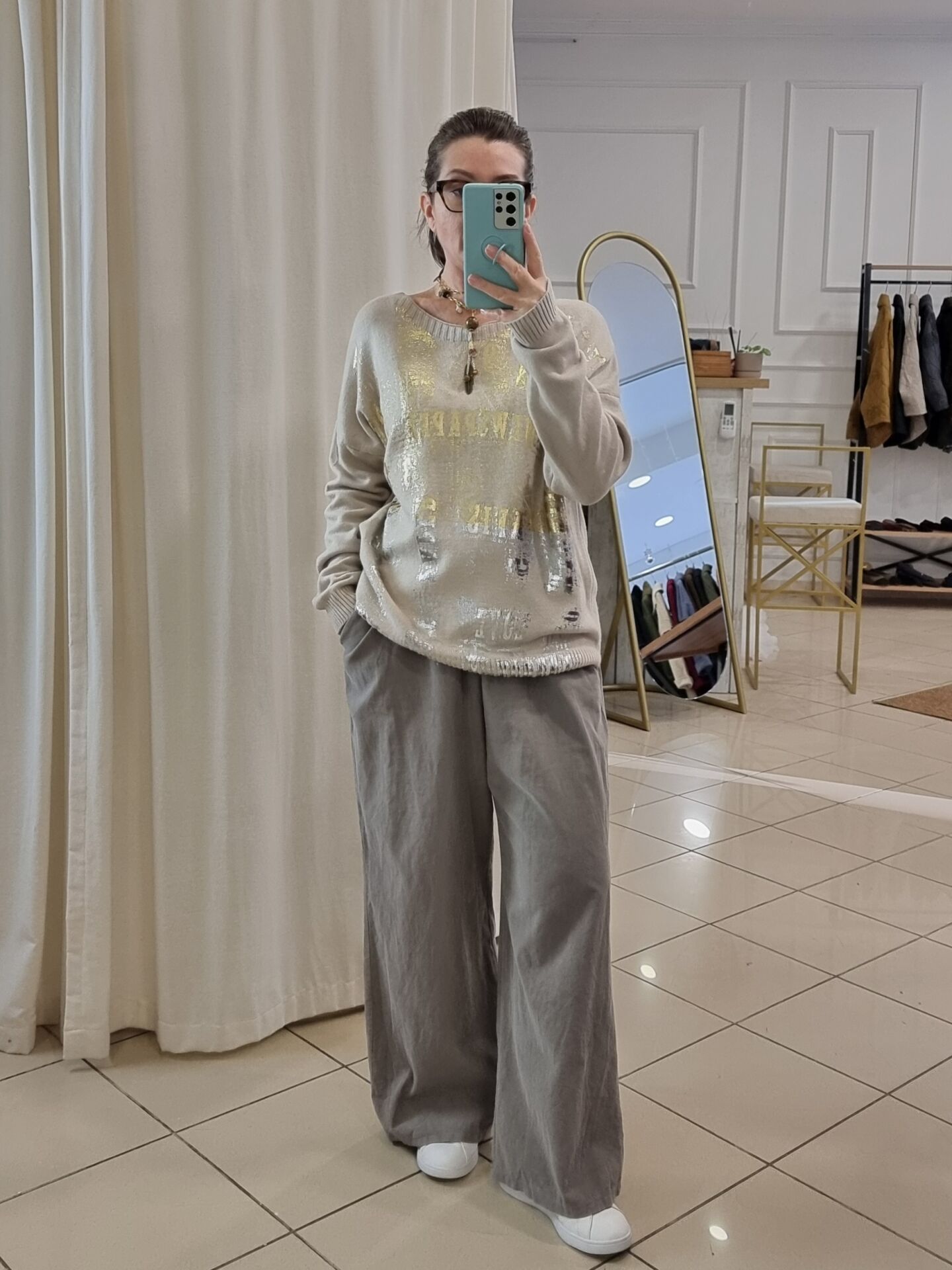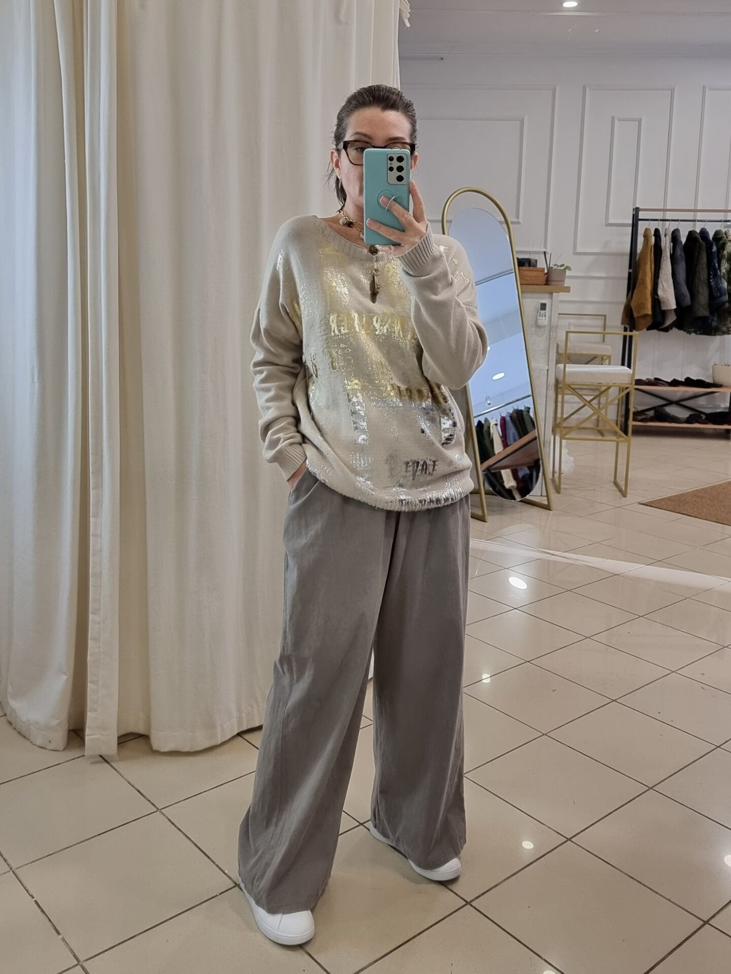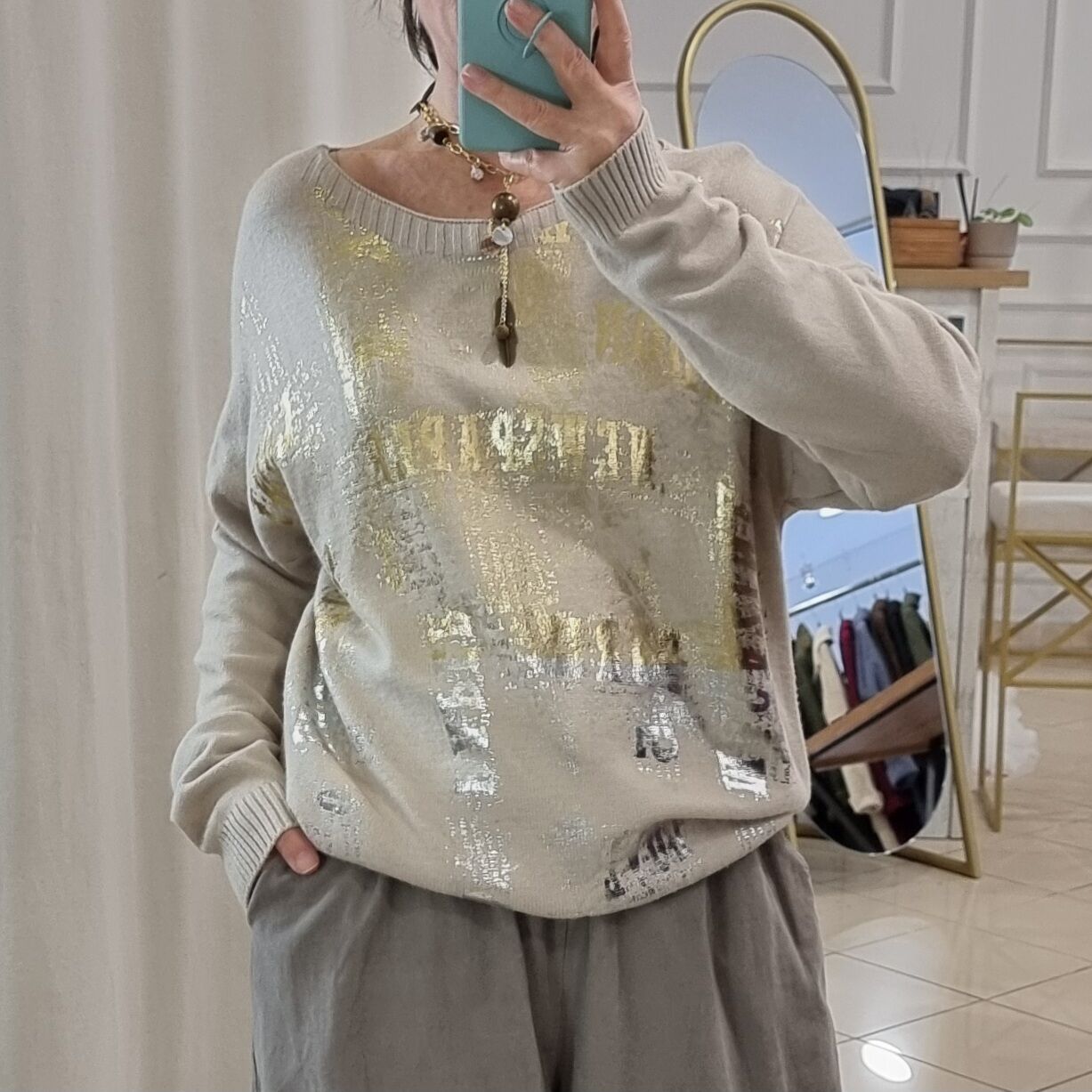 Önü gold varak baskılı kazak.