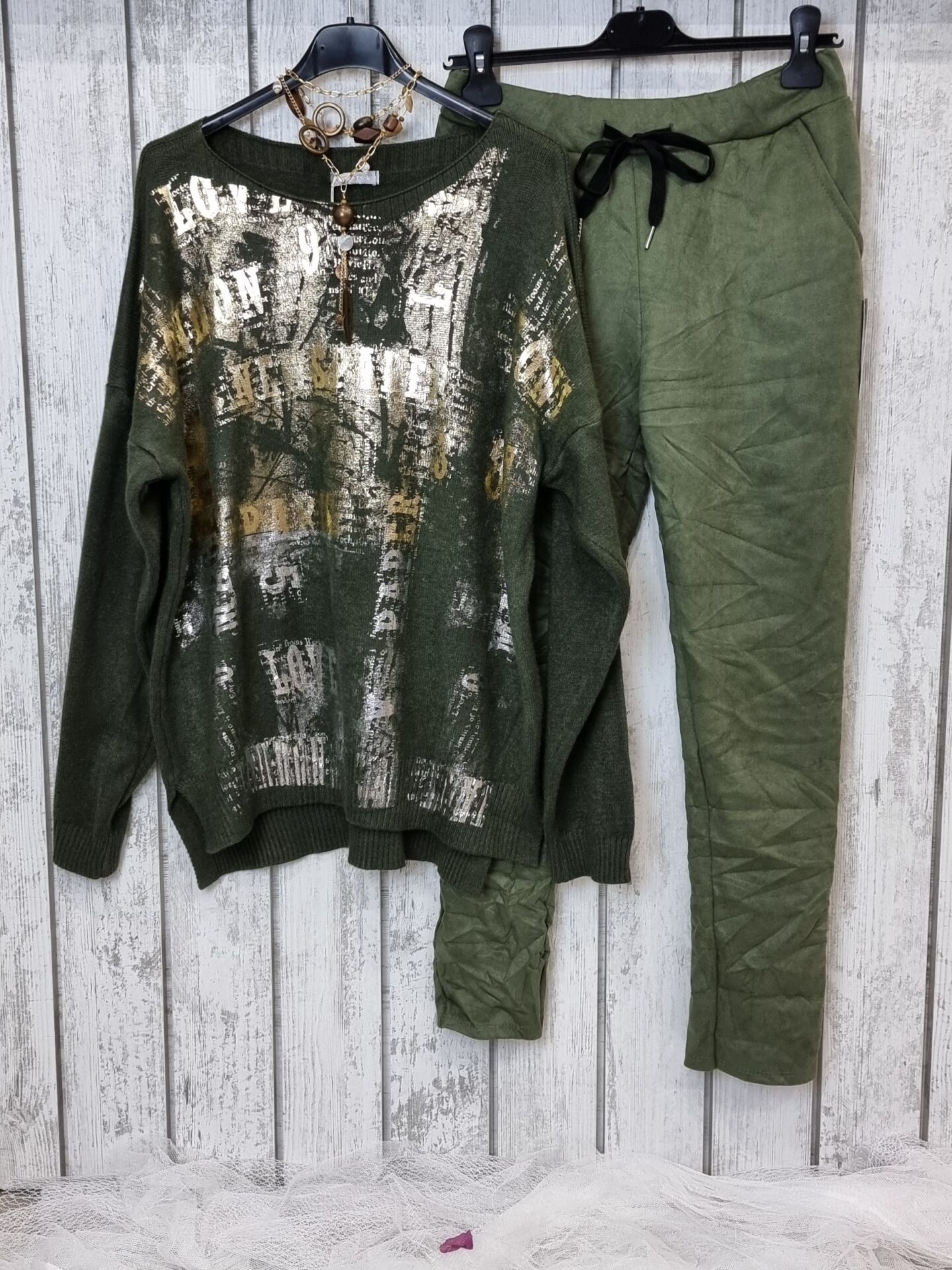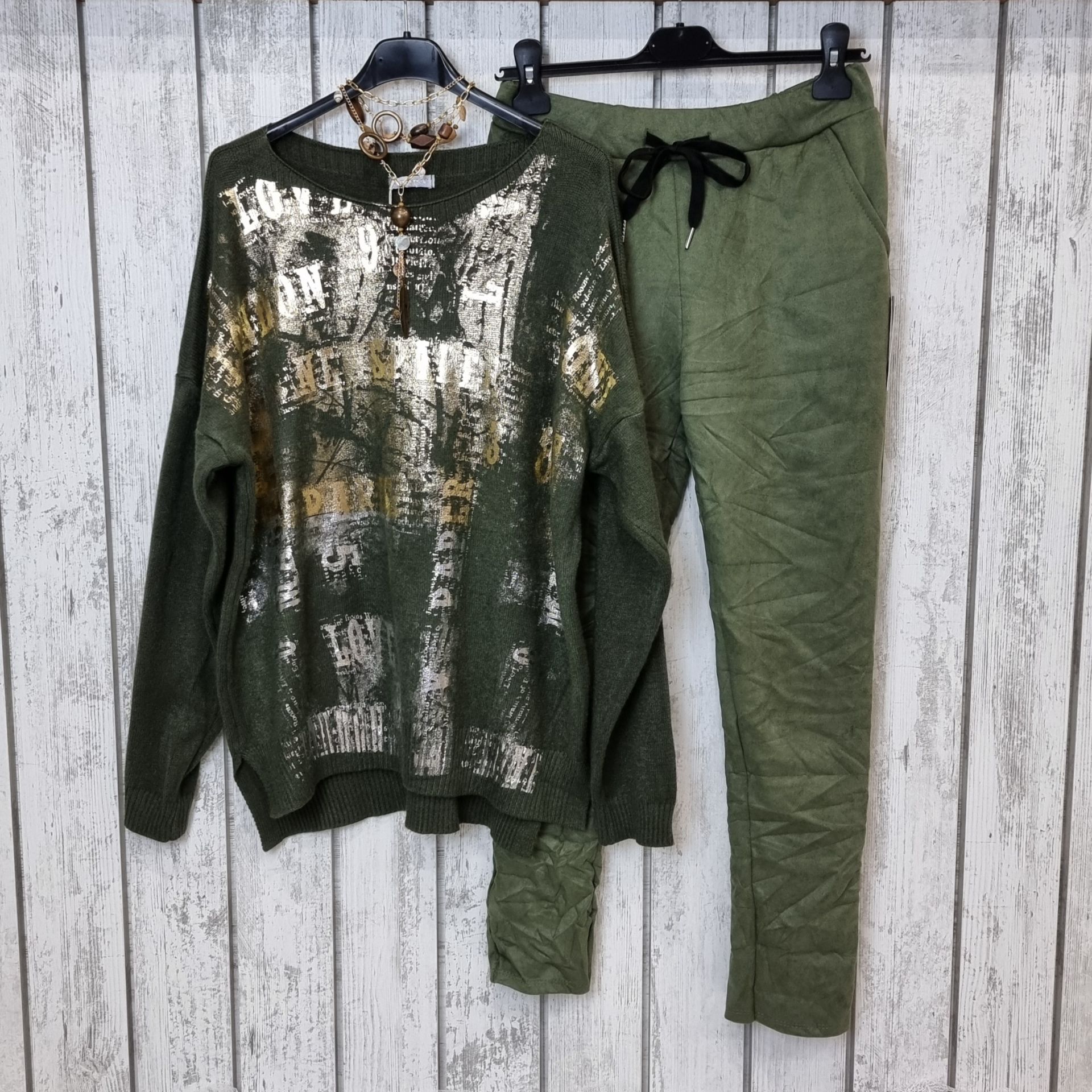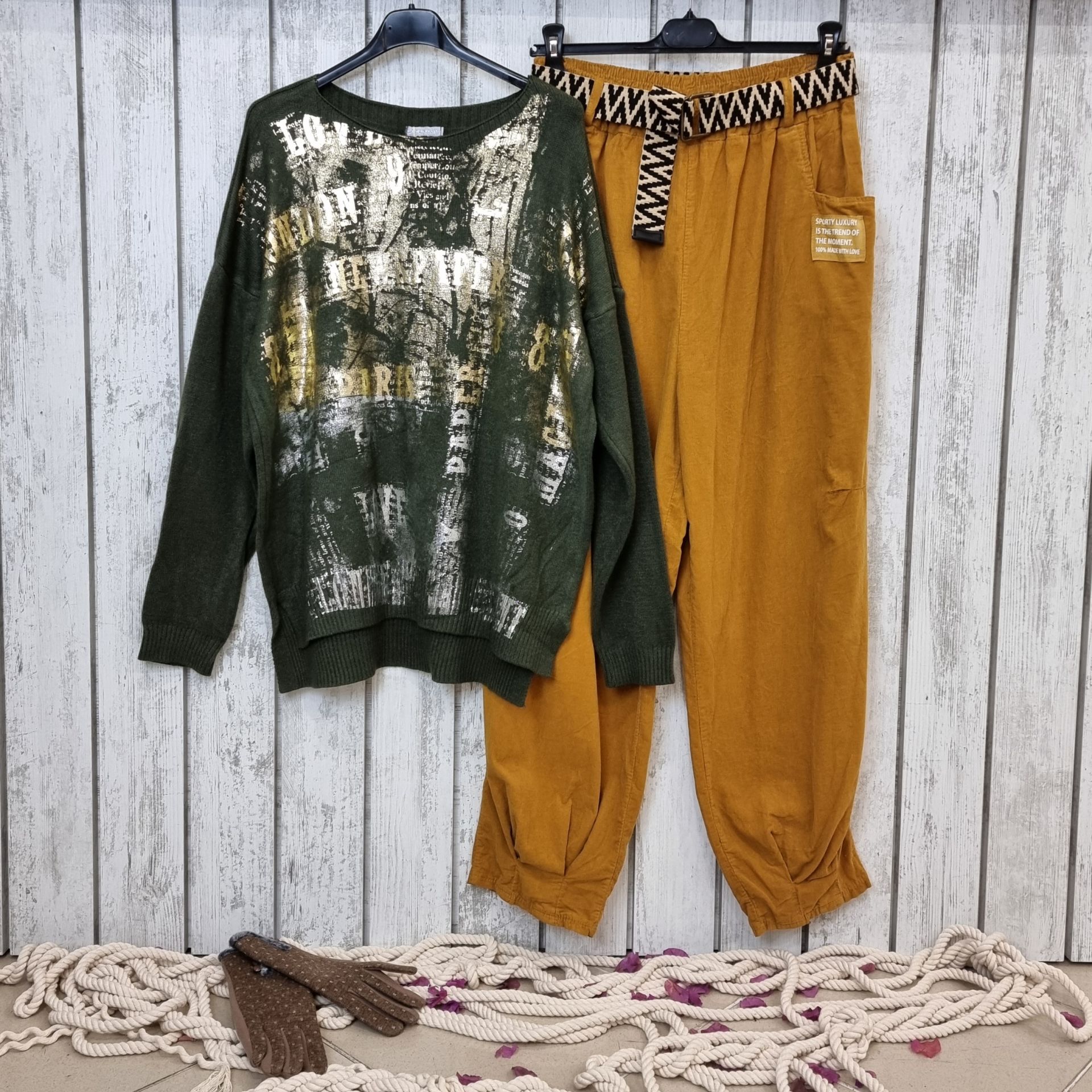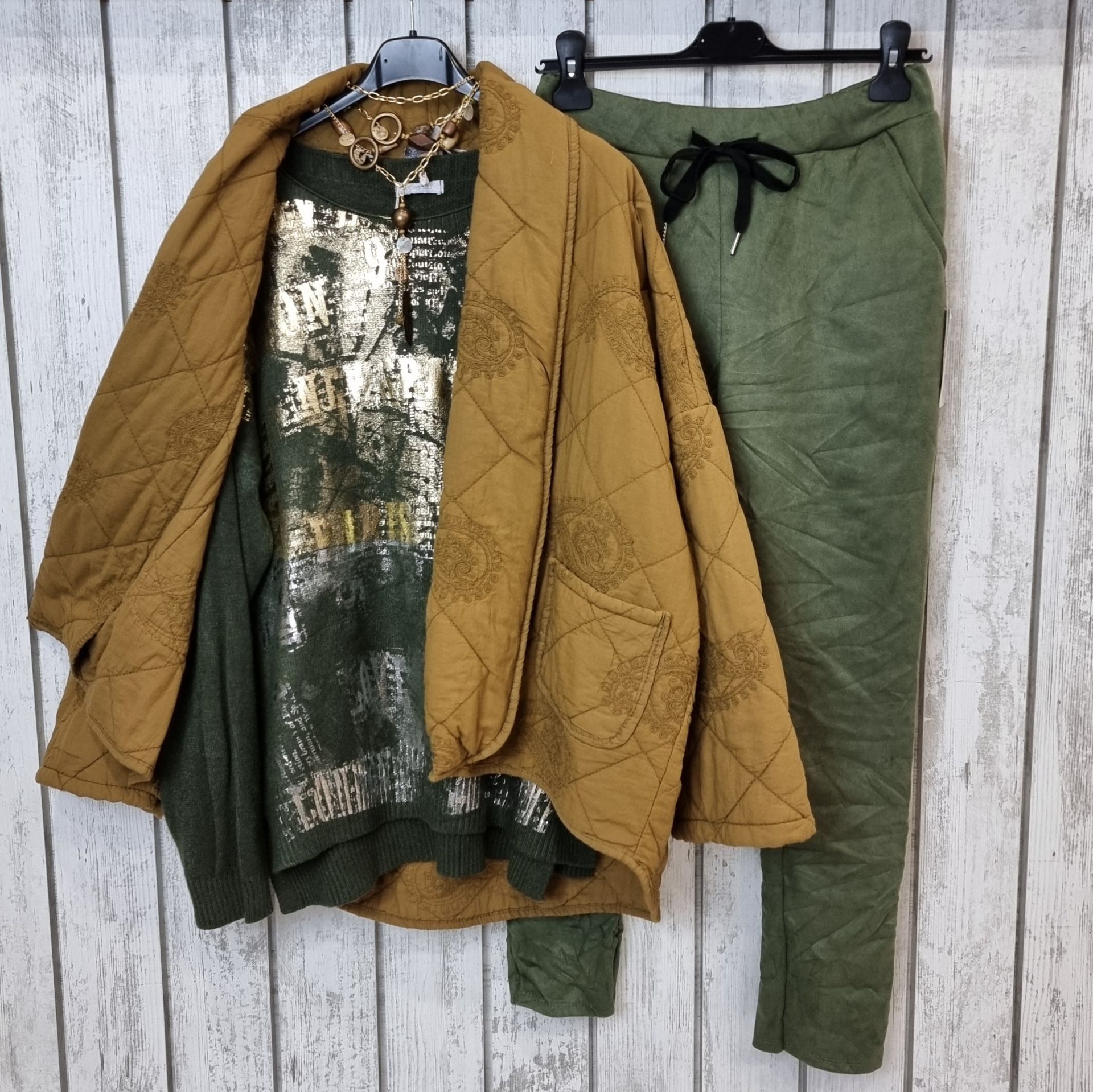 Kaşmir Karışımlı Varak Baskı Kazak Yeşil