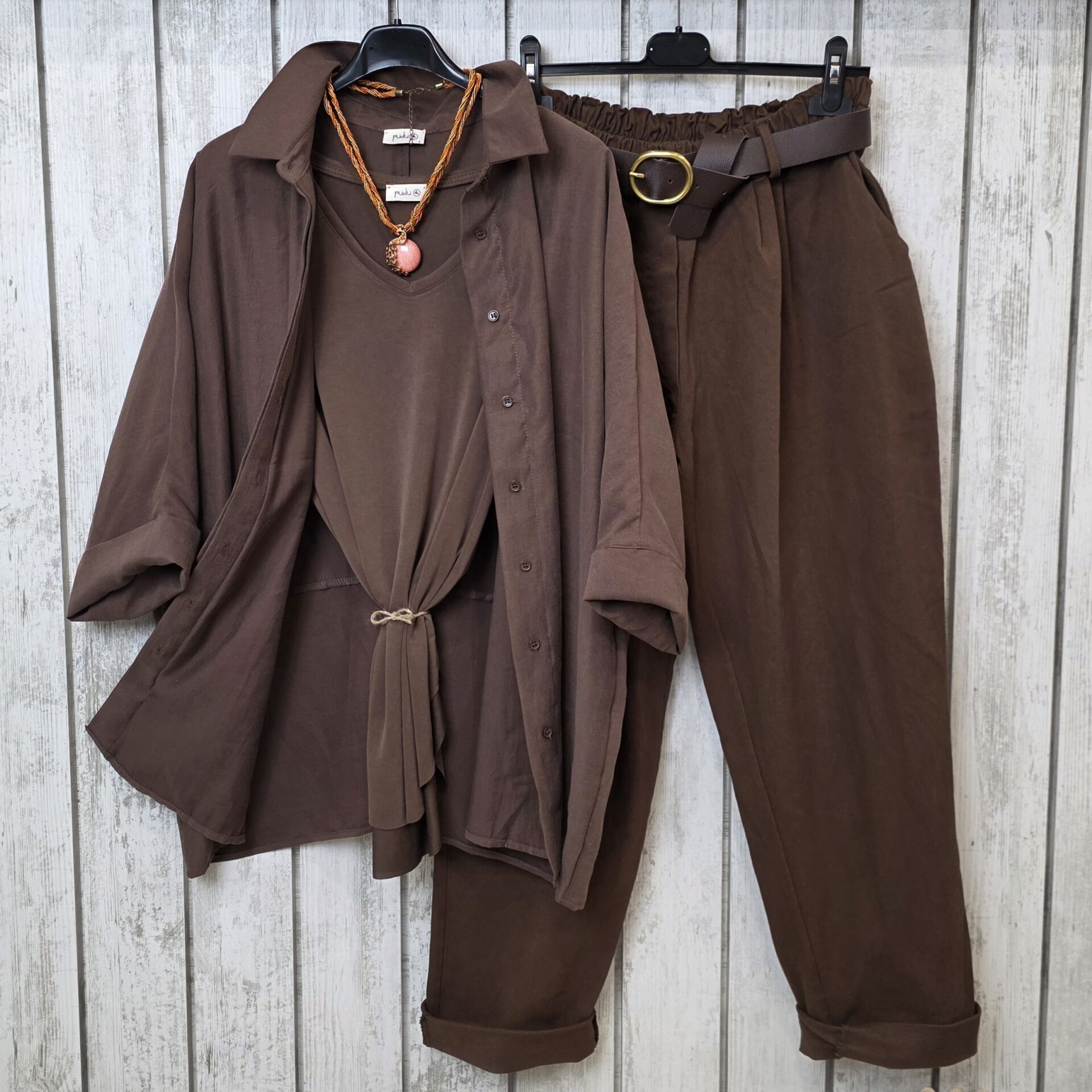 Kemerli Gabardin Pantolon Kakao Kahve