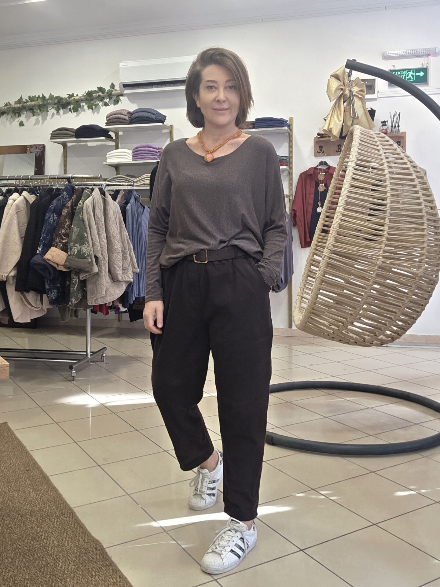 Likralı gabardin havuç kesim İtalyan pantolon.
