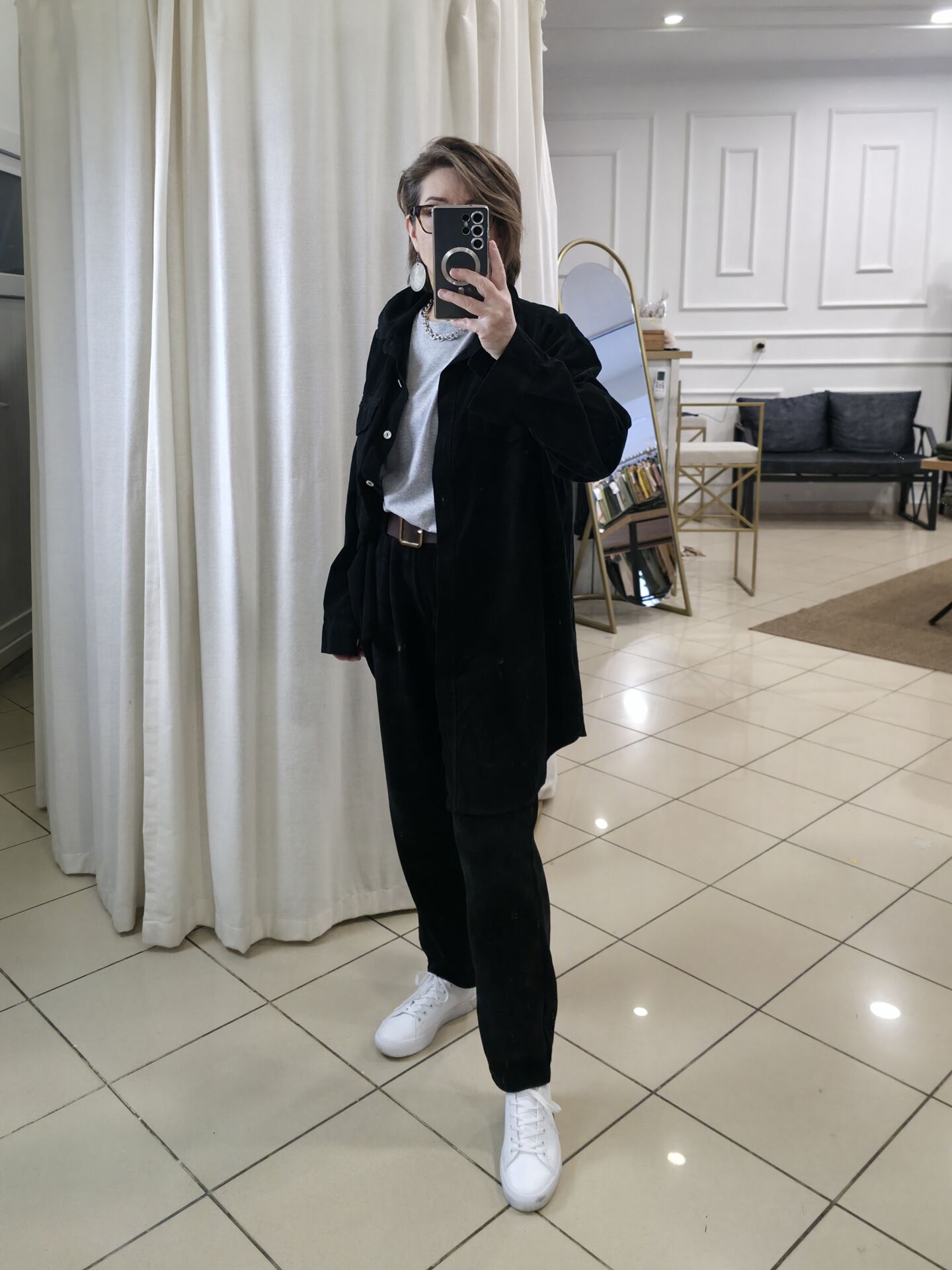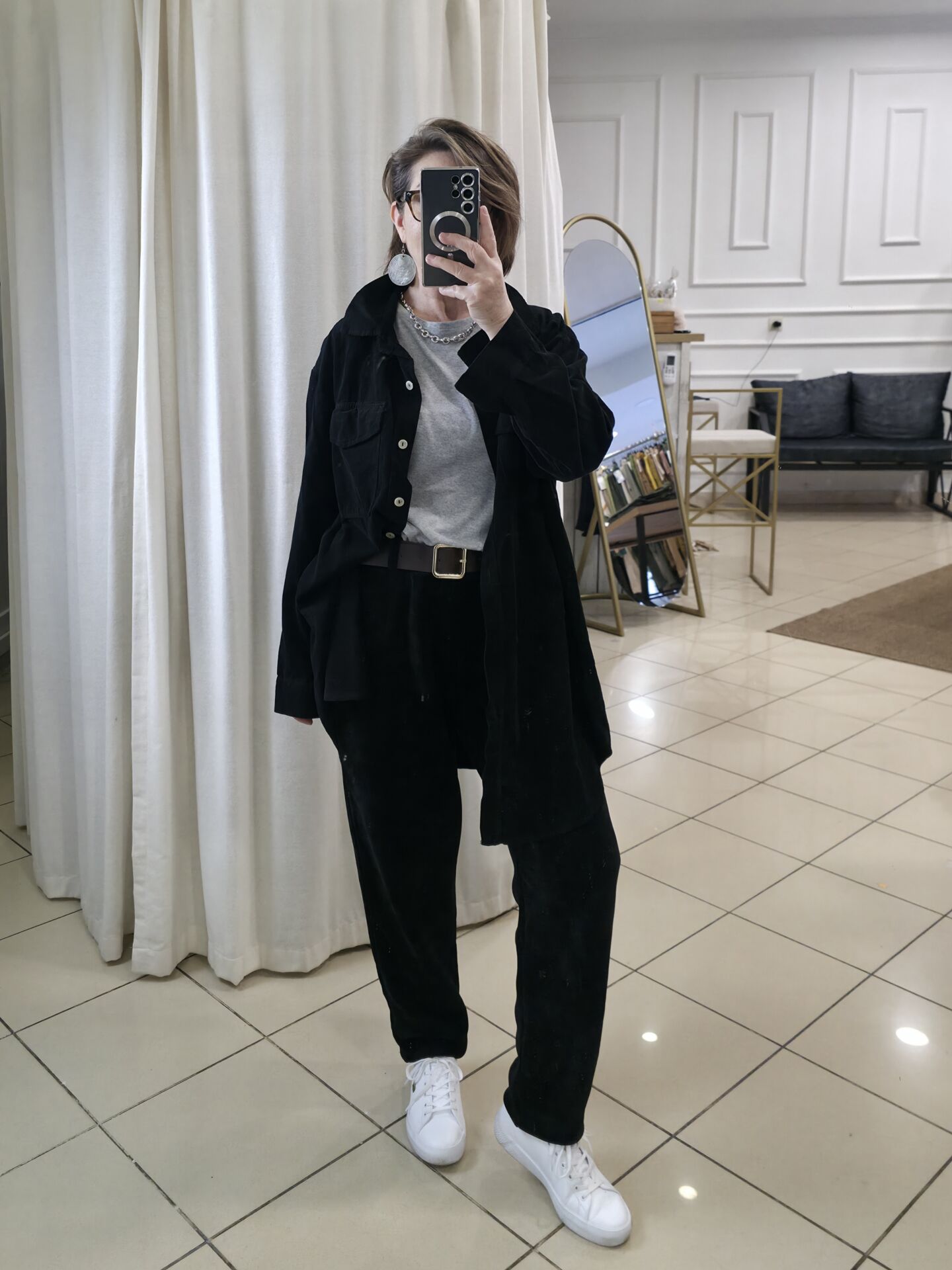 Kemerli Kadife Pantolon Siyah