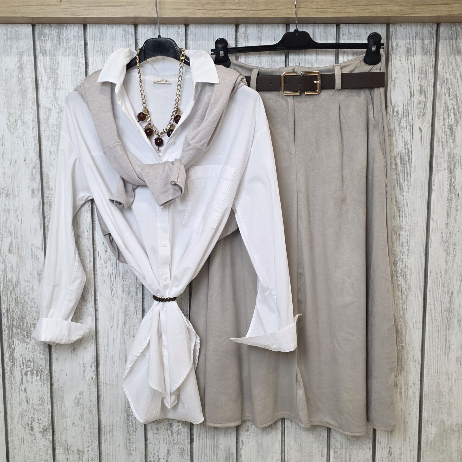 Kemerli Süet Bej Etek