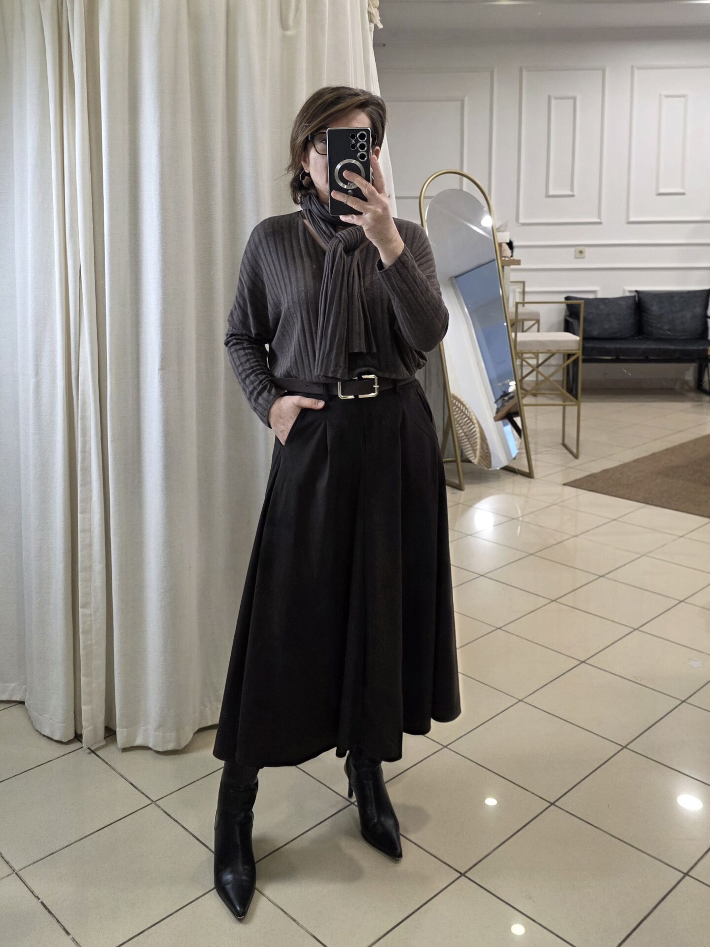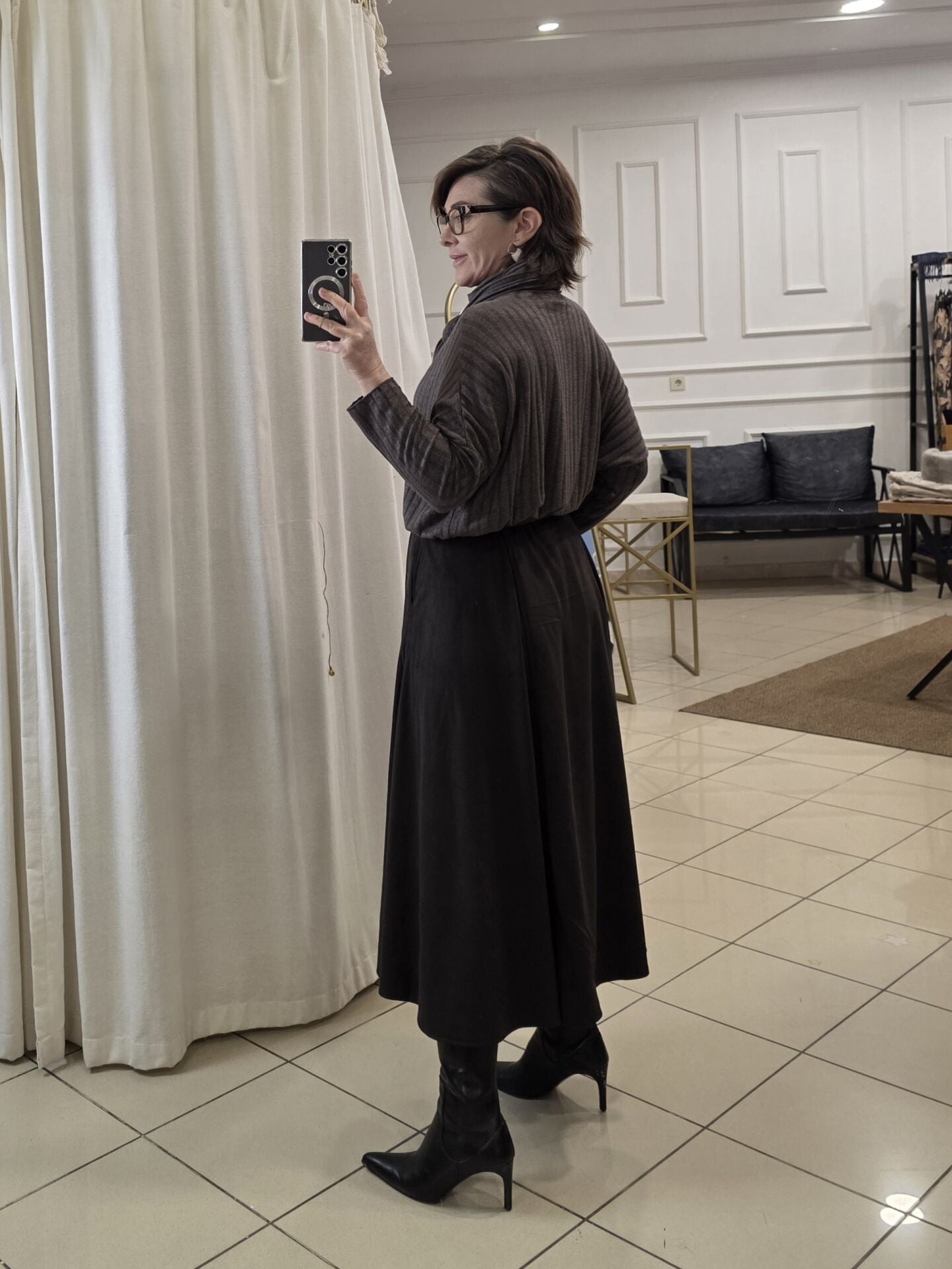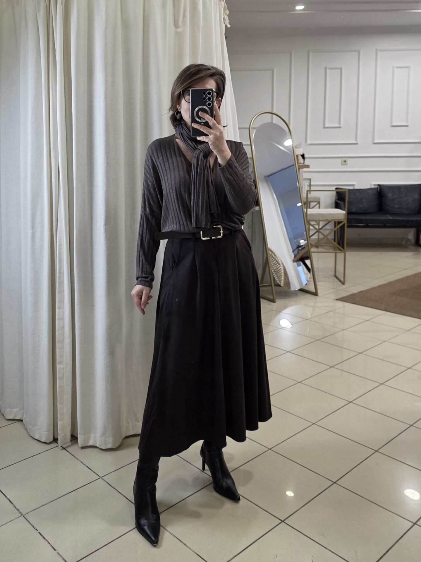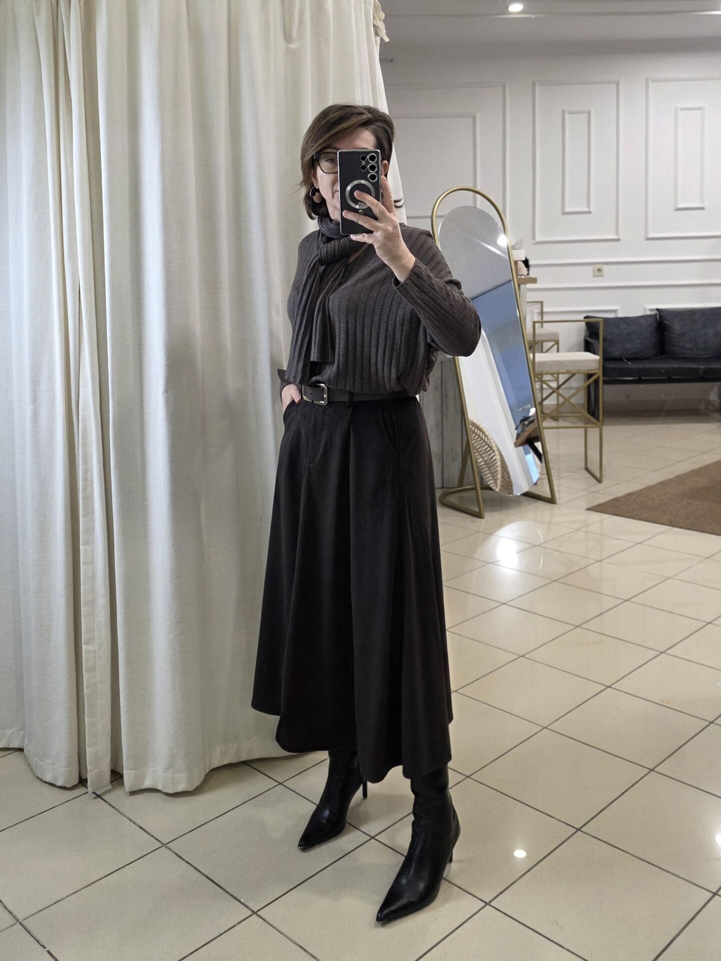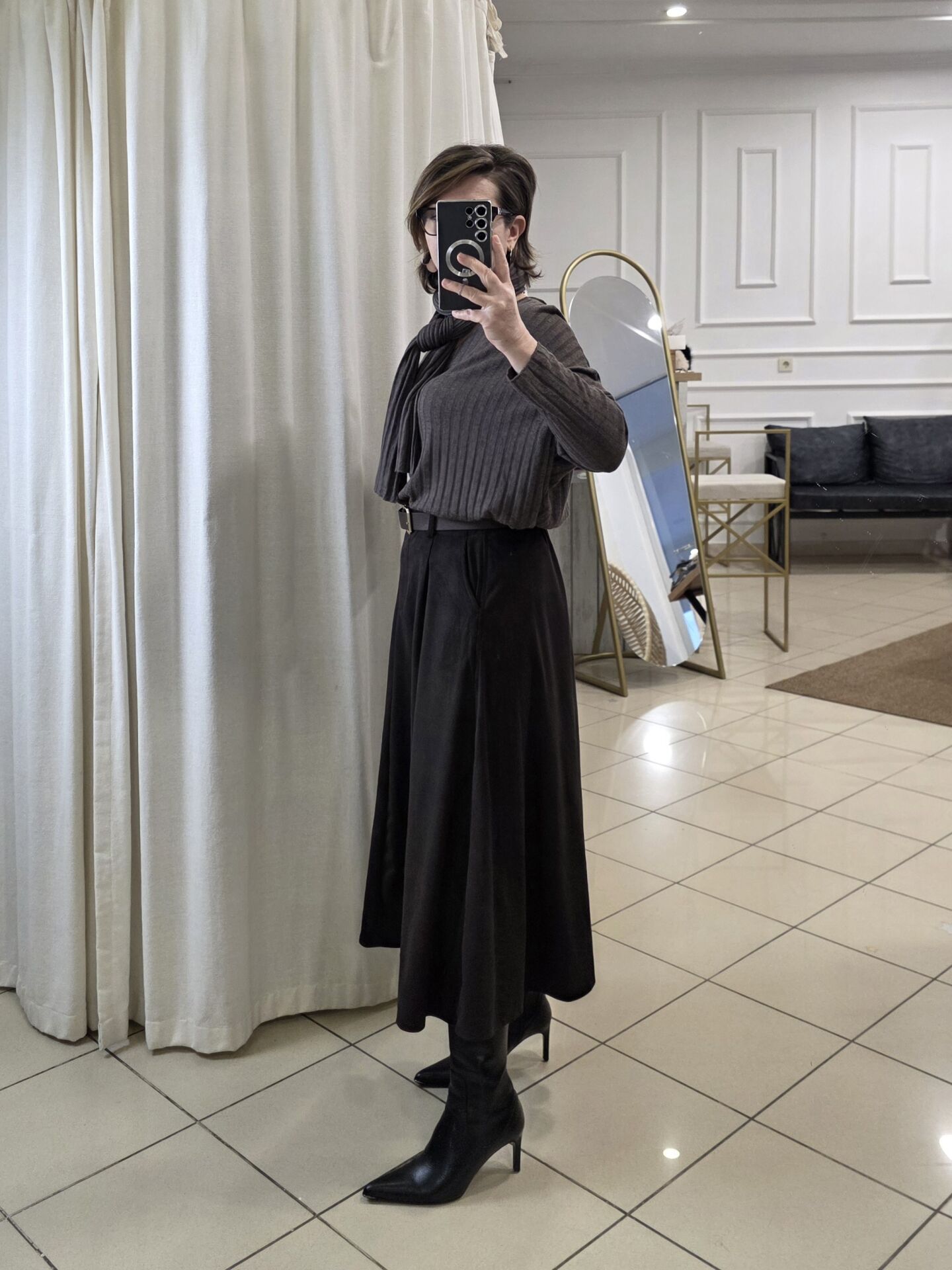 Kahverengi süet etek.