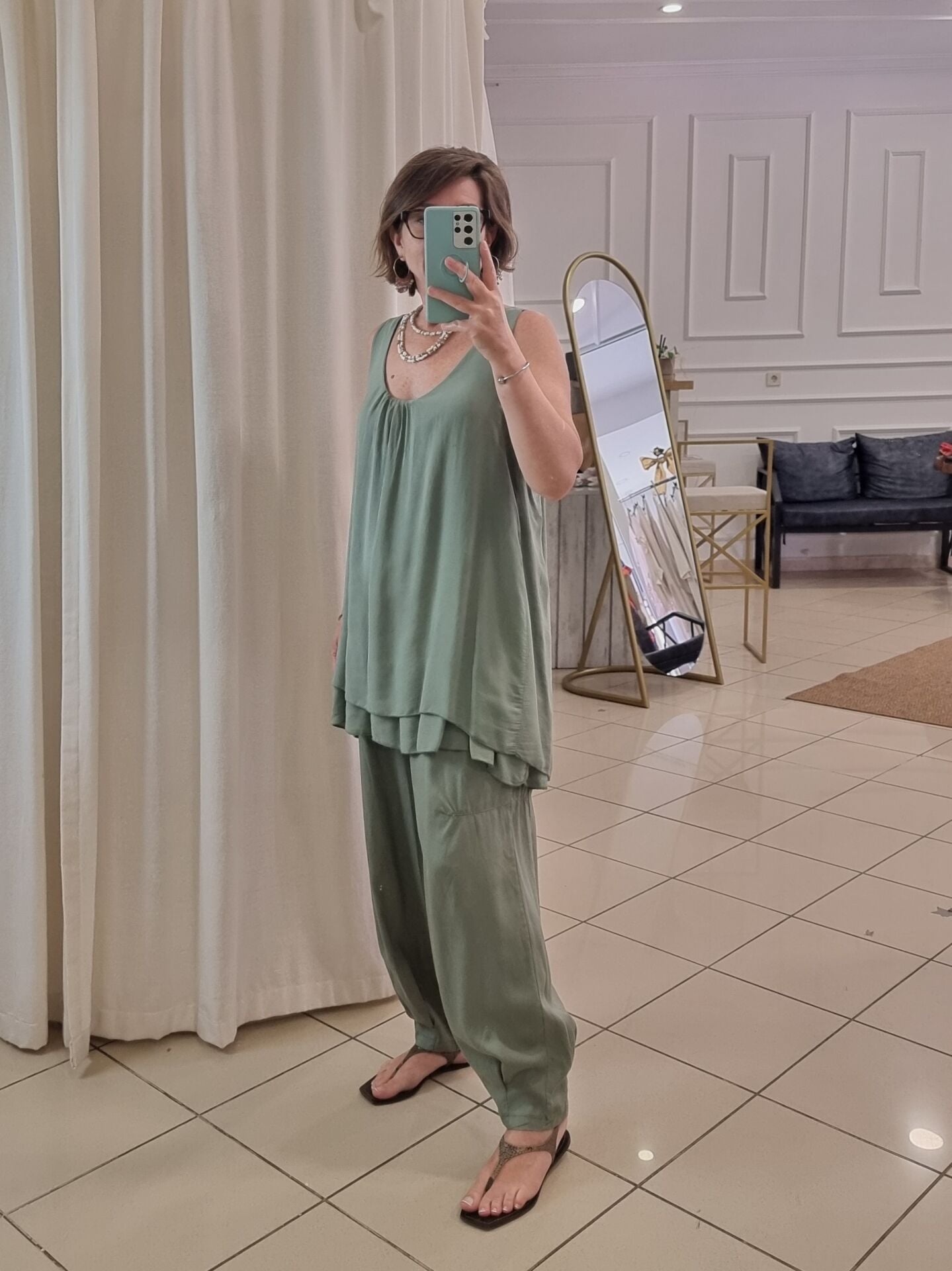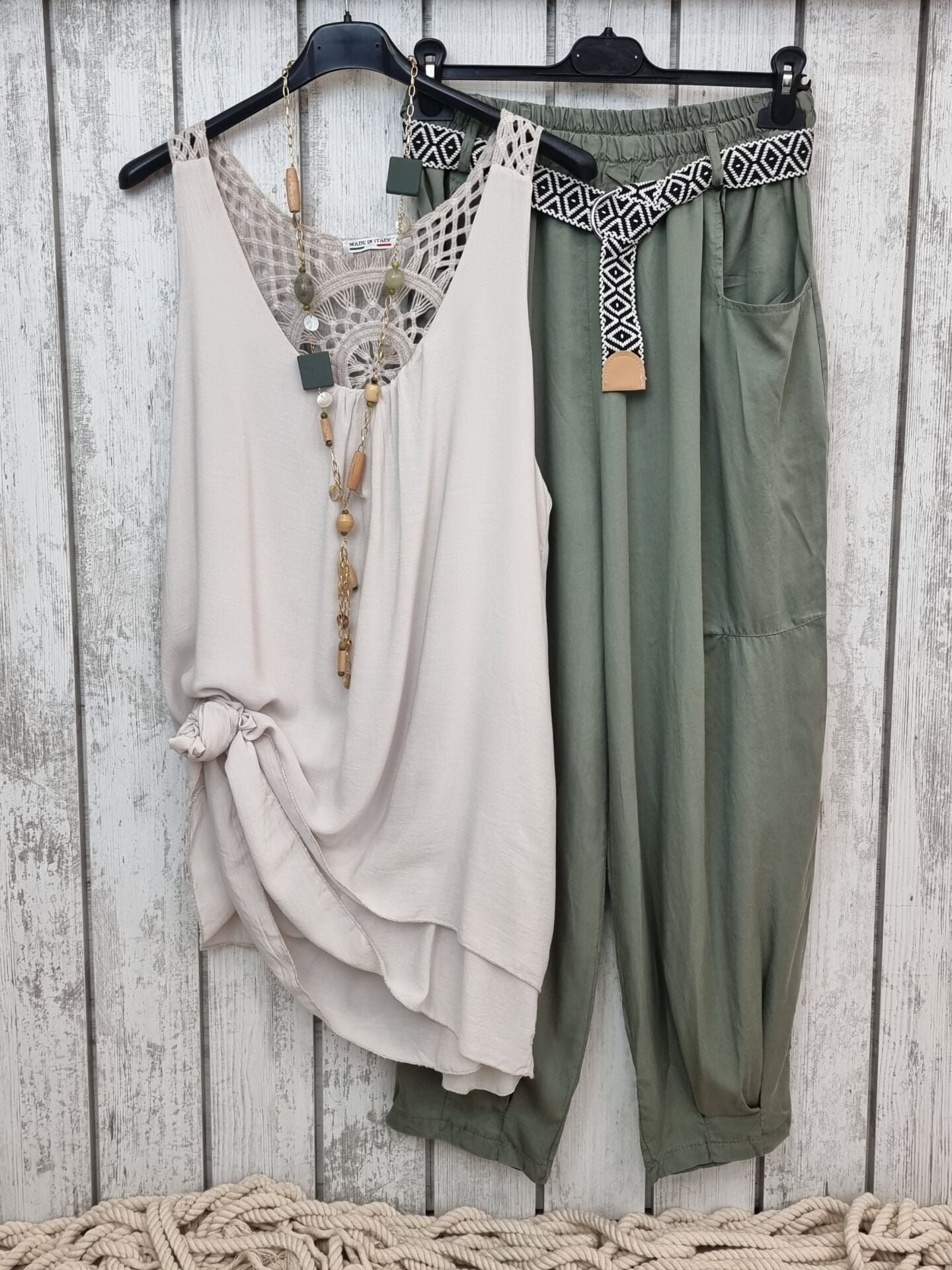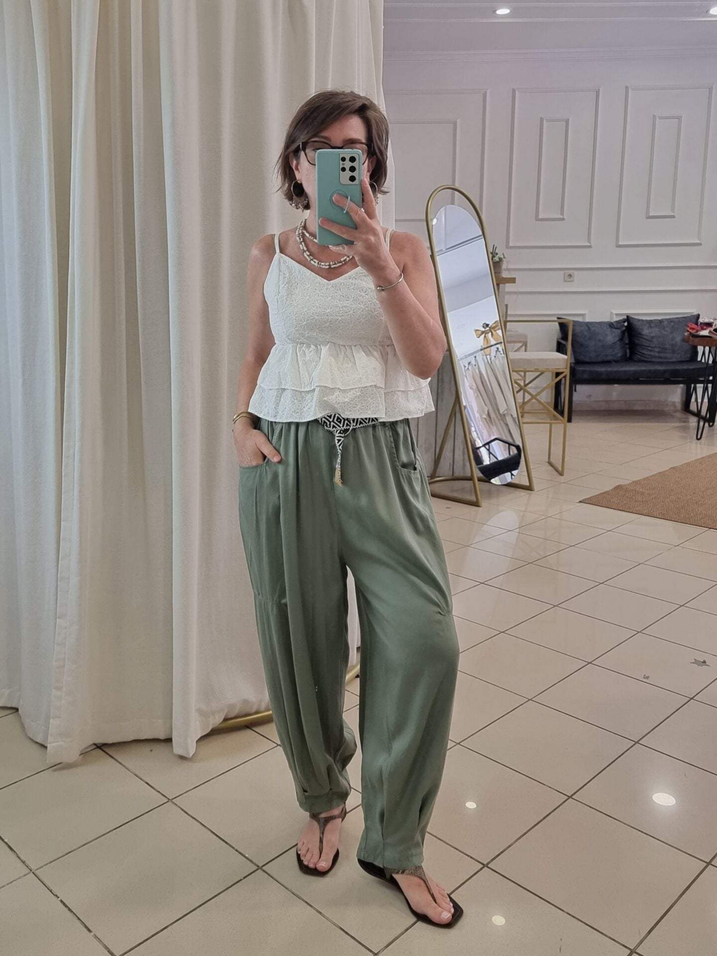 Doğal elyaf %100 viskon dökümlü kemerli viskon pantolon.