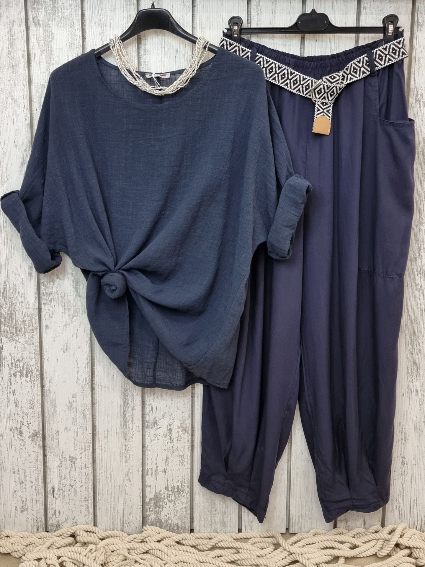 Kemerli Viskon Pantolon Lacivert