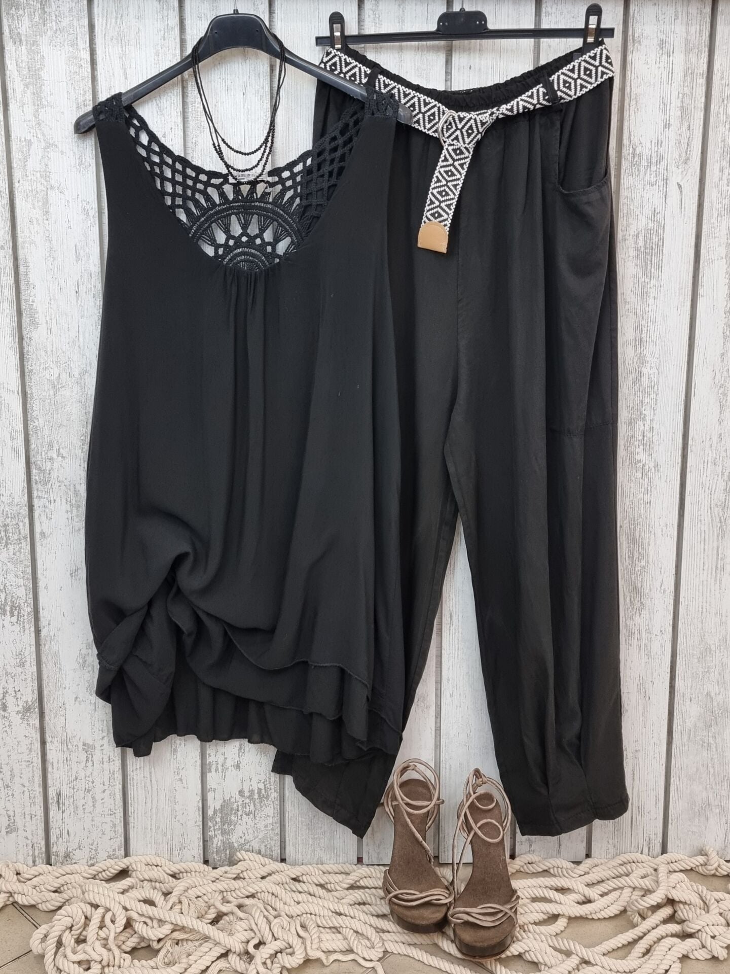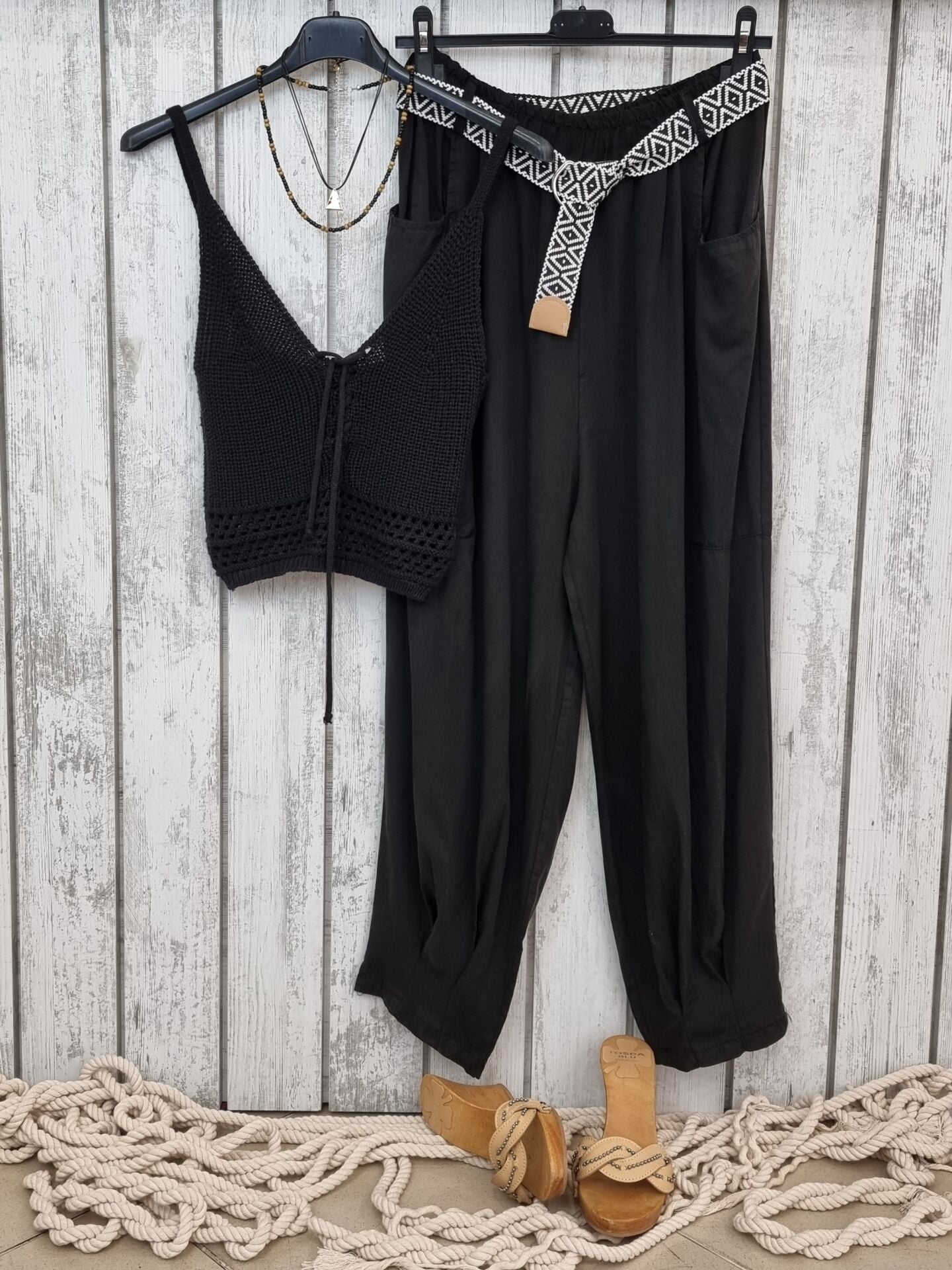 Kemerli Viskon Pantolon Siyah