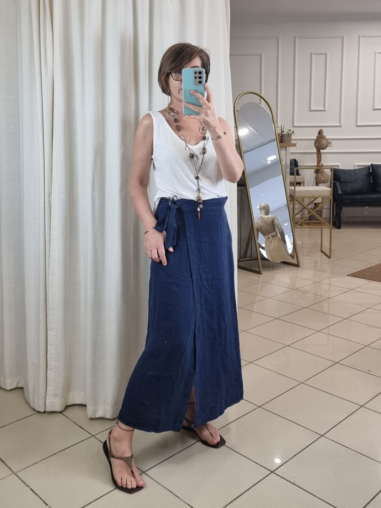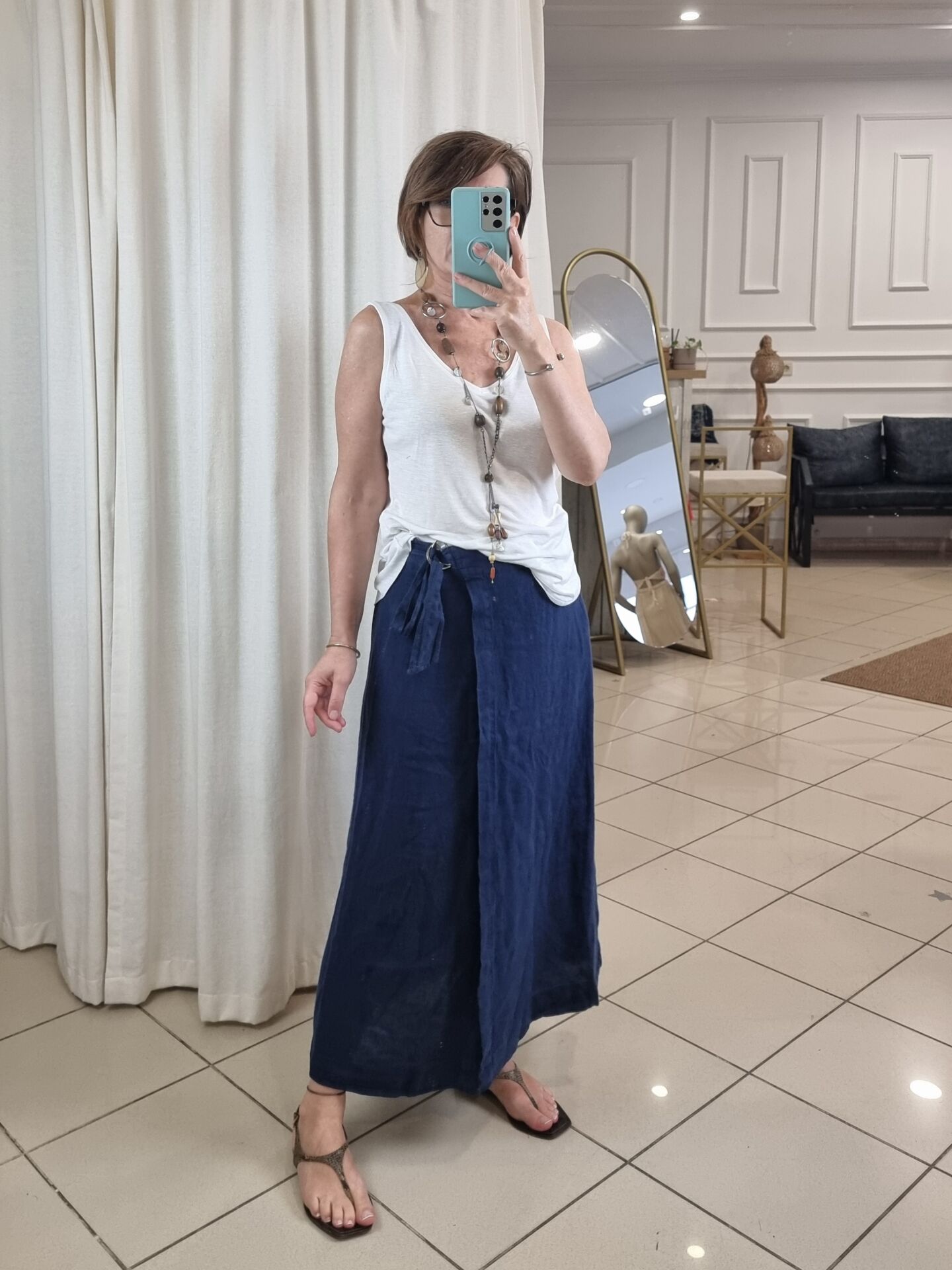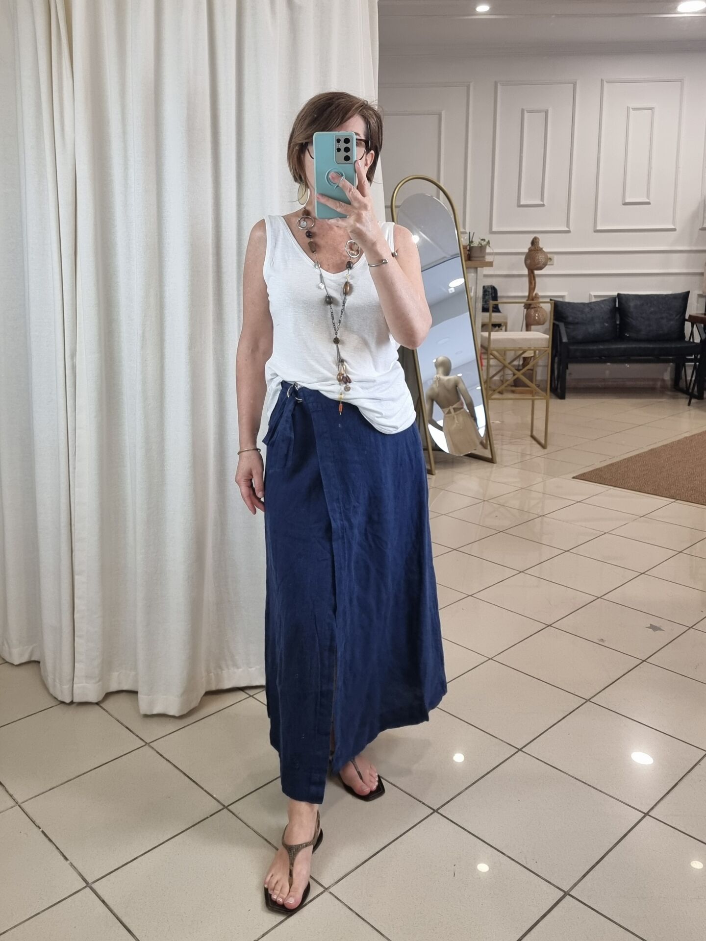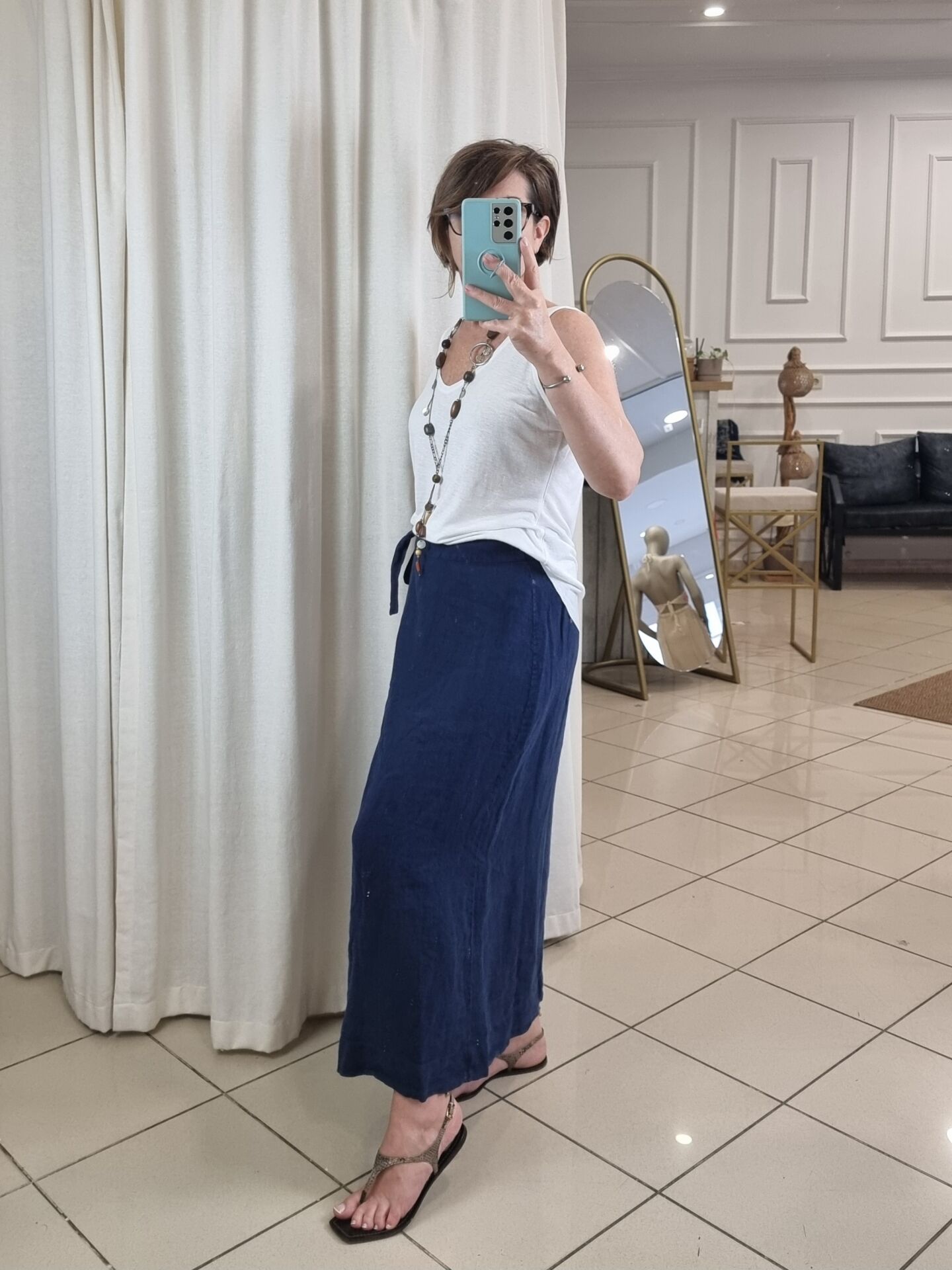 %100 keten lacivert etek.