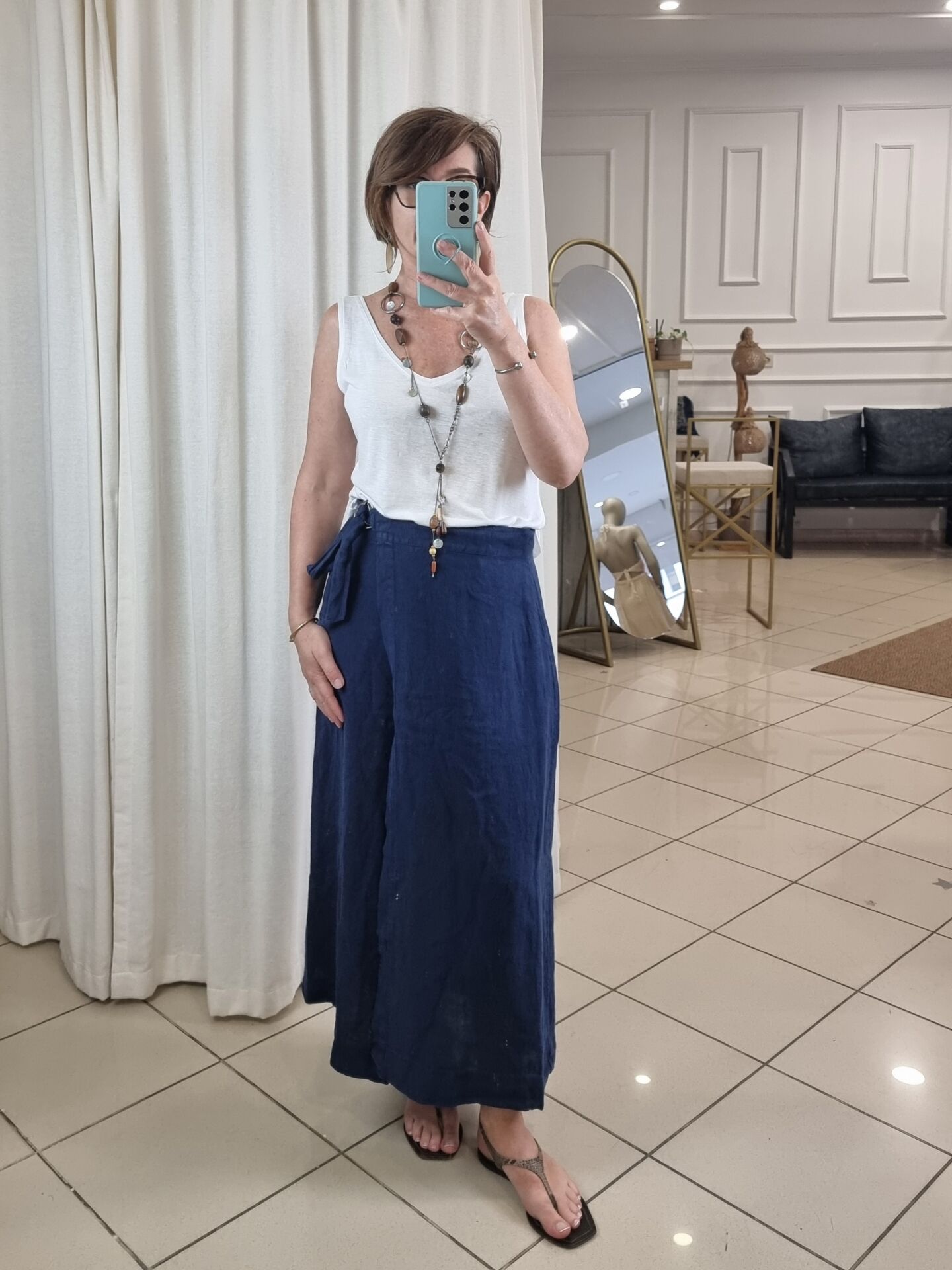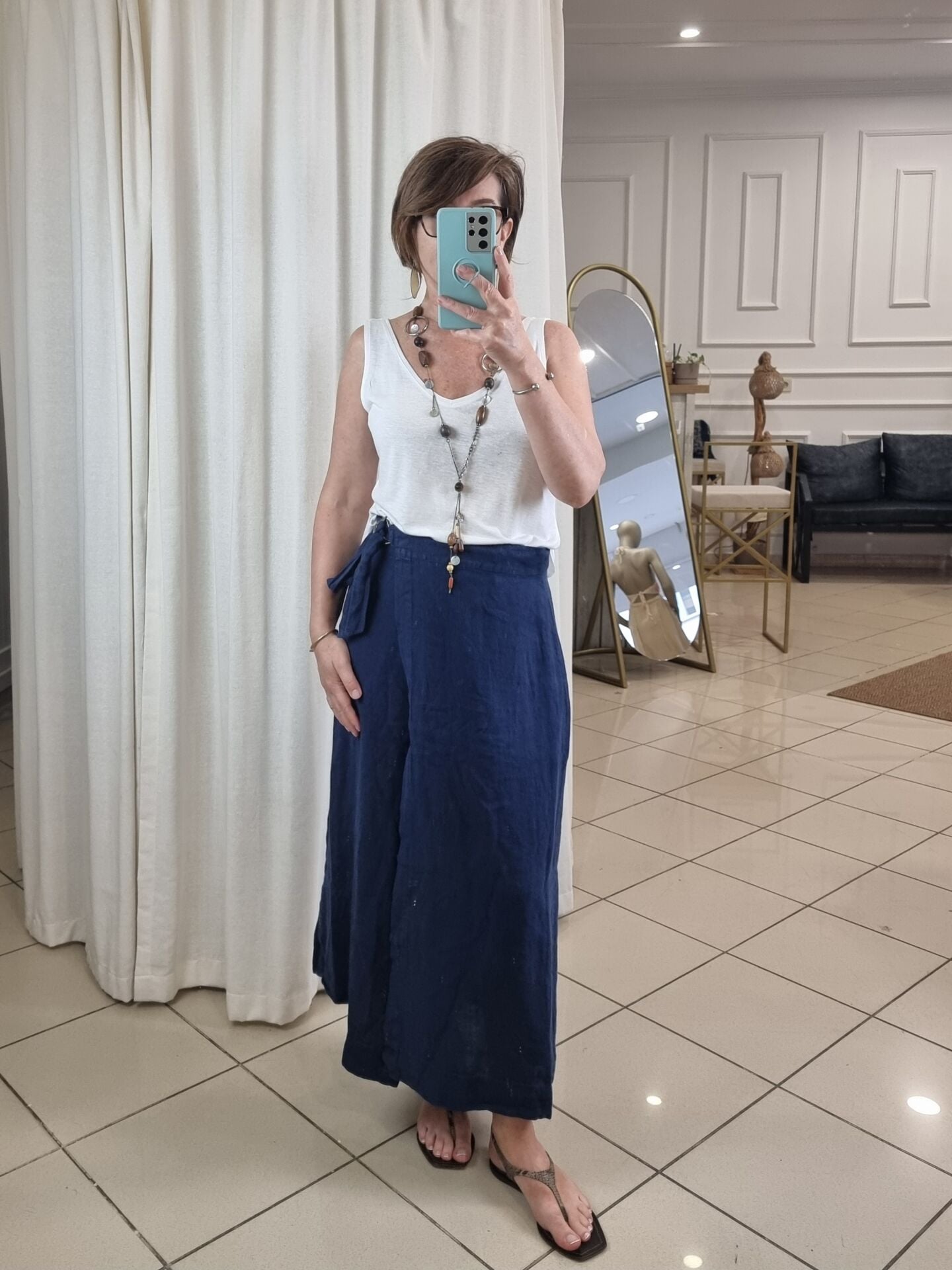 %100 Keten AnvelopLacivert Etek