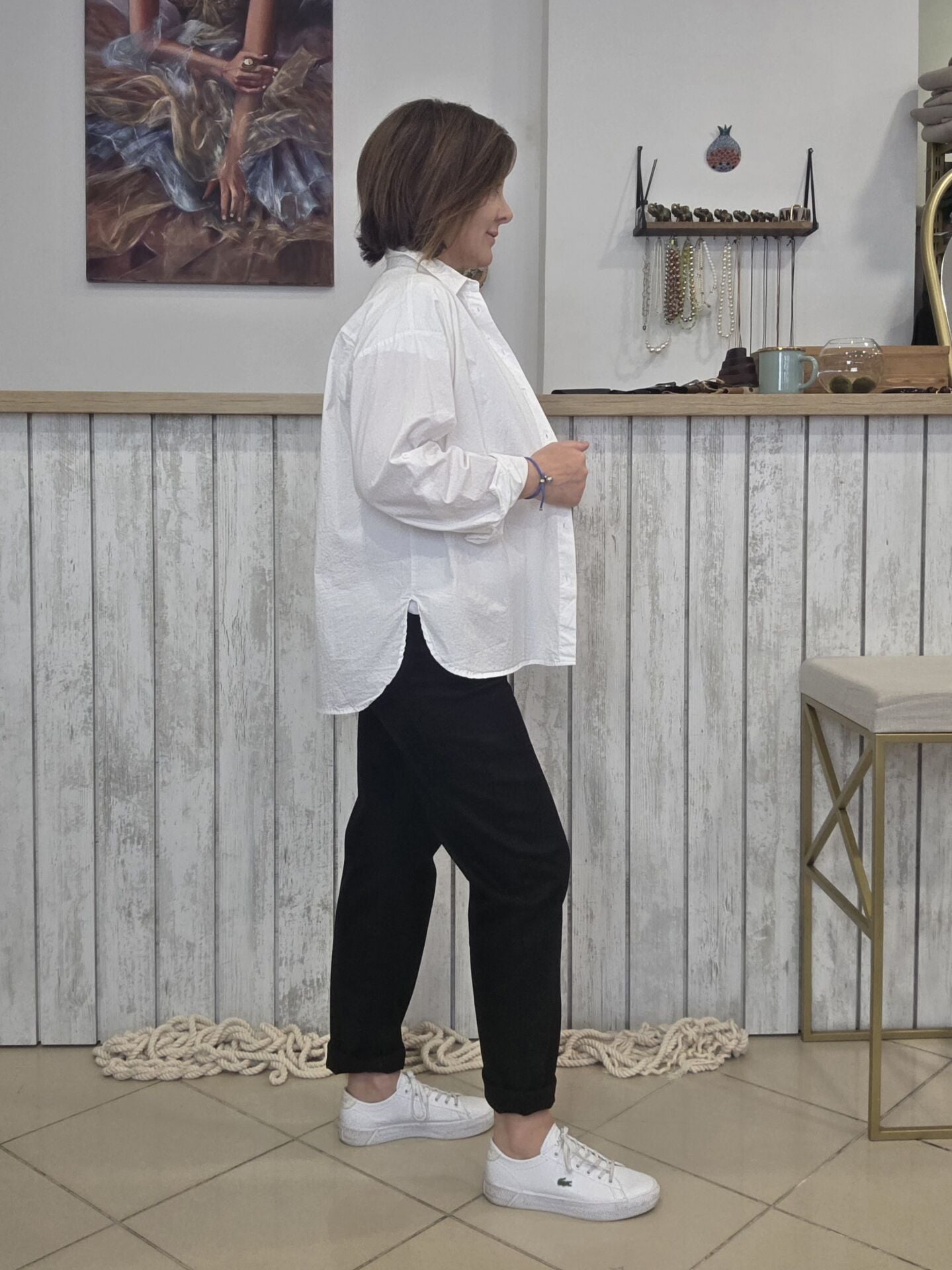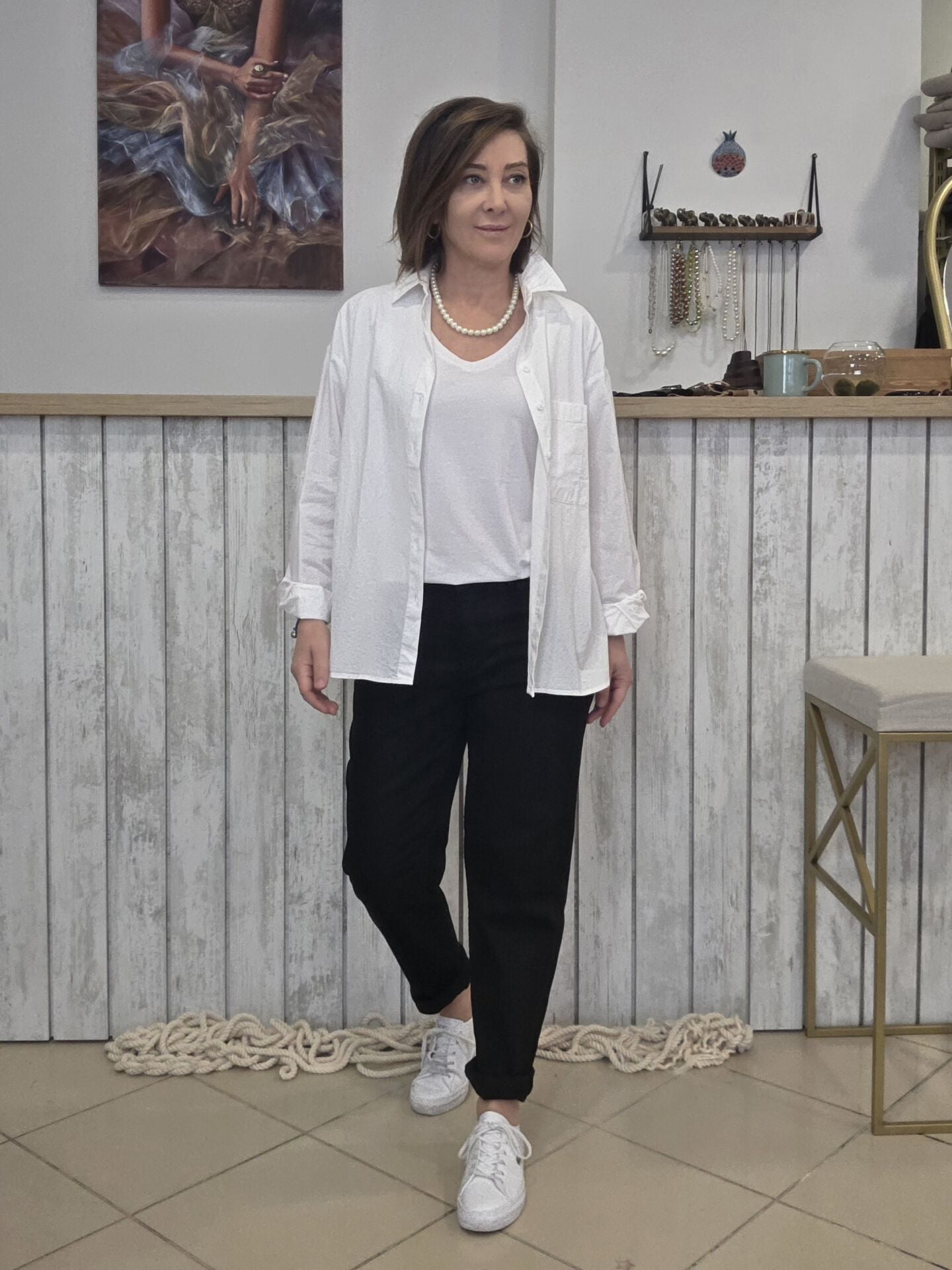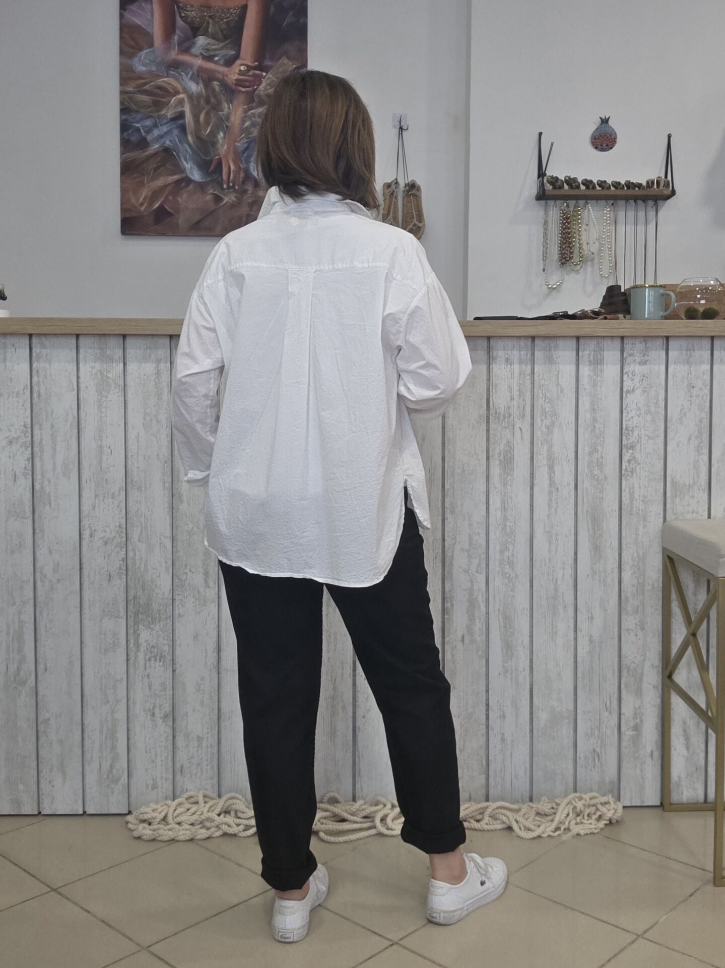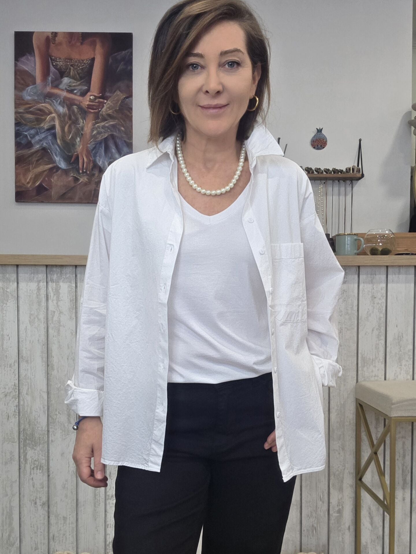 Pamuklu beyaz klasik gömlek.