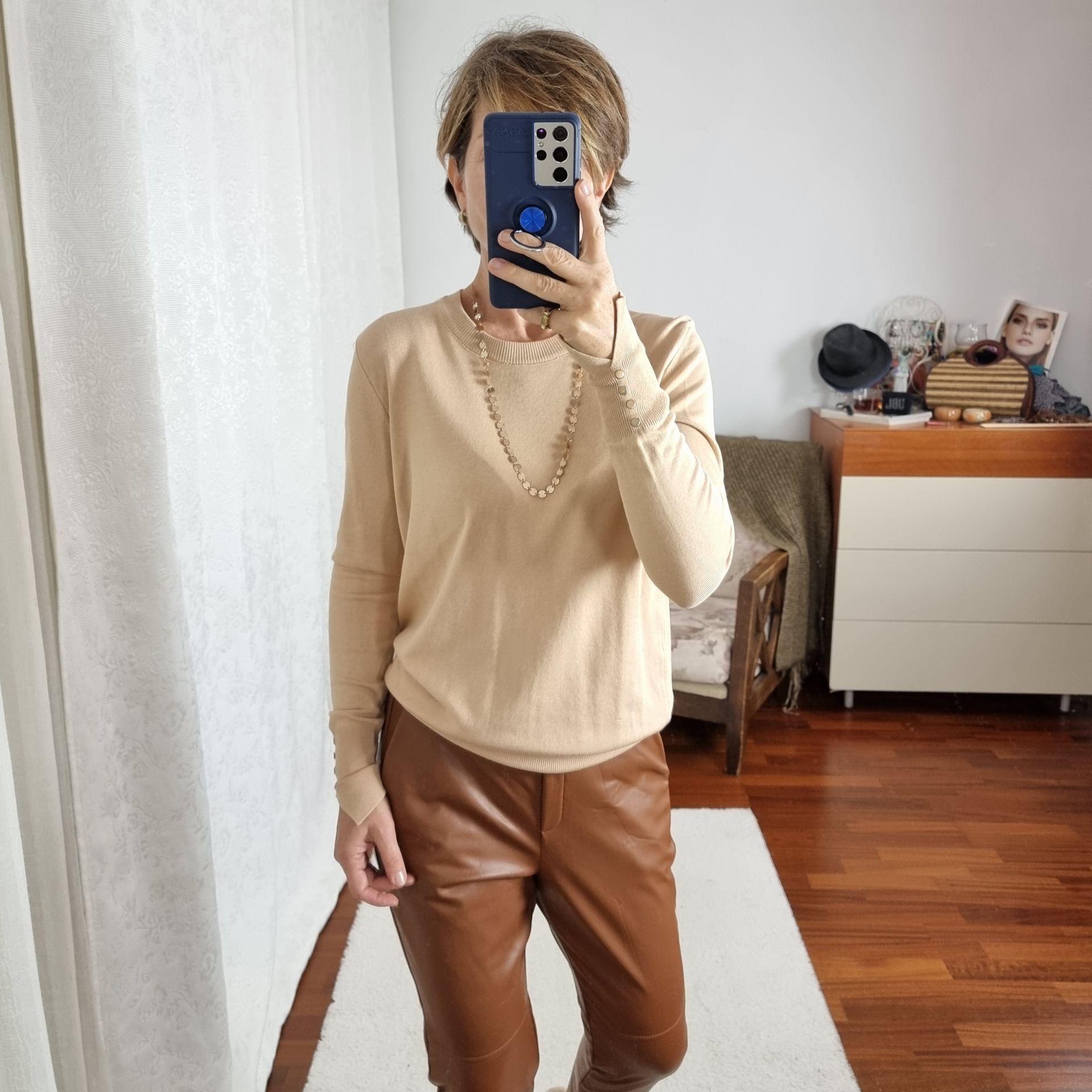 Kolları Düğmeli Yumuşak Basic Triko Kazak Camel