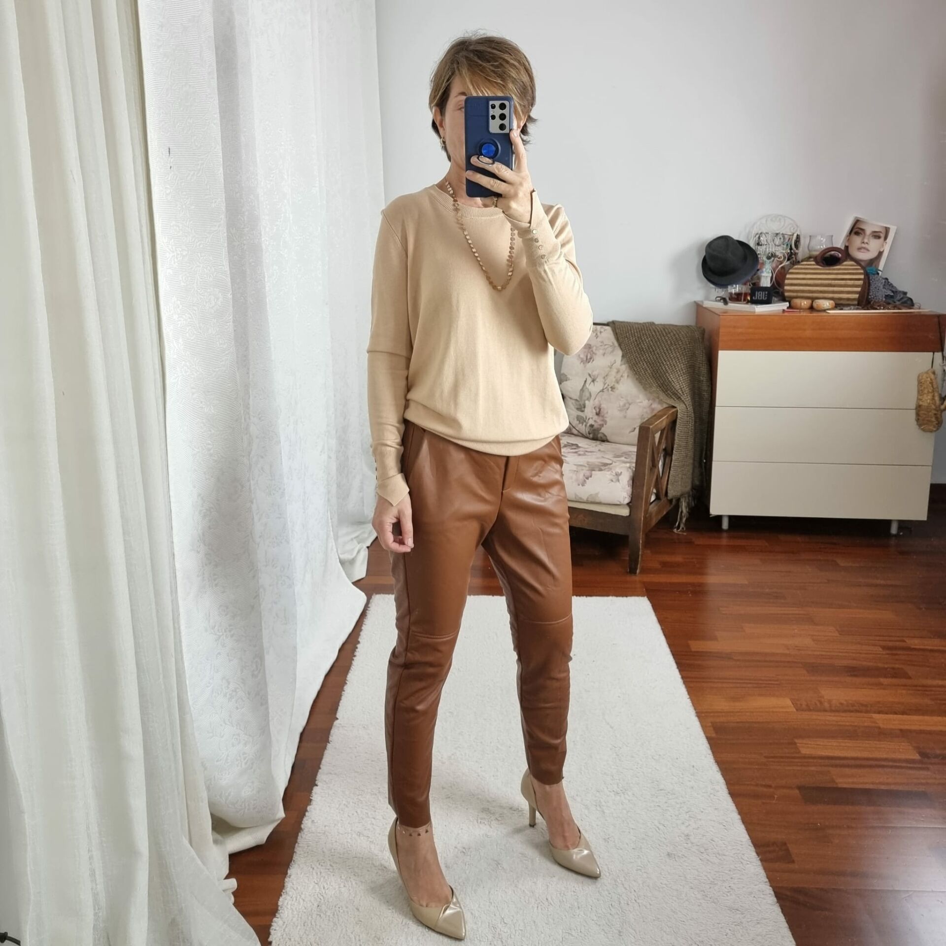 Göz alıcı detaylarla sade şıklığı buluşturan kolları düğmeli yumuşak basic triko kazak, altın tonundaki düğmeleriyle klasik basic formunu şık bir dokunuşa dönüştürüyor. Yüksek viskon oranı sayesinde oldukça yumuşak bir his sunan bu triko kazak, esnek yapısıyla 40 bedene kadar rahatlıkla uyum sağlar. Mevsim geçişlerinde gardırobun kurtarıcı parçası olan bu triko, zarif detaylarıyla modern kadınların kombinlerine değer katar.