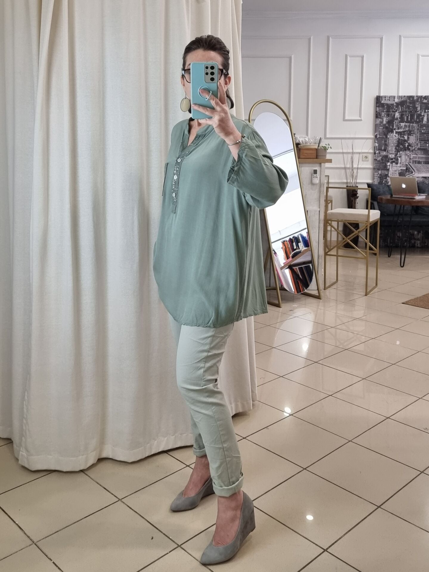 Taze bir nefes gibi hissettiren likralı İtalyan pantolon açık mint, hafifliği ve yumuşak rengiyle yaz kombinlerinin gözdesi olmaya aday. Esnek dokusu sayesinde 48/50 bedene kadar rahatlıkla uyum sağlar, lastikli ve bağcıklı beli ise hareket özgürlüğü sunar. Mevsimlik yapısıyla hem şehir hayatında hem tatil bavulunda yer bulur. Bu İtalyan pantolon, sade ama etkili stil tercih eden kadınlar için modern ve ferah bir alternatif sunar.