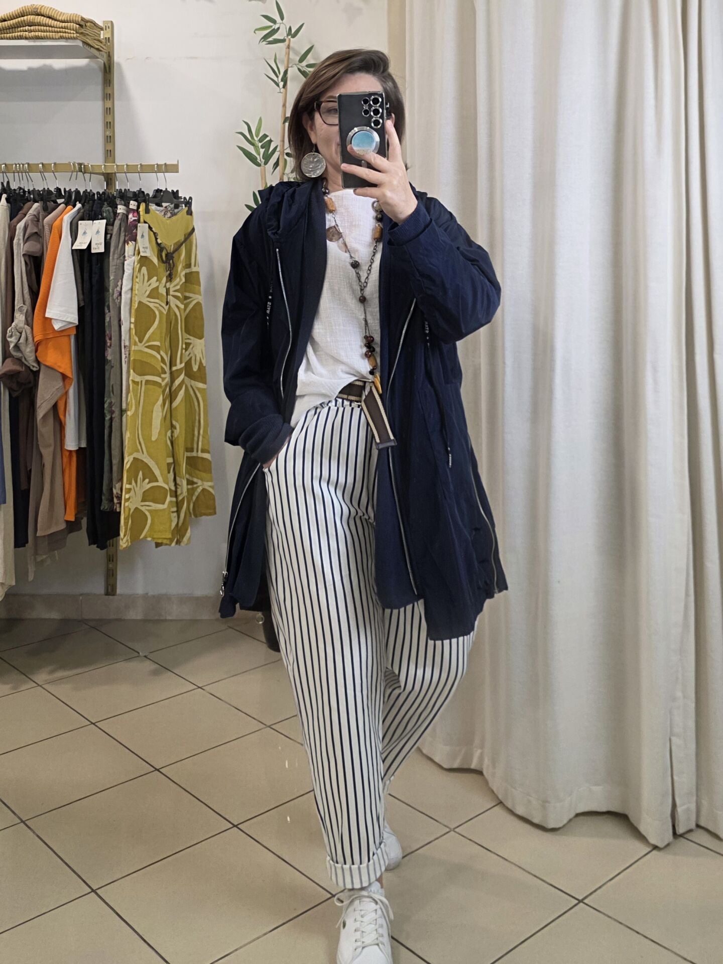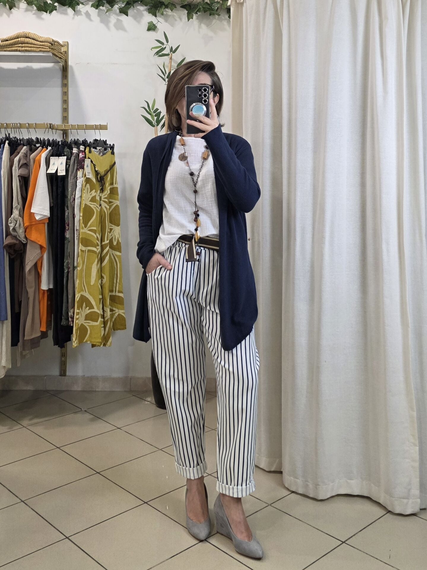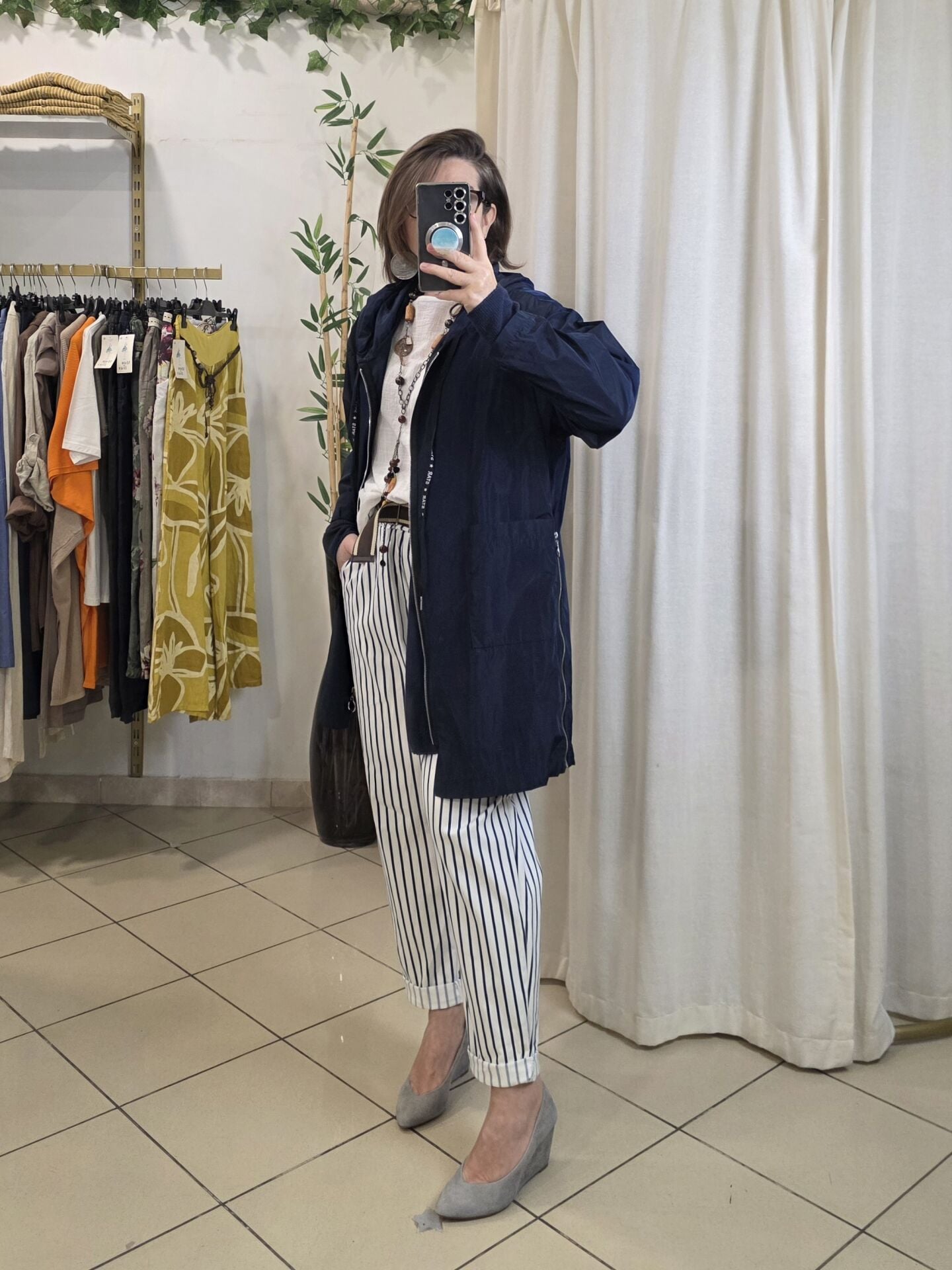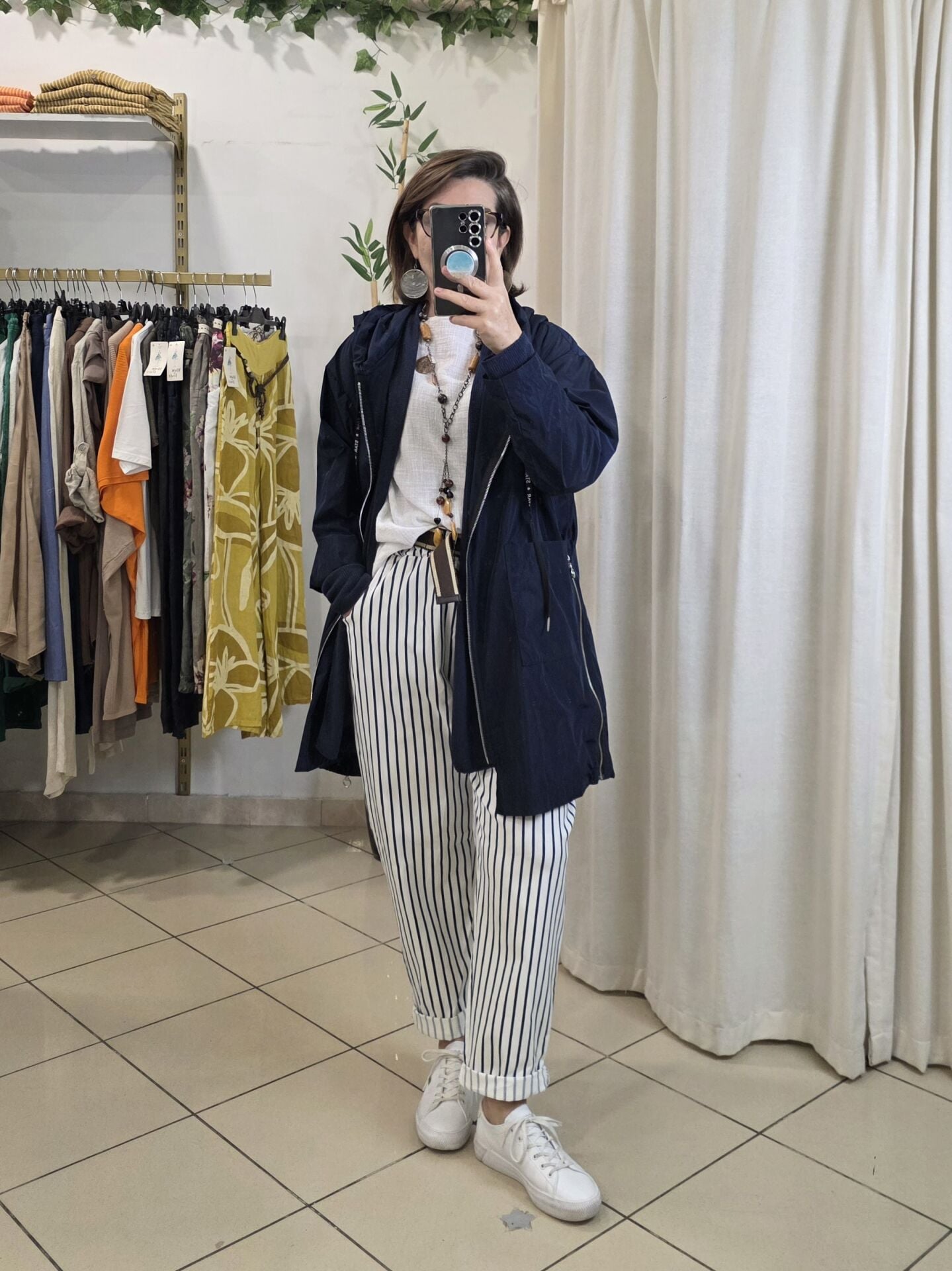 Modern çizgilerle sade şıklığı buluşturan likralı İtalyan pantolon çizgili, mevsim geçişlerinde stilini yükseltmek isteyen kadınlara hitap ediyor. Esnek yapısı sayesinde 48/50 bedene kadar vücuda kolayca uyum sağlarken, bağcıklı ve lastikli beli gün boyu maksimum konfor sunuyor. Dikey çizgiler vücut formunu daha uzun ve zarif gösterirken, bu İtalyan pantolon kombinlerde fark yaratmak isteyen kadınlar için kurtarıcı bir parça haline geliyor.