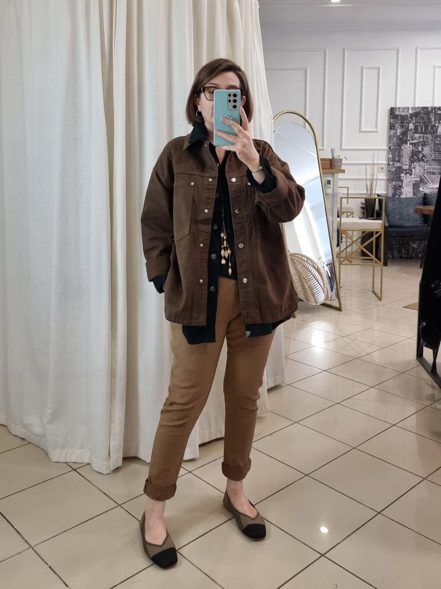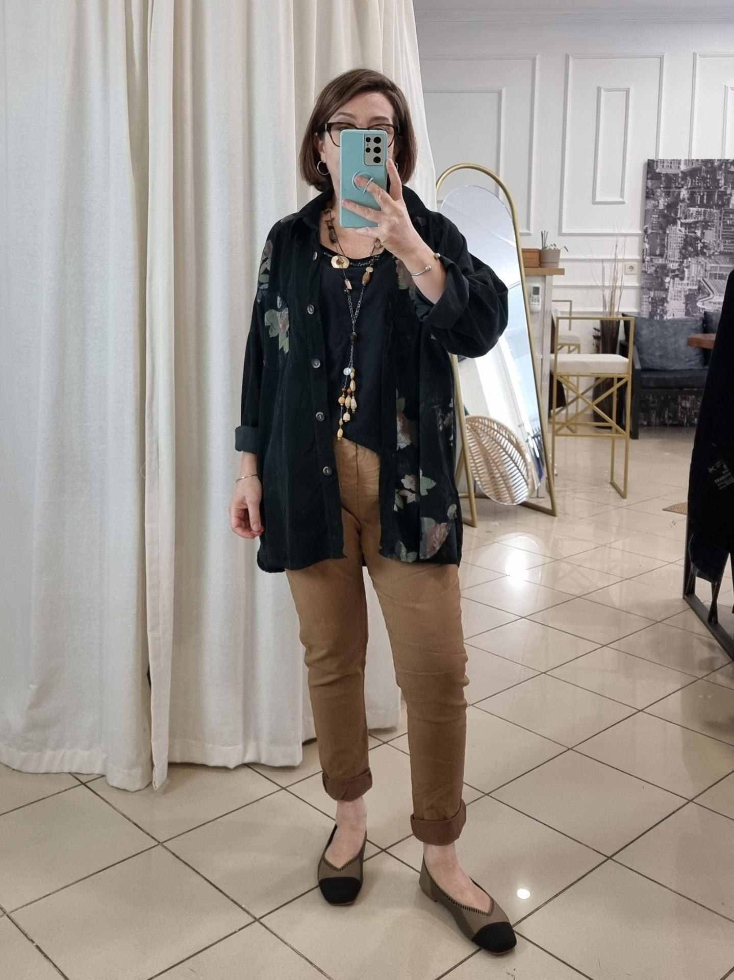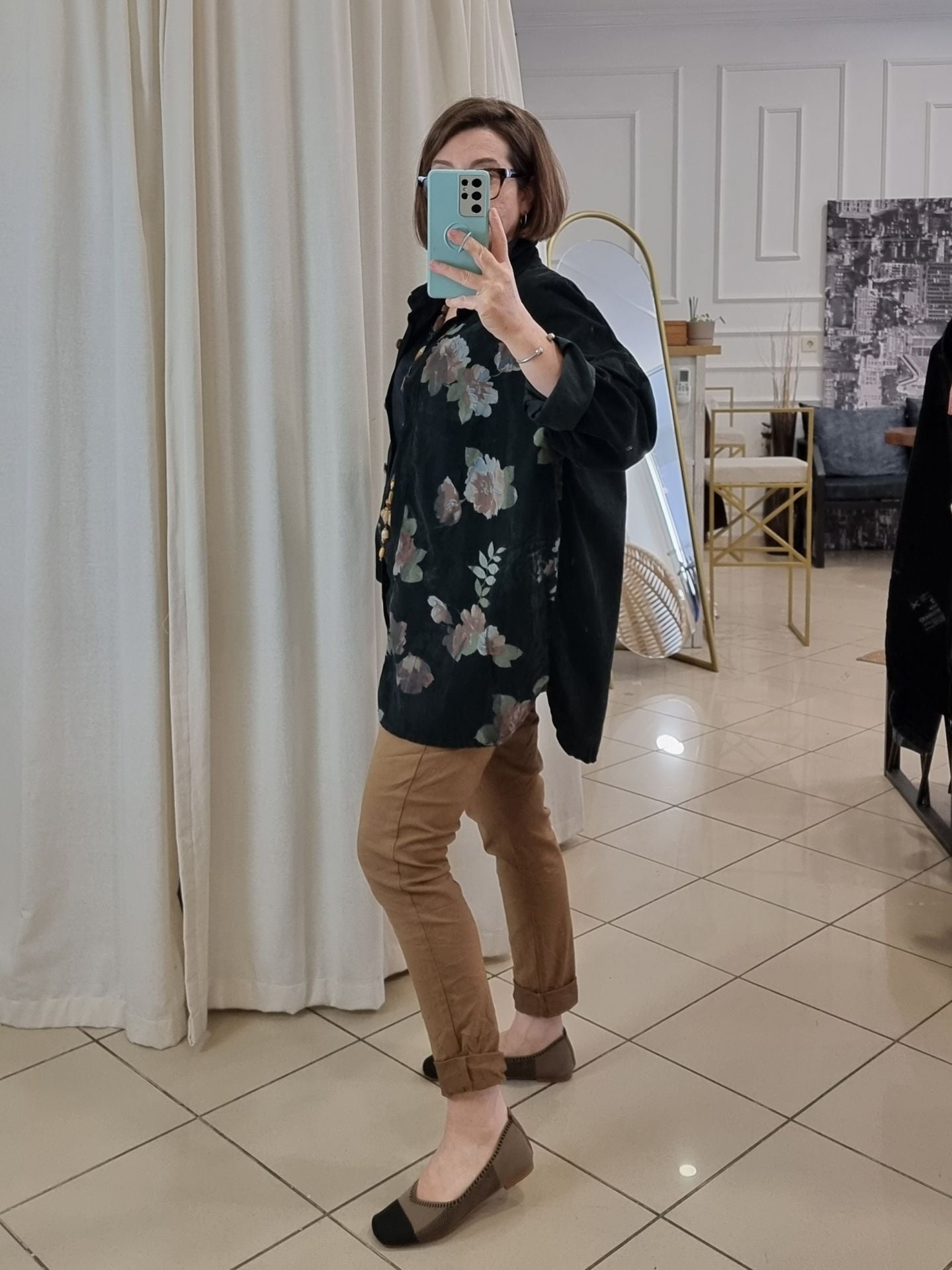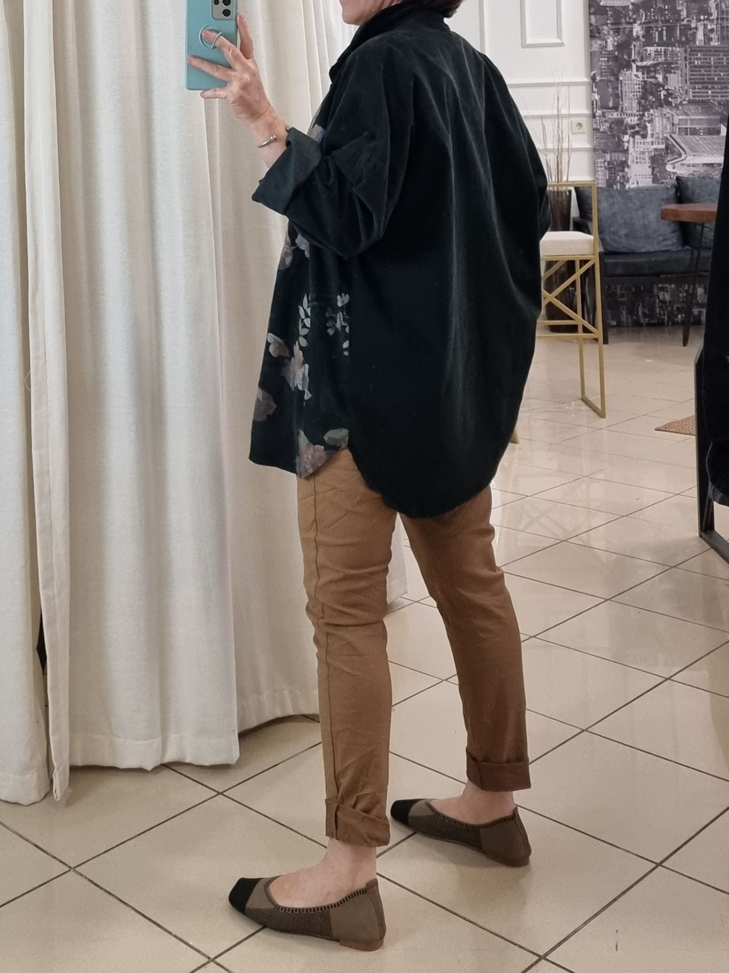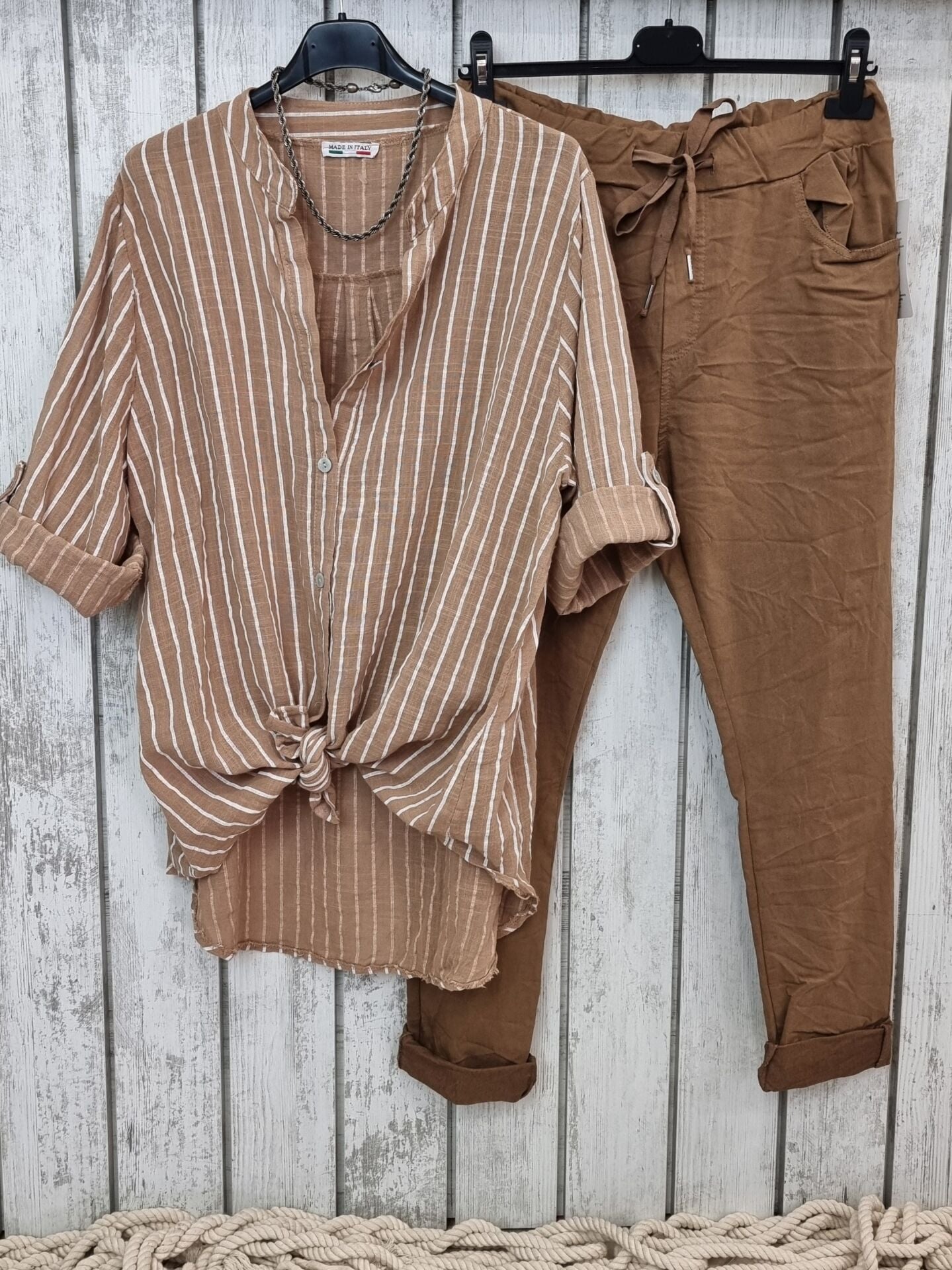 Toprak tonlarının asaletiyle birleşen esnek dokusu, 48/50 bedene kadar konforlu bir uyum sunar. Bağcıklı beli hem fonksiyonel hem şık bir detay katarken, mevsimlik kumaşı sayesinde dört mevsim giyilebilir. Gündelik rahatlığa stil katmak isteyen kadınlar için tasarlanan bu İtalyan pantolon, nötr tonların asil temsilcisi olarak gardırobun kurtarıcı parçası olmaya aday.
