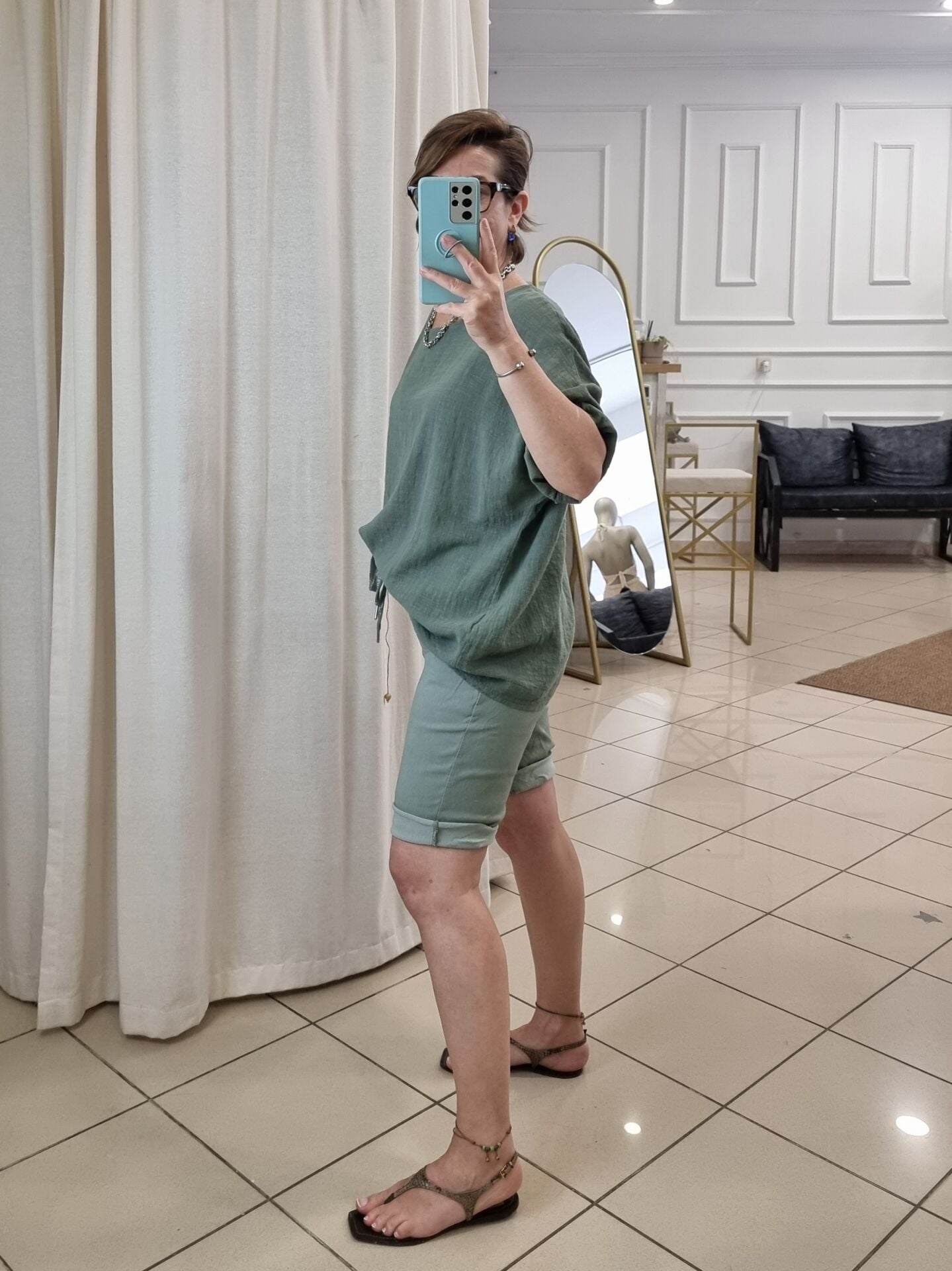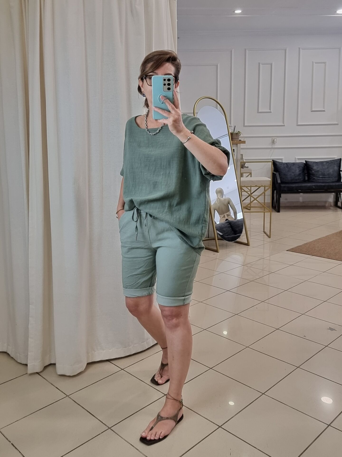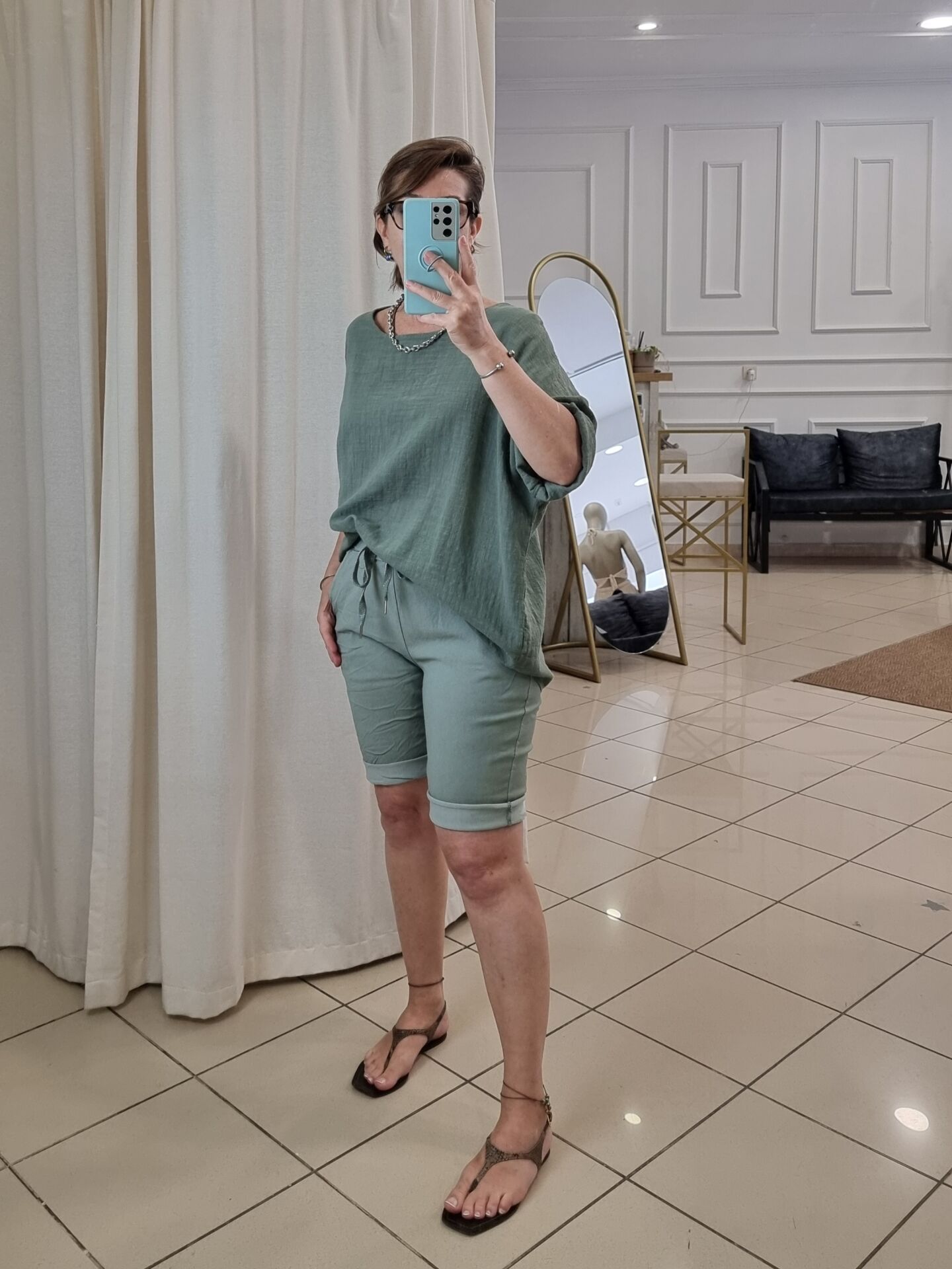 Askeri şıklığı modern rahatlıkla buluşturan likralı İtalyan haki şort, yazın en kullanışlı parçalarından biri olmaya aday. Beli lastikli ve bağcıklı yapısıyla maksimum konfor sunarken, diz üstü boyu kıvrılarak da kullanılabilir yapısıyla çok yönlü bir stil sunar. Esnek kumaşı sayesinde 48/50 bedene kadar rahatça uyum sağlar. Bu haki şort, aktif kadınlar için şehirde, tatilde ya da hafta sonu planlarında her ortama kolaylıkla uyum sağlar.