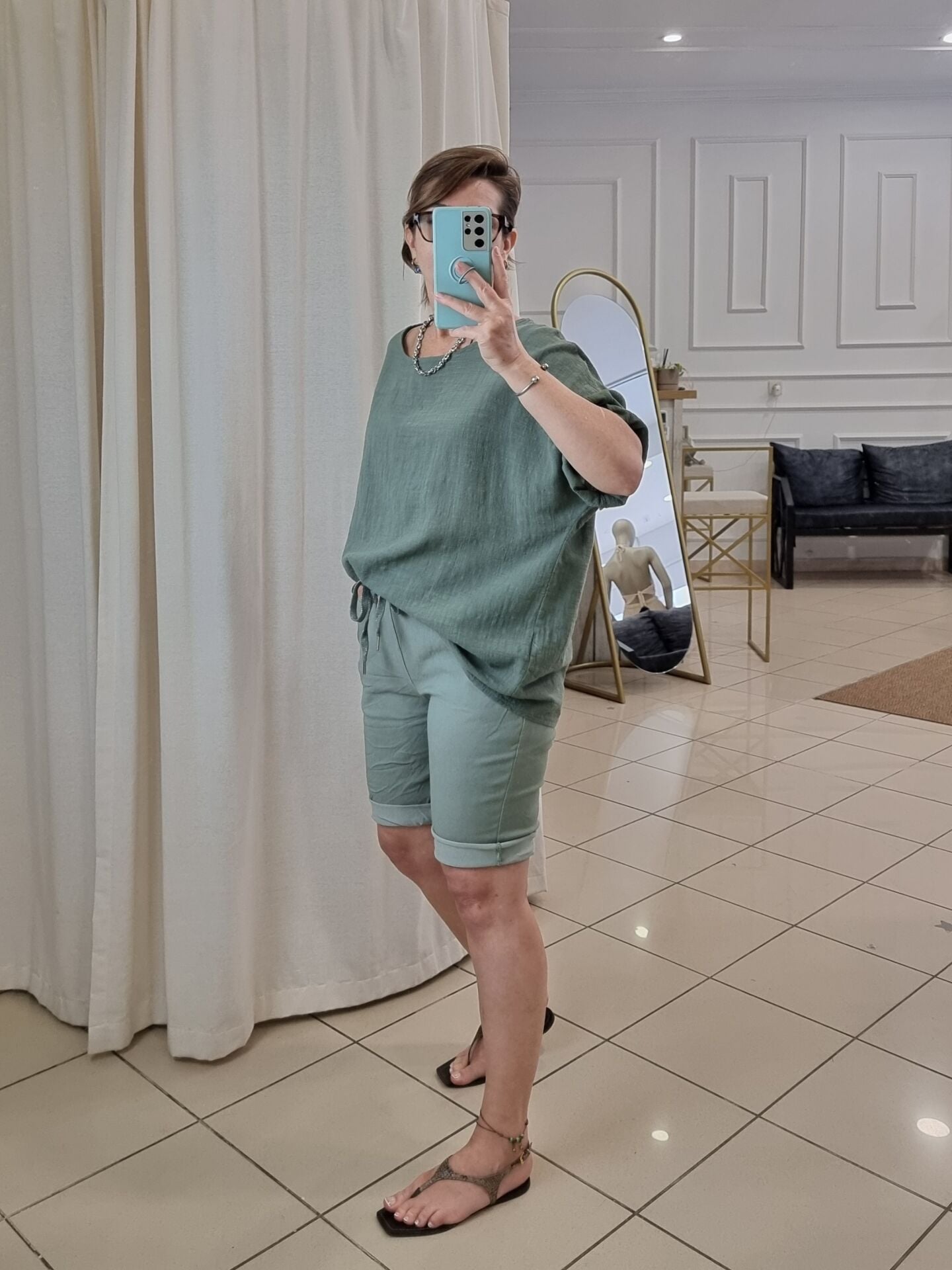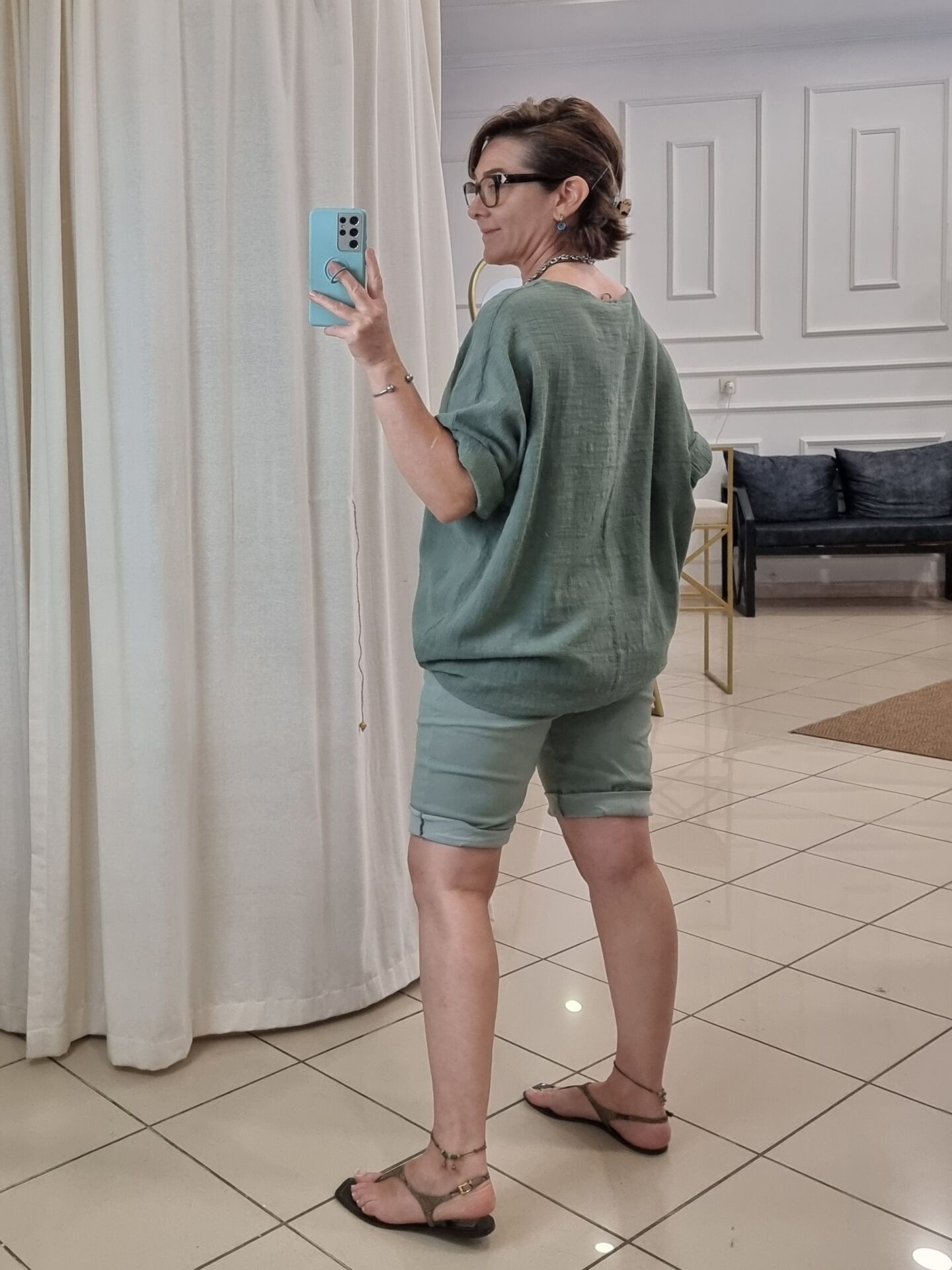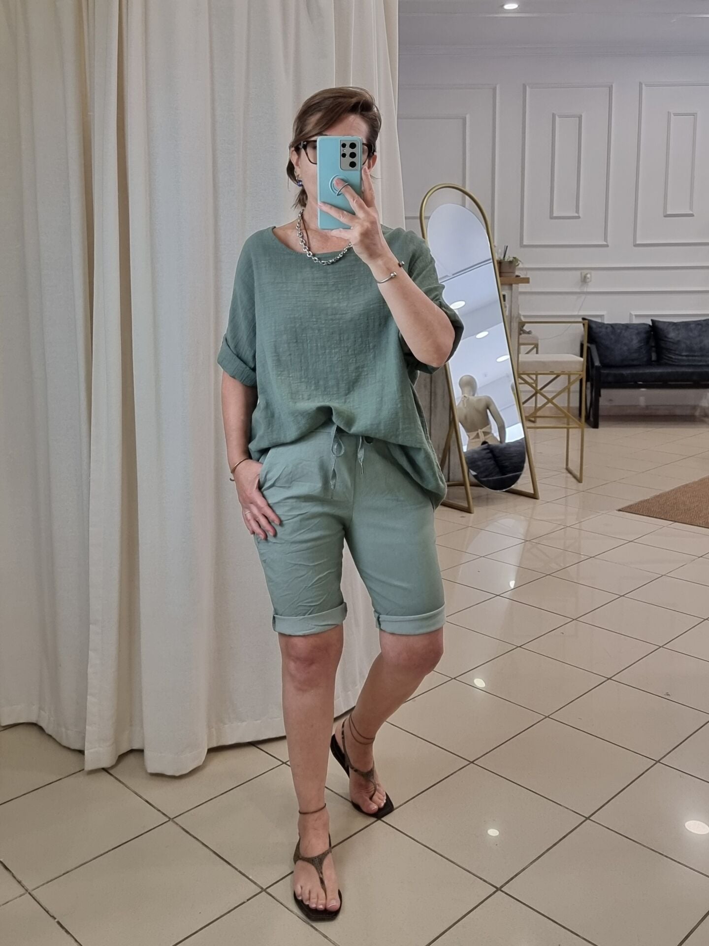 Askeri şıklığı modern rahatlıkla buluşturan likralı İtalyan haki şort, yazın en kullanışlı parçalarından biri olmaya aday. Beli lastikli ve bağcıklı yapısıyla maksimum konfor sunarken, diz üstü boyu kıvrılarak da kullanılabilir yapısıyla çok yönlü bir stil sunar. Esnek kumaşı sayesinde 48/50 bedene kadar rahatça uyum sağlar. Bu haki şort, aktif kadınlar için şehirde, tatilde ya da hafta sonu planlarında her ortama kolaylıkla uyum sağlar.