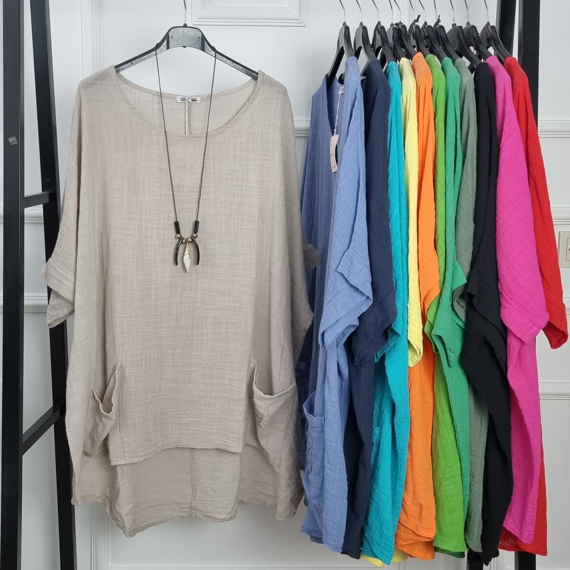 Doğallığı ve rahatlığı bir arada sunan bu yeşil İtalyan büyük beden müslin bluz, %100 pamuk içeriğiyle teninize nefes aldırır. Bol kesimi, kısa kol yapısı ve asimetrik formu sayesinde sıcak günlerde serinlik hissi yaratırken, ön cep detayı da şıklığa işlevsellik katar. Büyük bedenler düşünülerek tasarlanmış bu model, stilinden taviz vermeden özgürce hareket etmek isteyen kadınlar için sade ama çok yönlü bir parçadır.