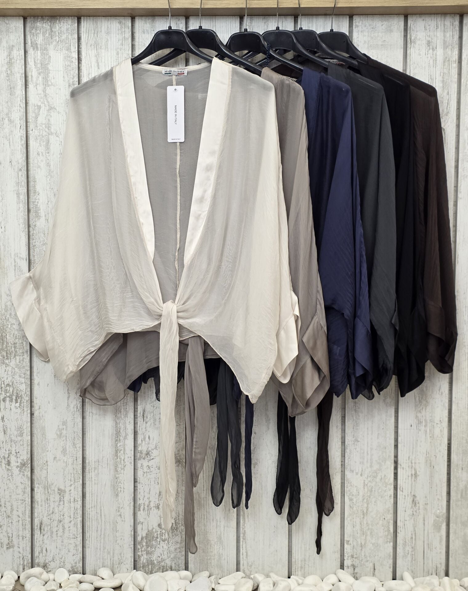 Önü Bağlamalı İpek Şifon Bluz Kahverengi.